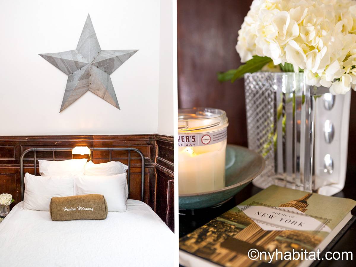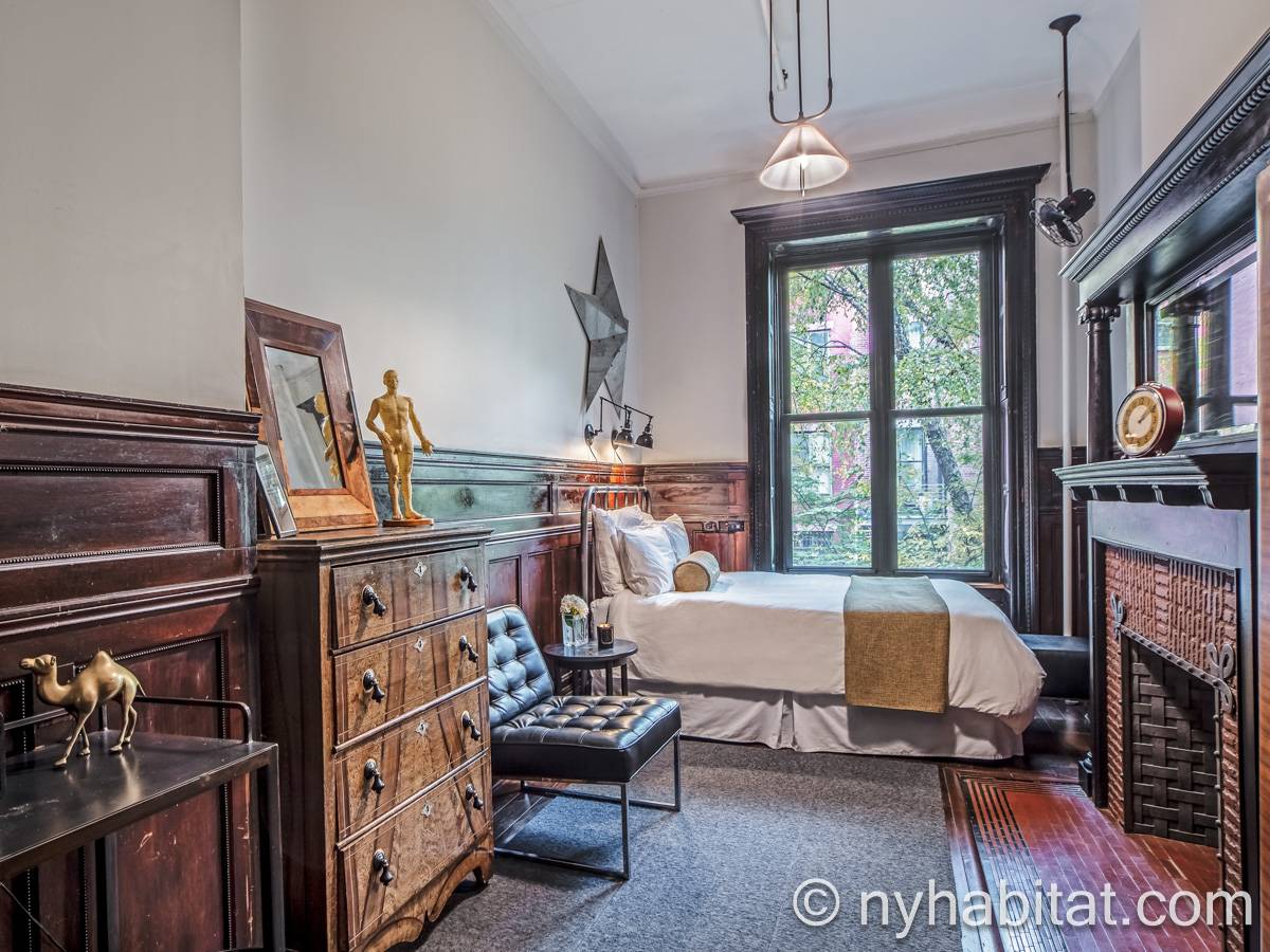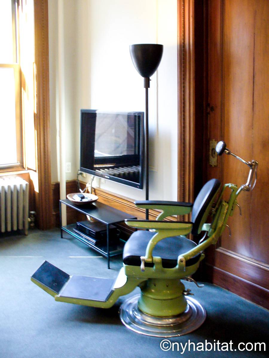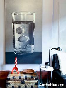 This fully furnished one bedroom apartment is located in Uptown Manhattan, in Harlem, New York. The apartment is on the 1st floor of a 4-story walk-up brownstone townhouse dating from 1895. There is a video buzzer/intercom system for guest entry.