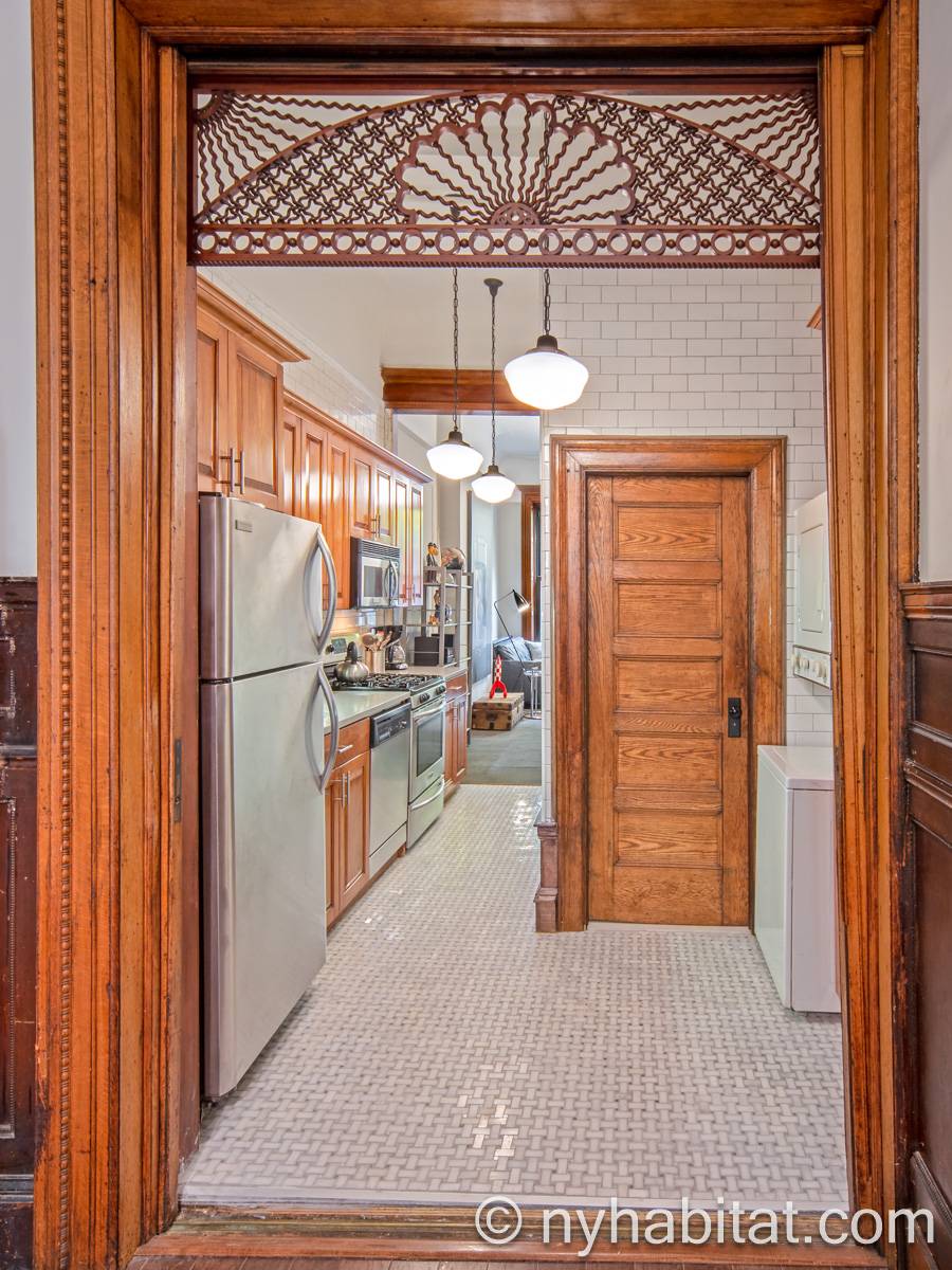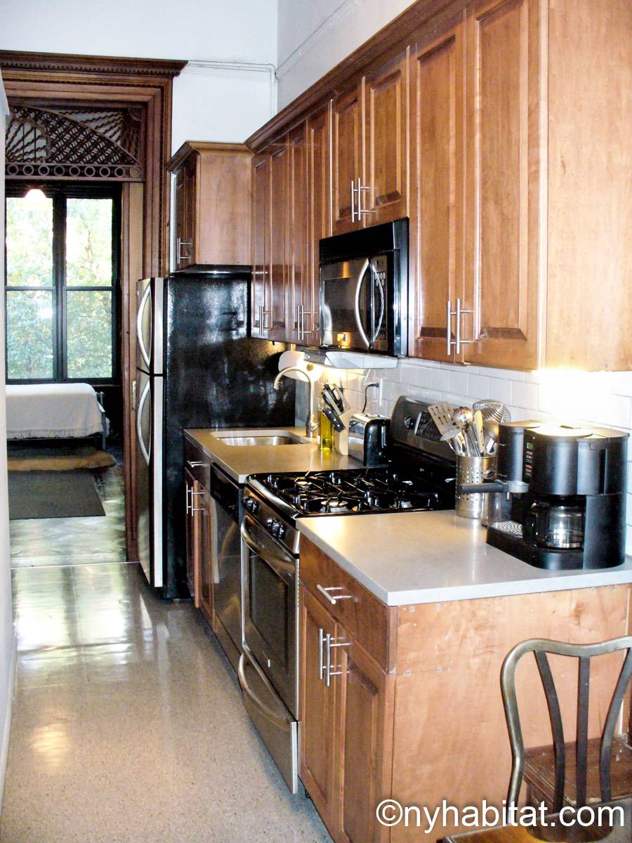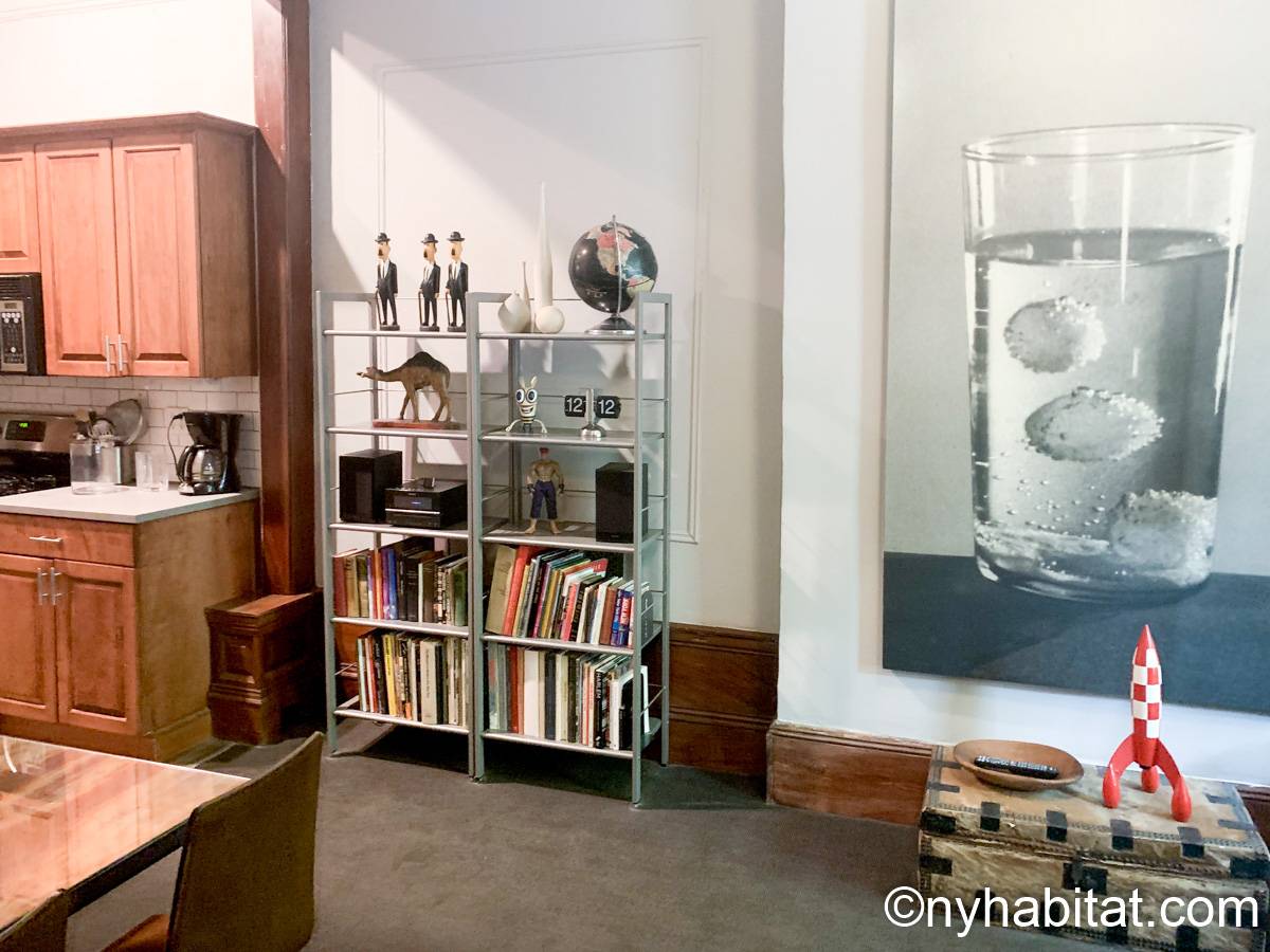 This fully furnished one bedroom apartment is located in Uptown Manhattan, in Harlem, New York. The apartment is on the 1st floor of a 4-story walk-up brownstone townhouse dating from 1895. There is a video buzzer/intercom system for guest entry.