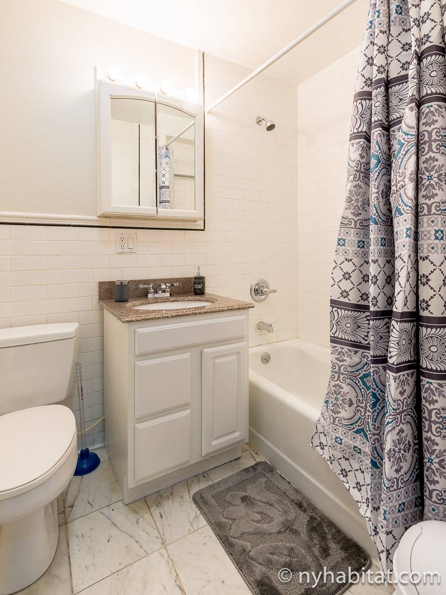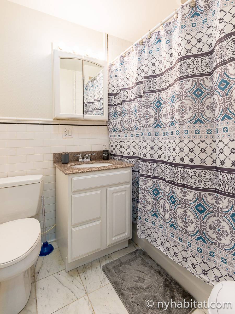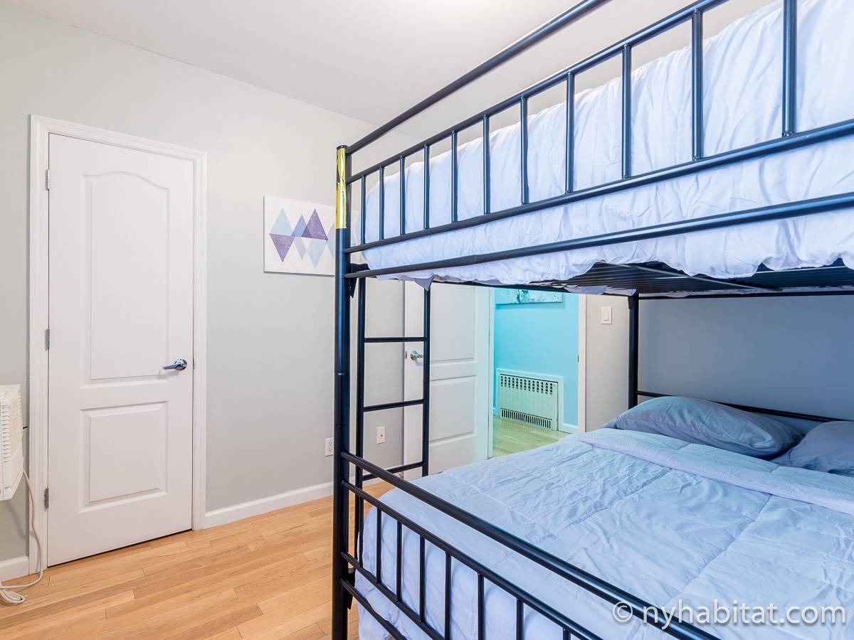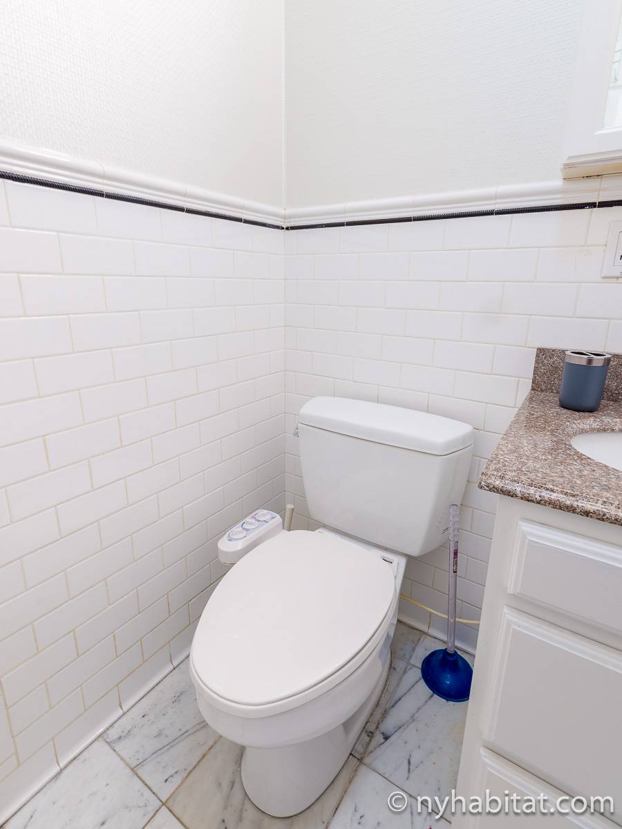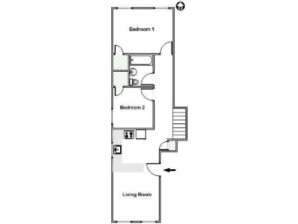 No need to take the stairs here, you can just take the first entrance directly into the apartment. The bright and lively living room welcome you, thanks to the southern-facing windows looking toward the nearby street, the hardwood floors that follow you around the apartment and the colorful classic styled furniture. The bedrooms are accessible as you step further along the hallway, which gives each room its privacy. The first bedroom has a window facing west towards the next building while the second has view on this building’s backyard garden, which you will definitely enjoy having at reach. This garden area, shared with your upstairs neighbors, provides easy access to the New York sun and will help you relax in your own space. It also has two BBQ grills, one charcoal, one gas, for when you feel like cooking out!