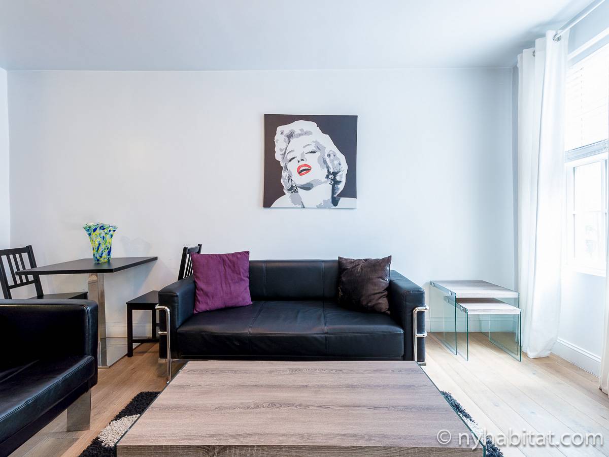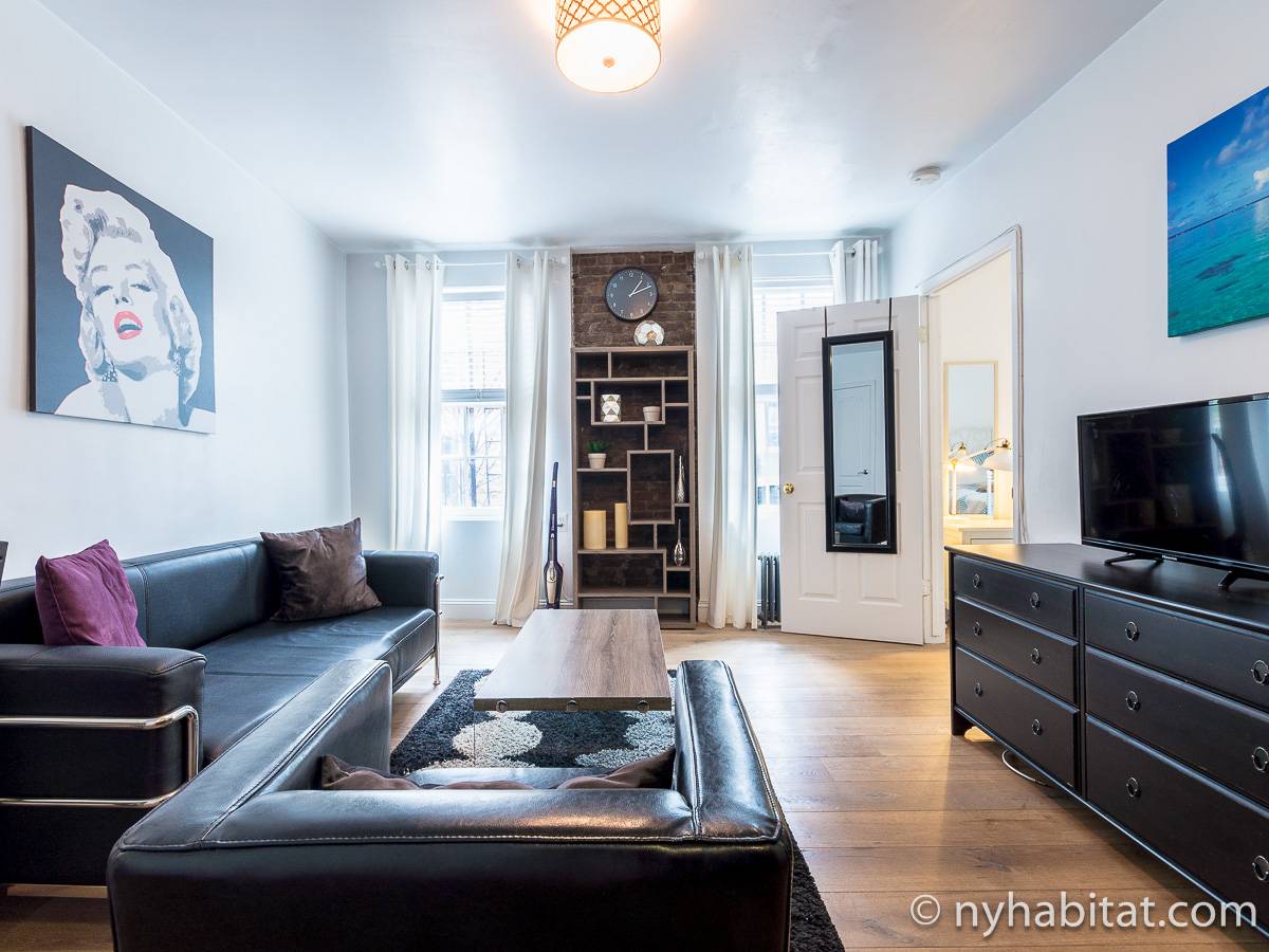 Located near the intersection of 12th Street & Greenwich Avenue, this fully furnished one bedroom apartment is a great place to stay in the West Village! Found on the third floor (equivalent to the European second floor) of a four floor townhouse it’s easy to feel the NYC vibes, especially with an exposed brick wall!