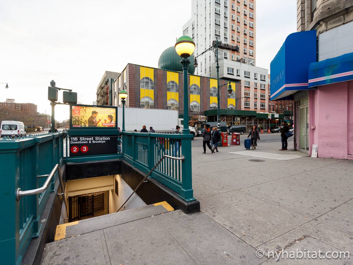 The rest of New York City is just a quick trip away thanks to the 2 and 3 trains at 116 Street / Lenox Avenue (.1mi/210m) and the B and C trains at 116 Street / 8 Avenue (.4mi/650m).