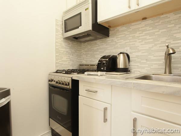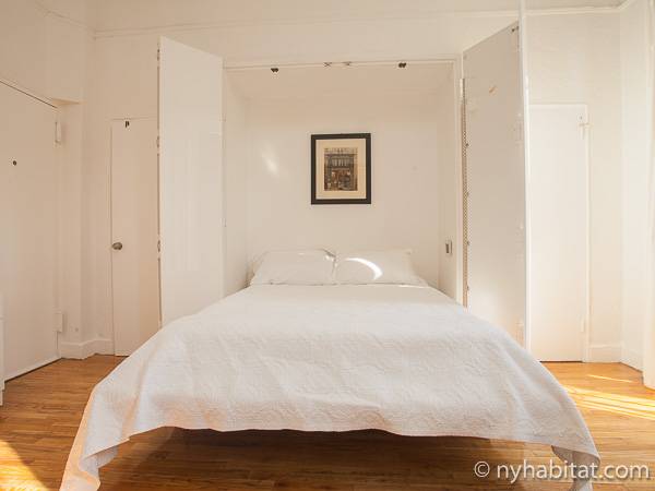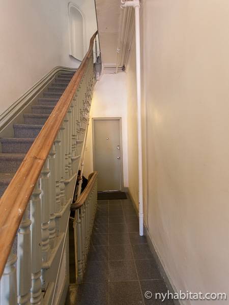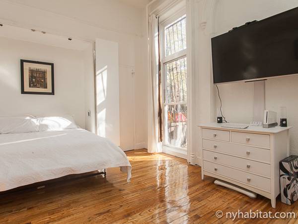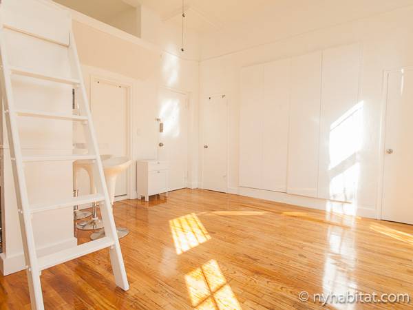 This studio apartment in the Clinton Hill section of Brooklyn makes optimal use of the space. Located near Clermont Avenue and Greene Avenue, this studio rental with an eastern exposure is on the 2nd floor (1st floor European) of a 1930’s Brooklyn brownstone building.