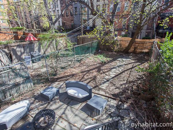 The backyard could have been maintained by some sort of service and the accumulated garbage under the outside stairs could be organized. |