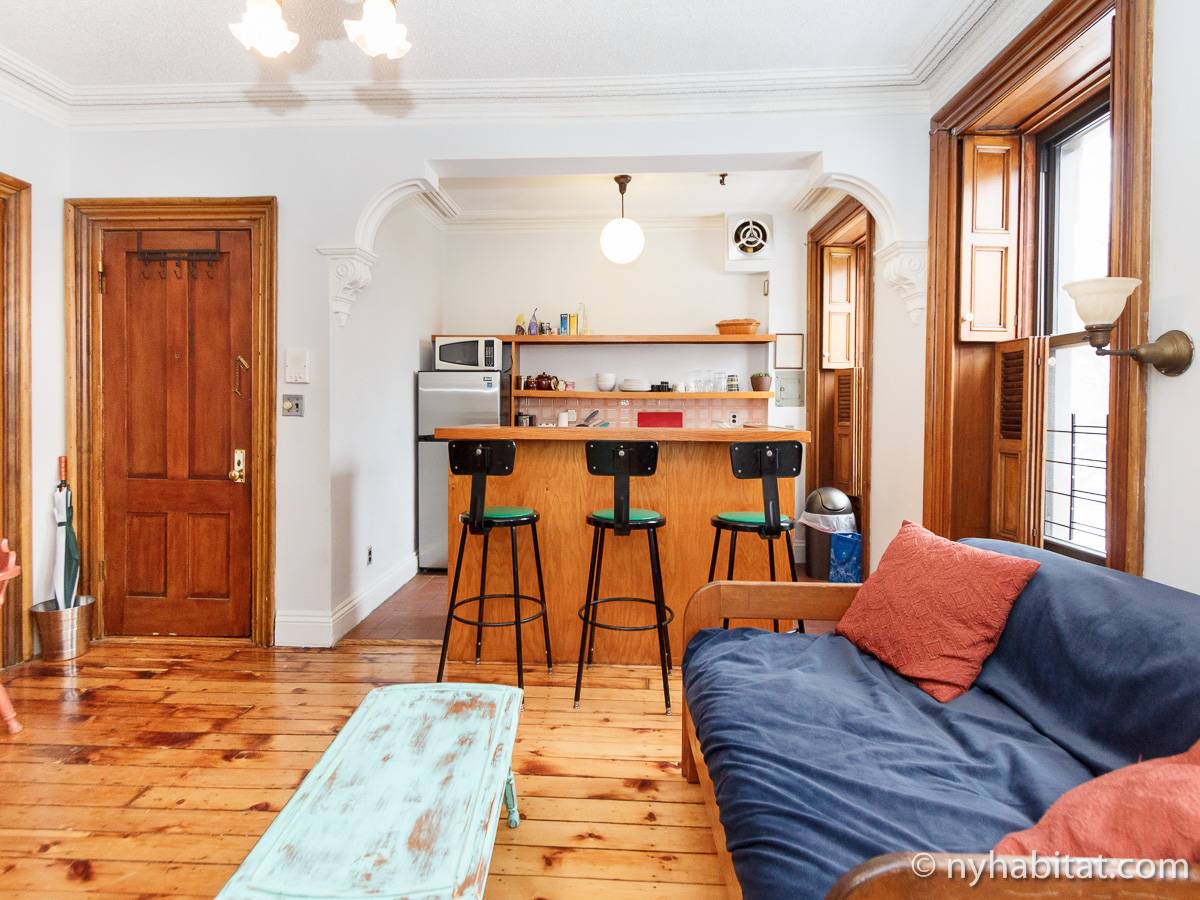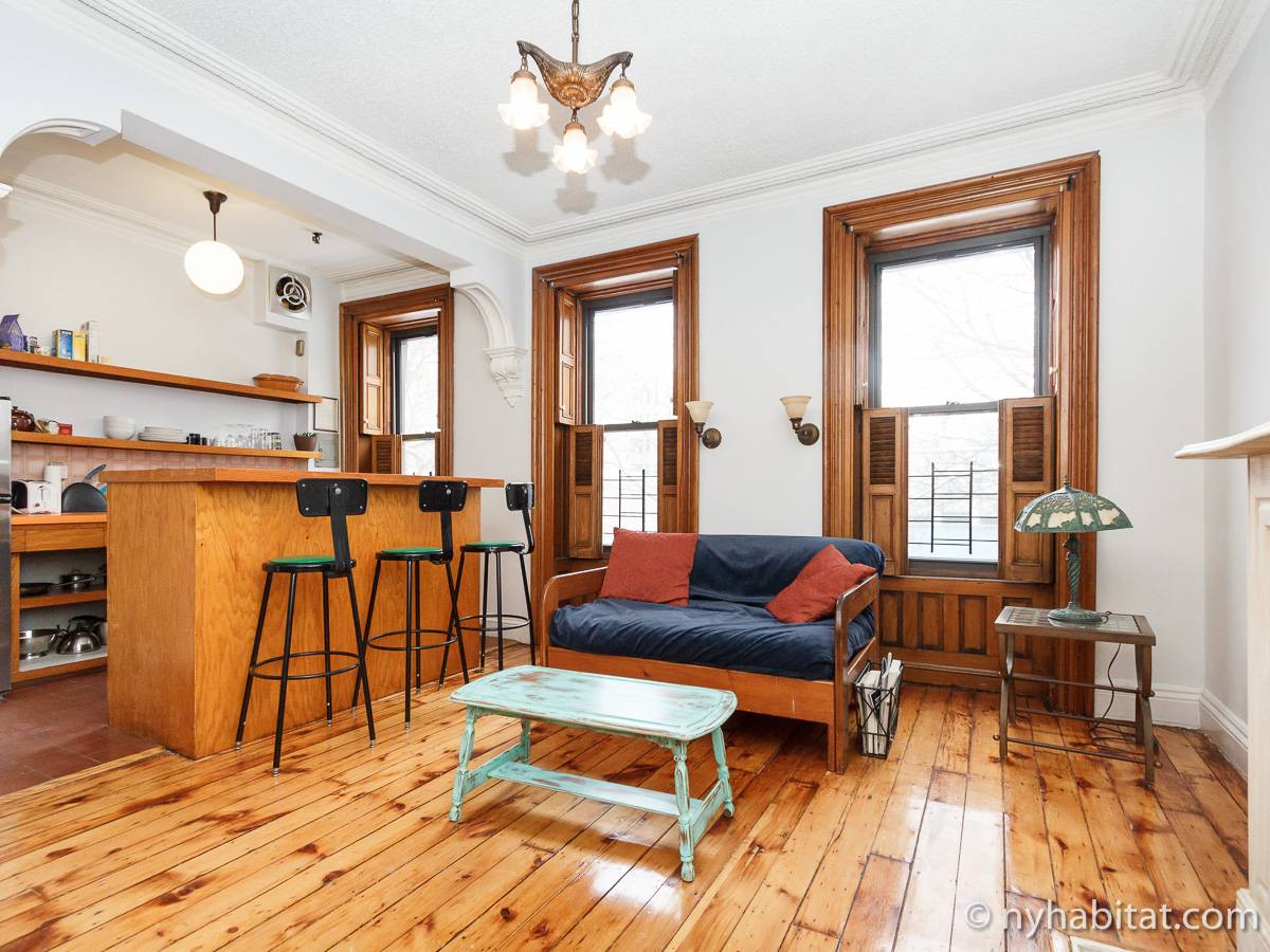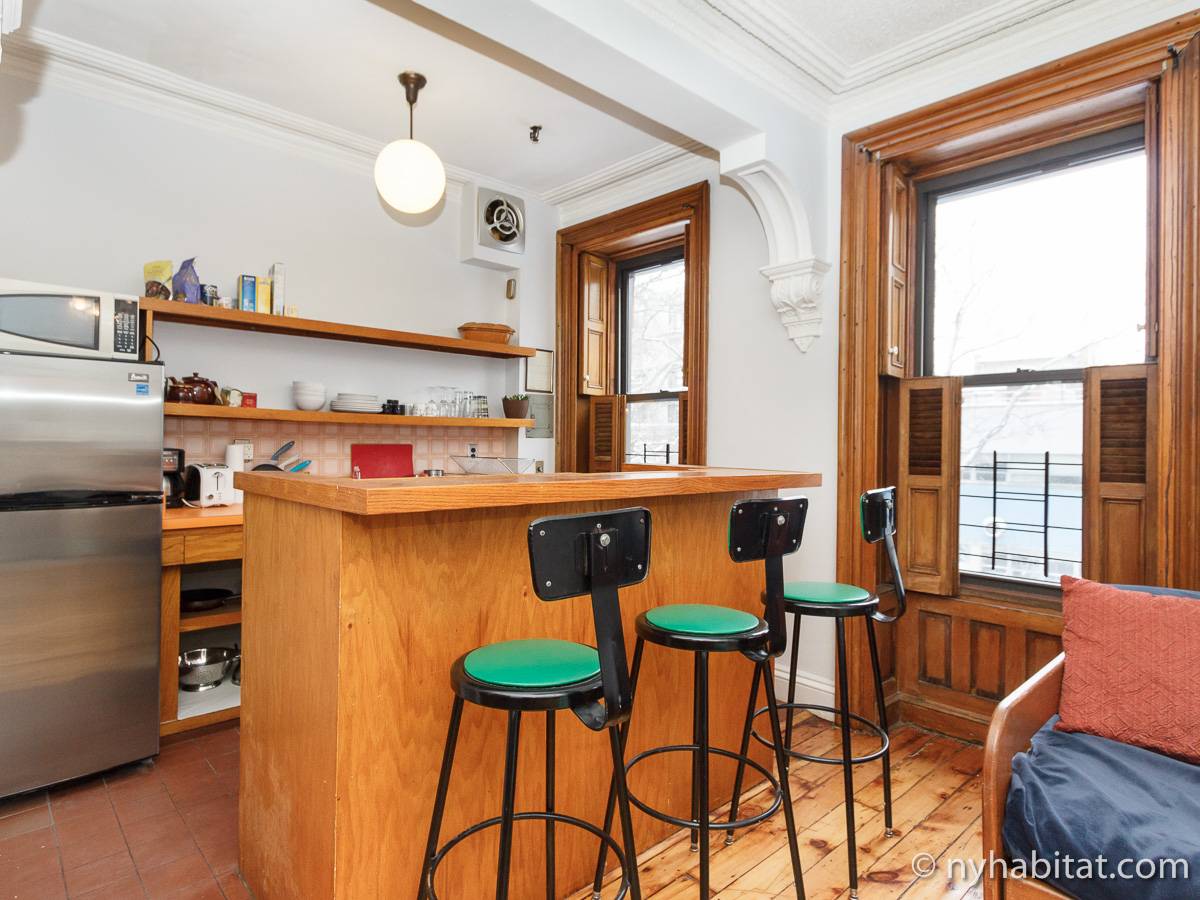 Think Brooklyn, think brownstone. This beautifully preserved one bedroom apartment on the third floor (2nd European floor) of a four story townhouse in Brooklyn’s Clinton Hill neighborhood will have you feeling like New York City royalty. Walk up a stunning wooden staircase into this bright, spacious, fully furnished one bedroom apartment that is sure to please.
