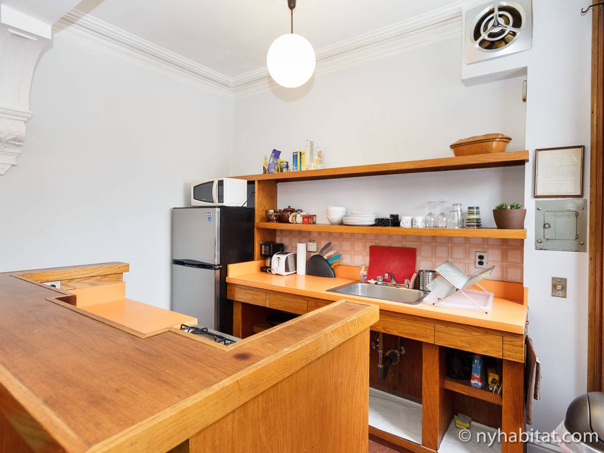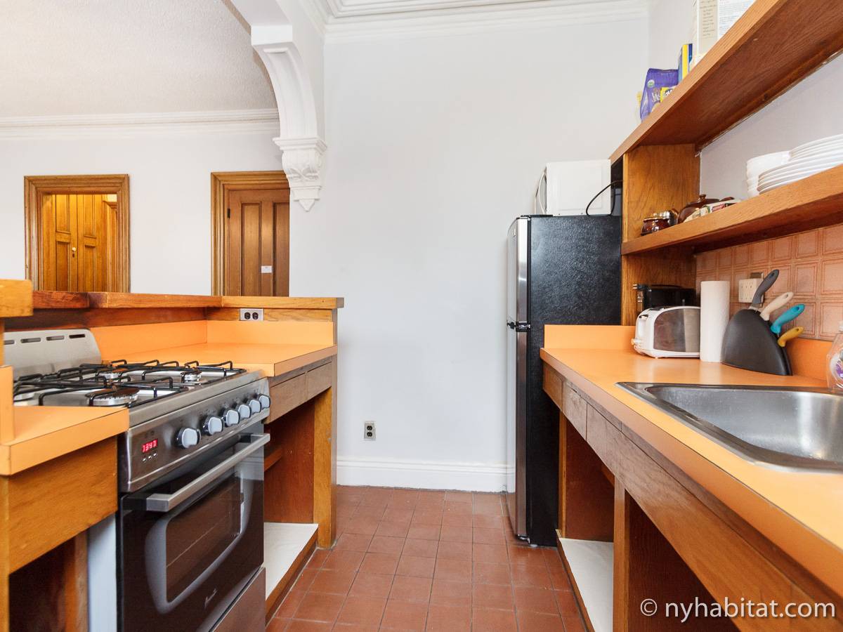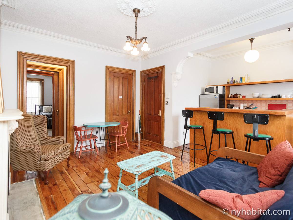 Think Brooklyn, think brownstone. This beautifully preserved one bedroom apartment on the third floor (2nd European floor) of a four story townhouse in Brooklyn’s Clinton Hill neighborhood will have you feeling like New York City royalty. Walk up a stunning wooden staircase into this bright, spacious, fully furnished one bedroom apartment that is sure to please.