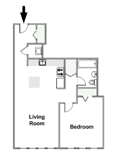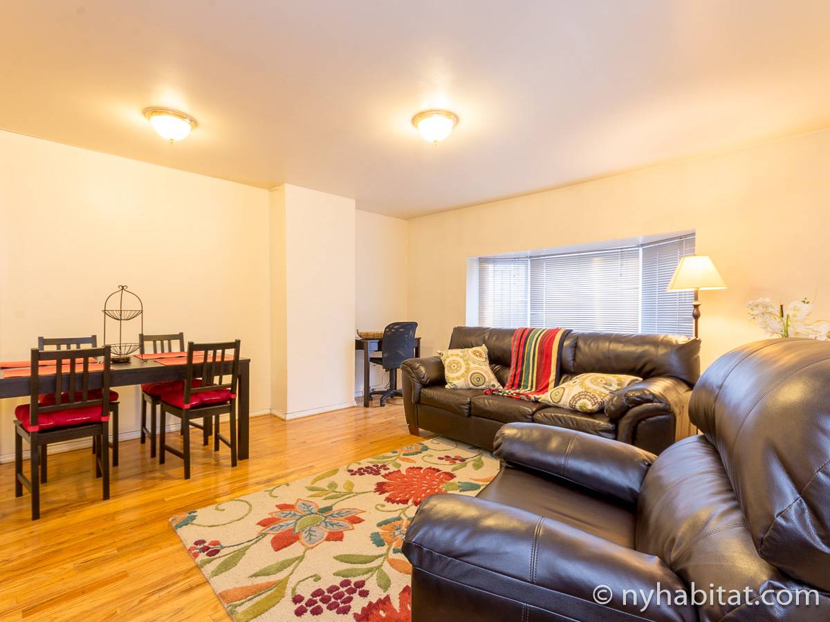 Upon entering this fully furnished apartment, find wall-to-wall hardwood floors, distinctive contemporary furnishings and floor-to-ceiling windows allowing plenty of natural light to pour in. the living room is furnished with a sofa, a flat-screen television and a dining. The open style kitchen features stainless steel appliances and all the necessary cookware and dishware. In the bedroom, relax on the double-sized bed and watch a movie on the flat-screen television. This apartment offers closets for storage space and the convenience of in-unit washer and dryer.