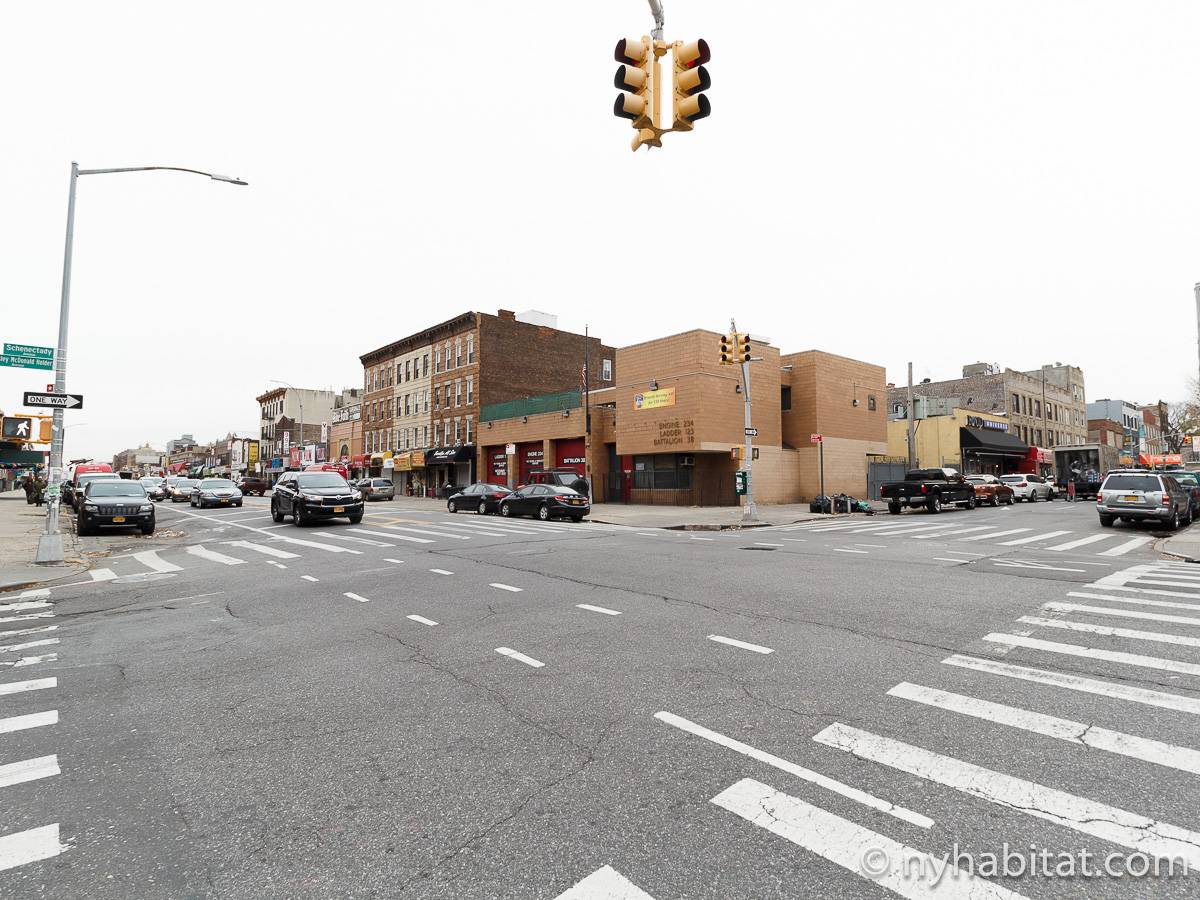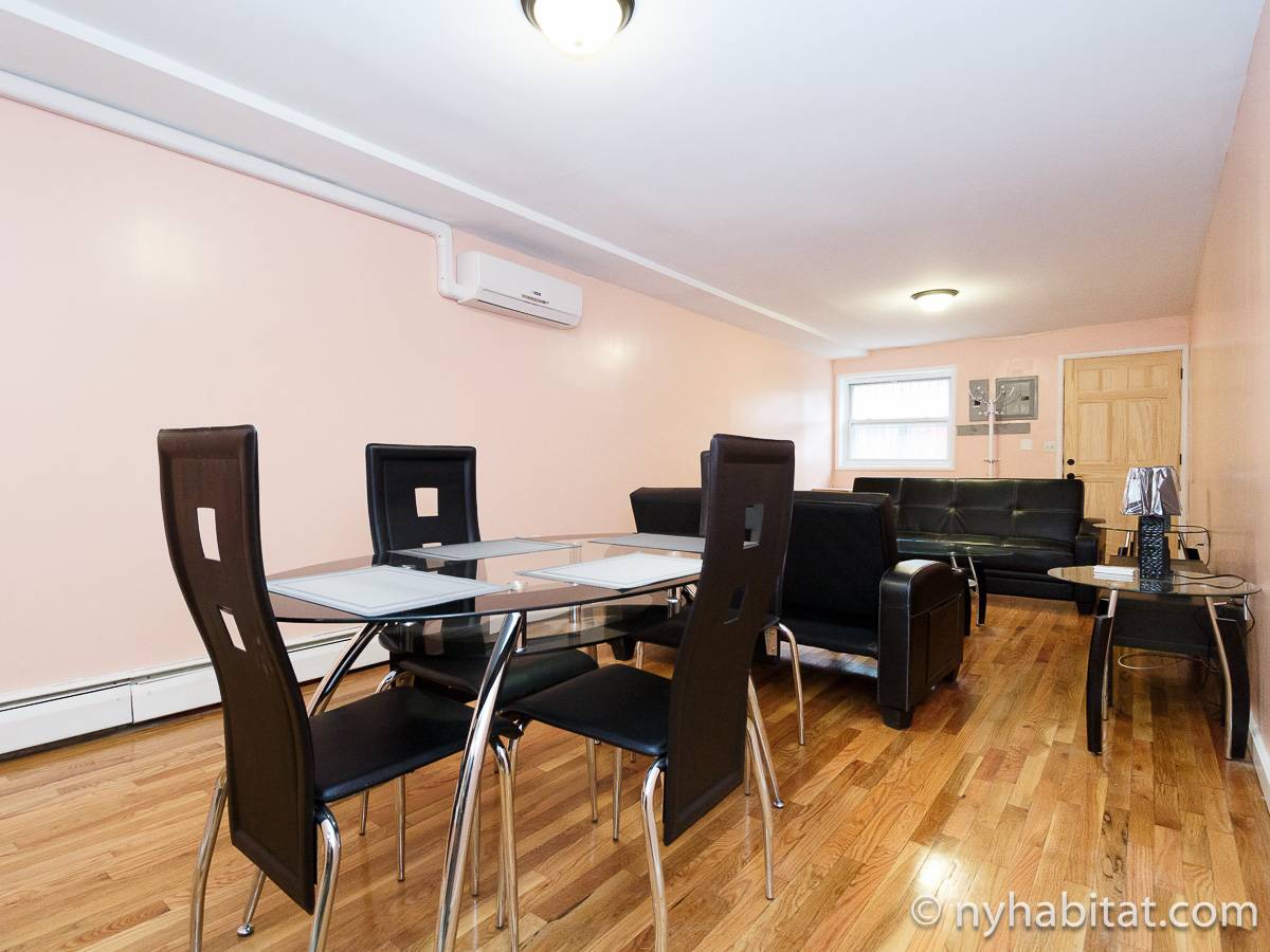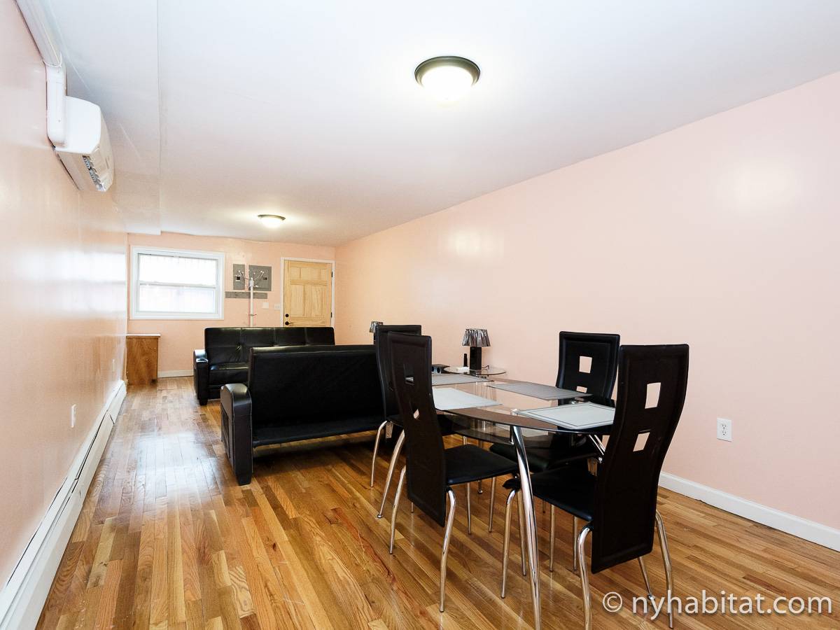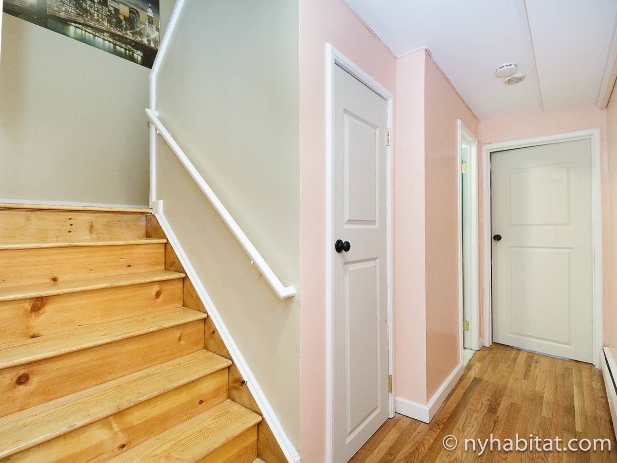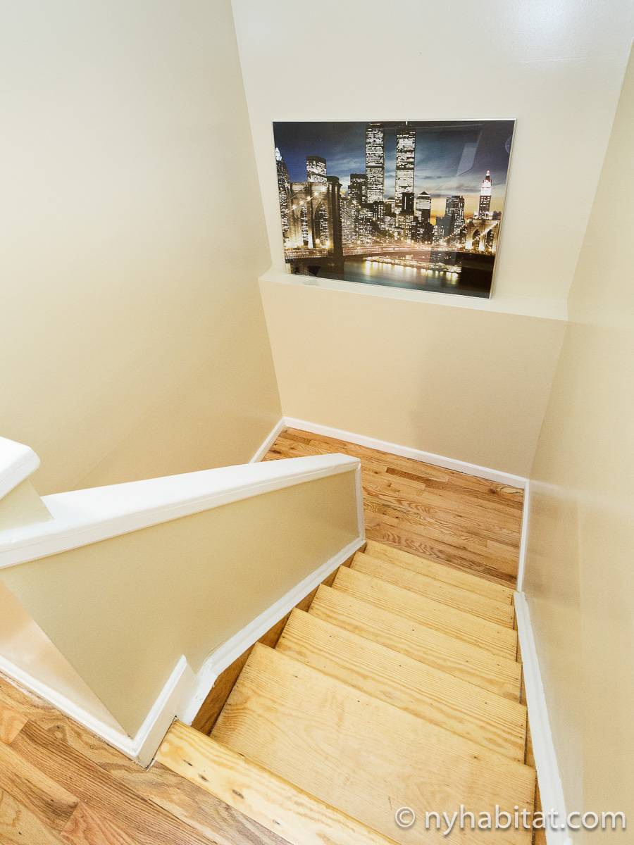 Welcome to this fully furnished four bedroom duplex apartment in the New York City borough of Brooklyn. You will find it at the corner of St Johns Place and Troy Avenue in Crown Heights, on the ground floor and 2nd floor (considered 1st European) of a townhouse with no elevator.