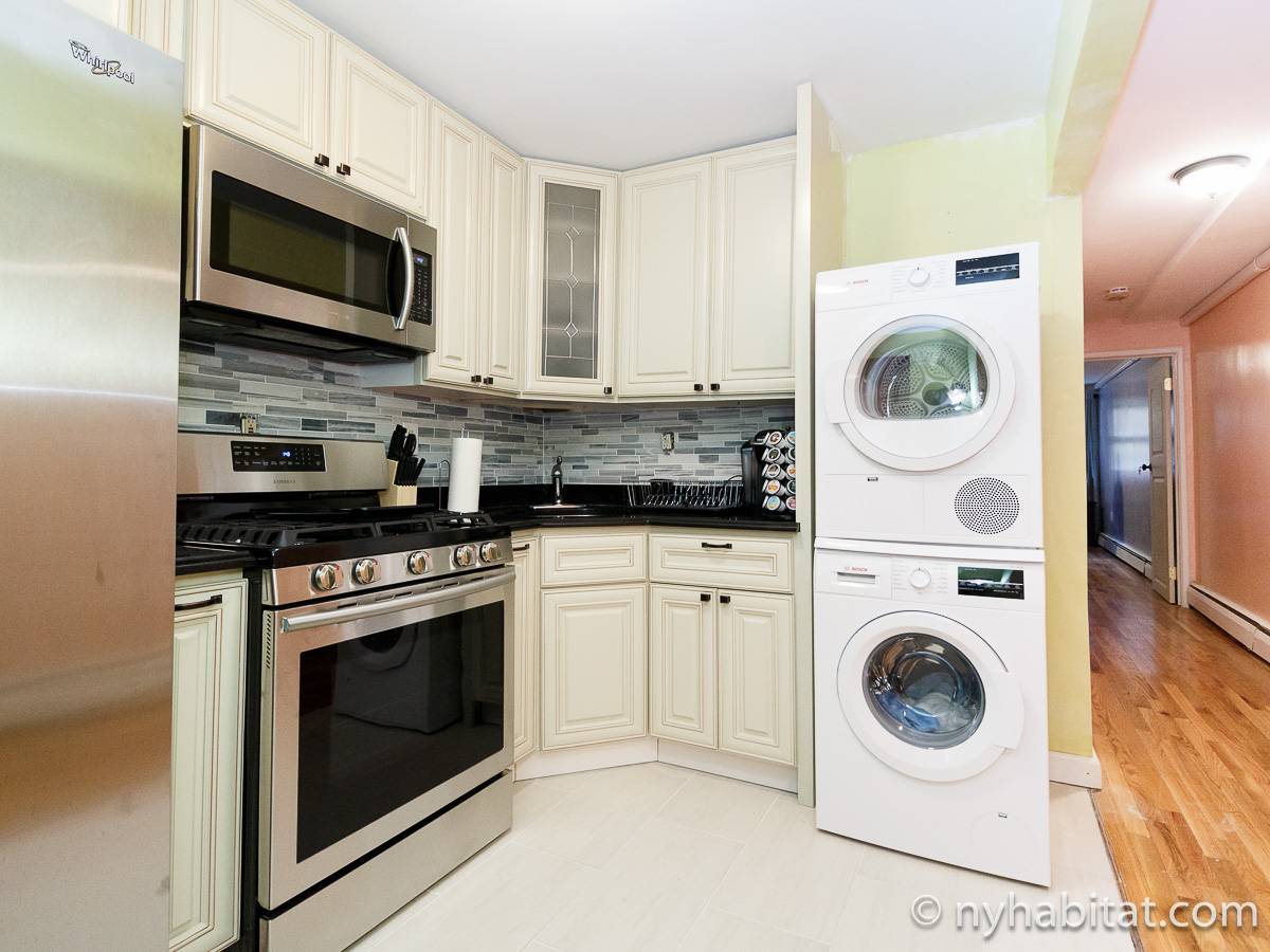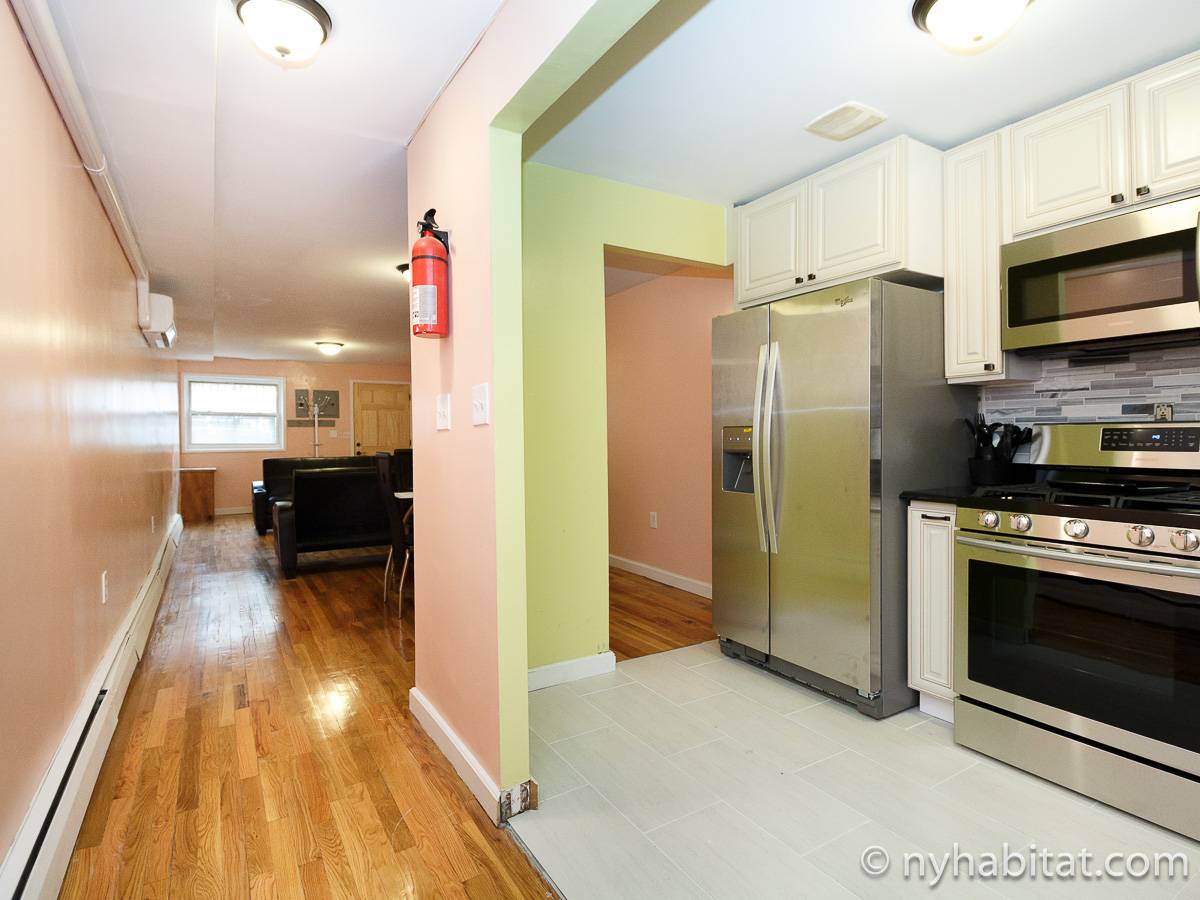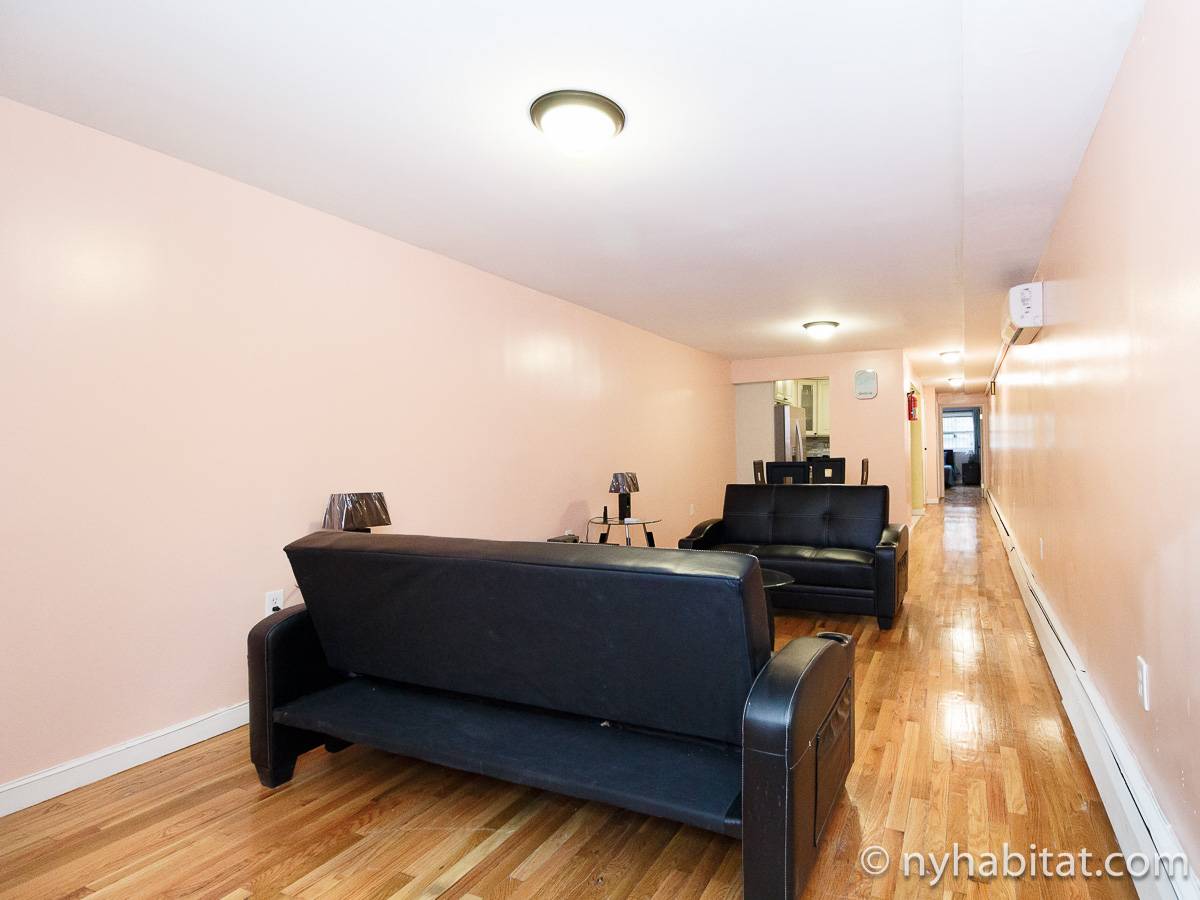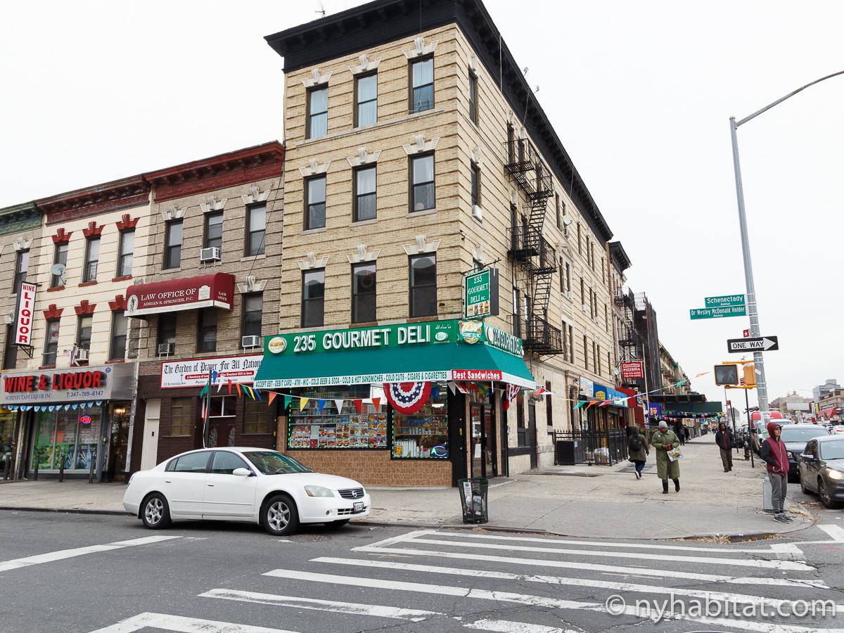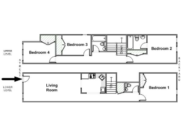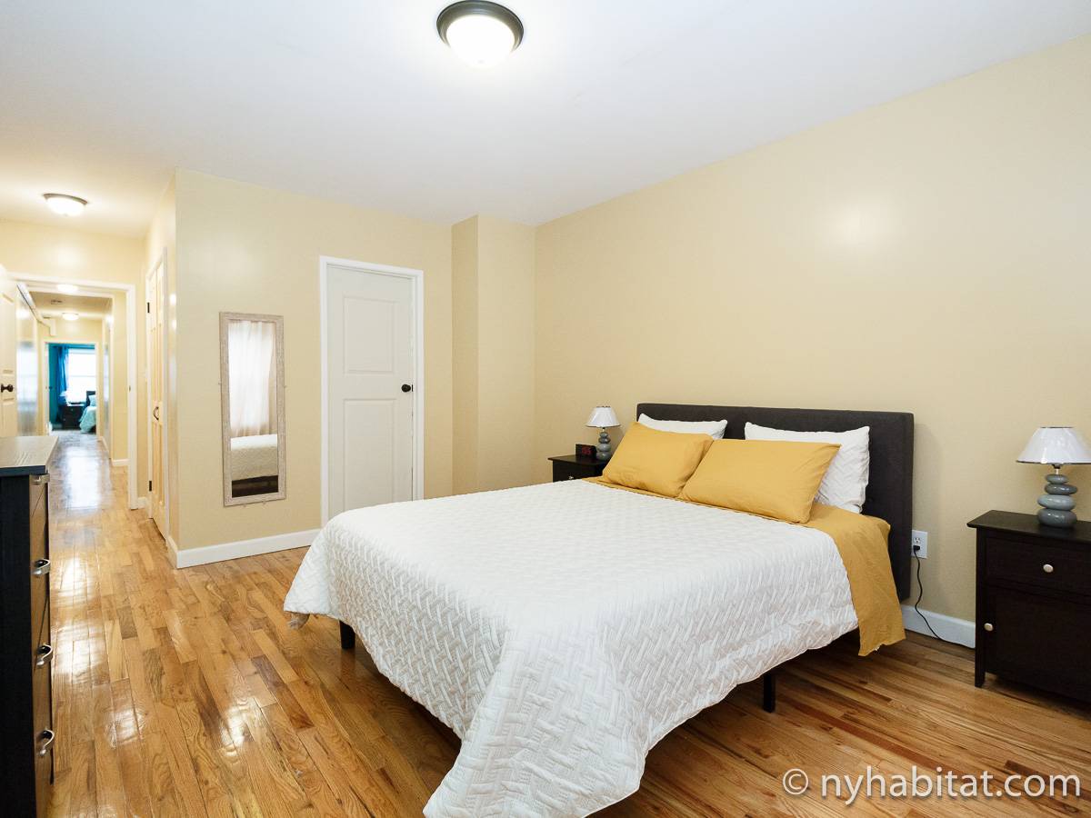 Welcome to this fully furnished four bedroom duplex apartment in the New York City borough of Brooklyn. You will find it at the corner of St Johns Place and Troy Avenue in Crown Heights, on the ground floor and 2nd floor (considered 1st European) of a townhouse with no elevator.