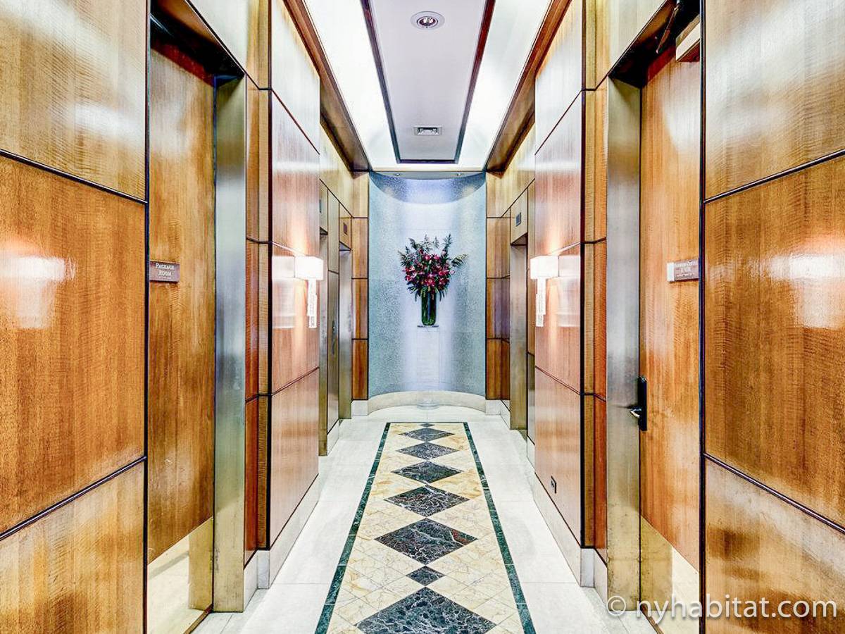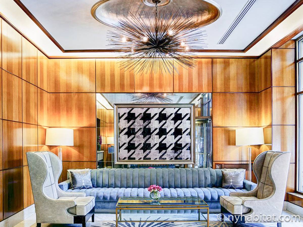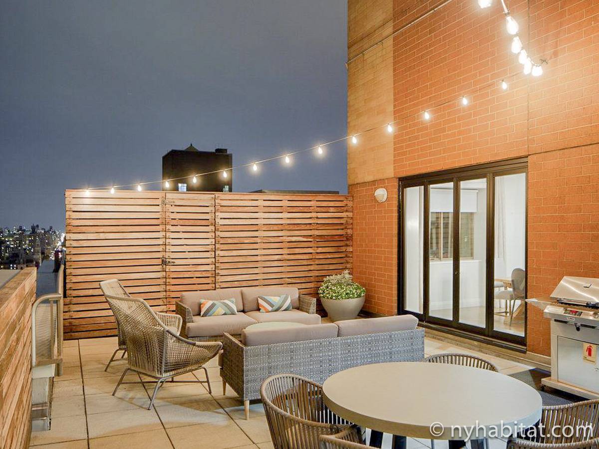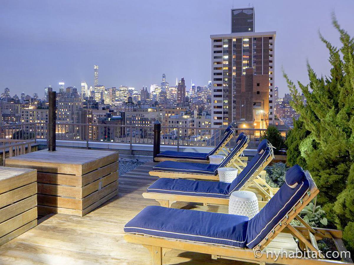 This furnished studio apartment is located on the 9th floor (equivalent to the 8th floor European) of a mid-rise, pet-friendly elevator building with full-time doorman, laundry room, and gym. The building is located near 89th Street and Amsterdam Avenue on the Upper West Side of Manhattan. Enjoy the luxury amenities of this building including landscaped rooftop sundeck with BBQ grills and stunning city views, the resident lounge, and a state-of-the-art fitness center.