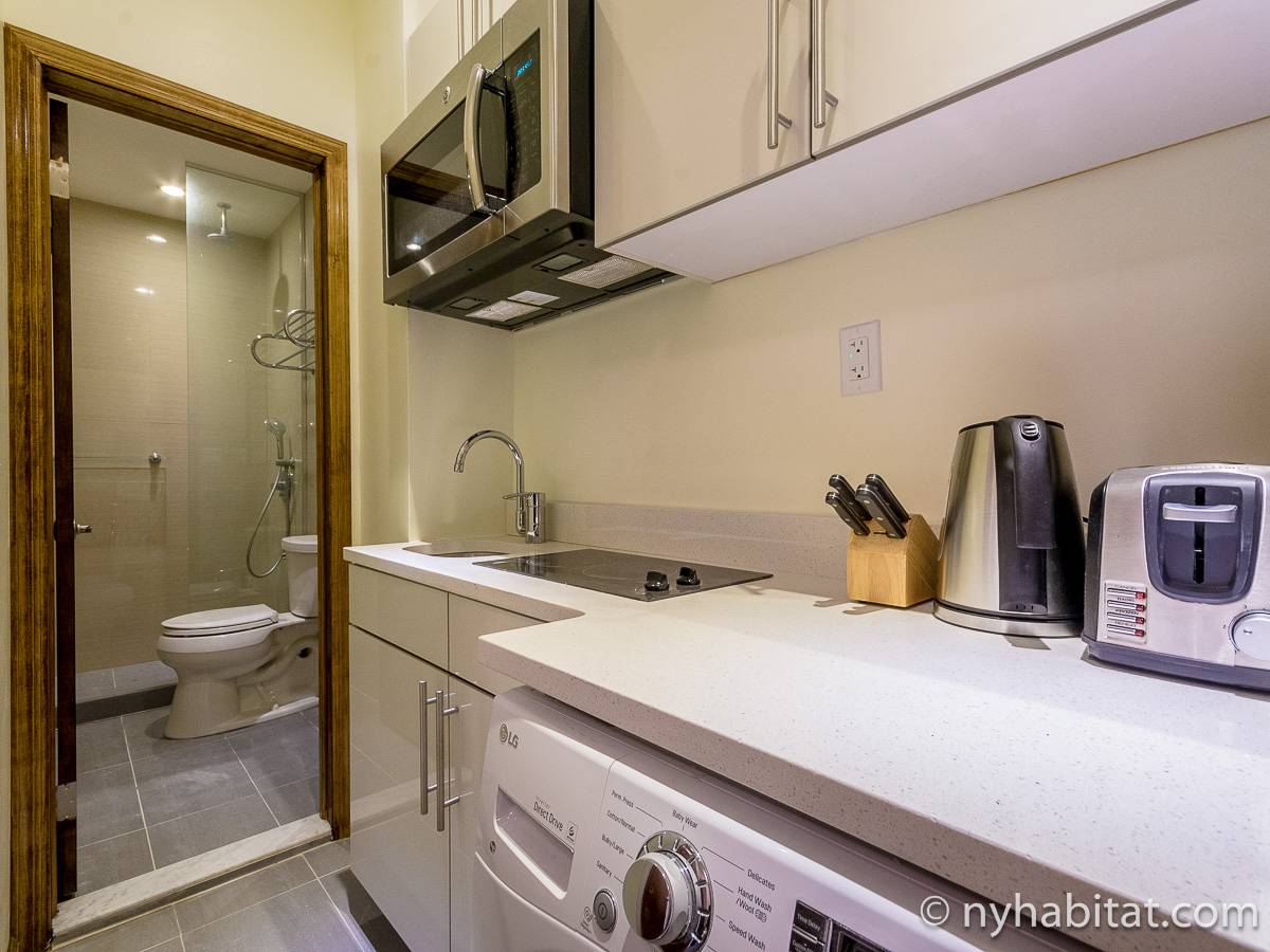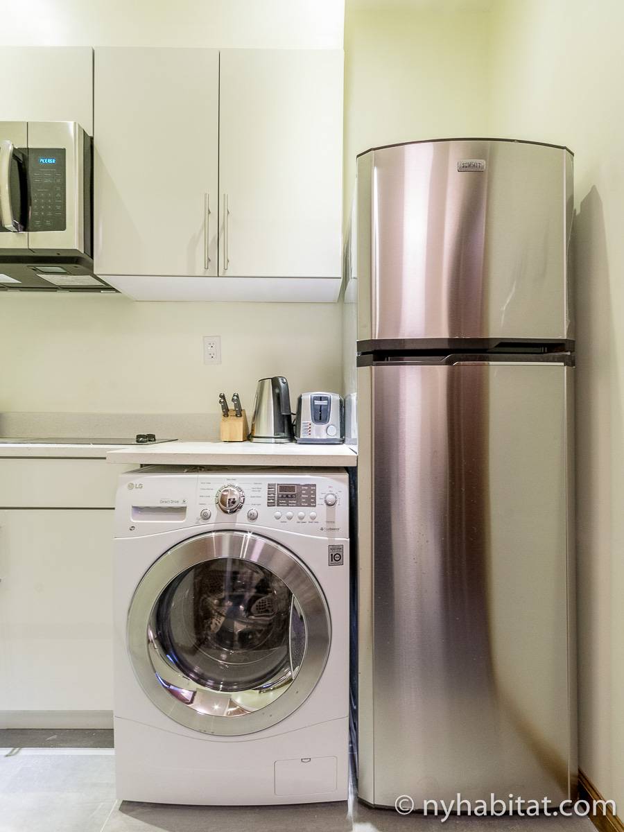 In one of NYC’s most iconic neighborhoods on the corner of West 18th Street & 8th Avenue is a two-bedroom furnished apartment. Chelsea is known for the outstanding architecture, elegant dining, and a nightlife scene known all over NYC. Find this apartment on the third floor of four (4th floor in Europe) with laundry facilities.