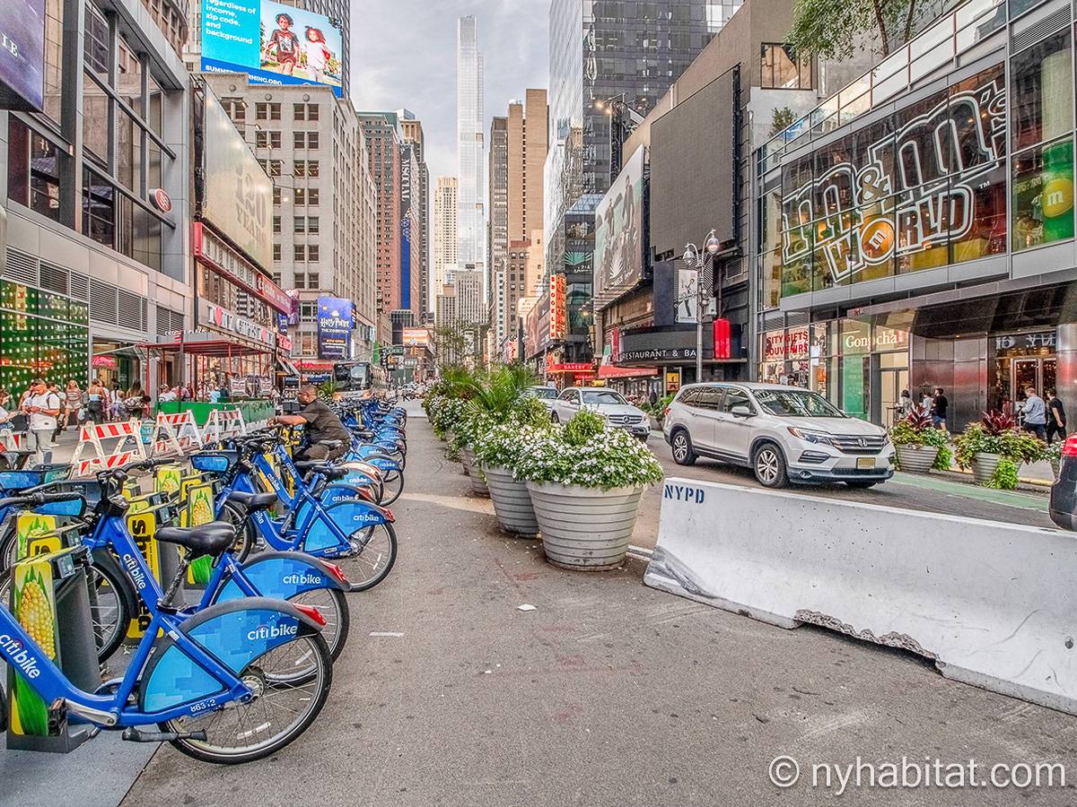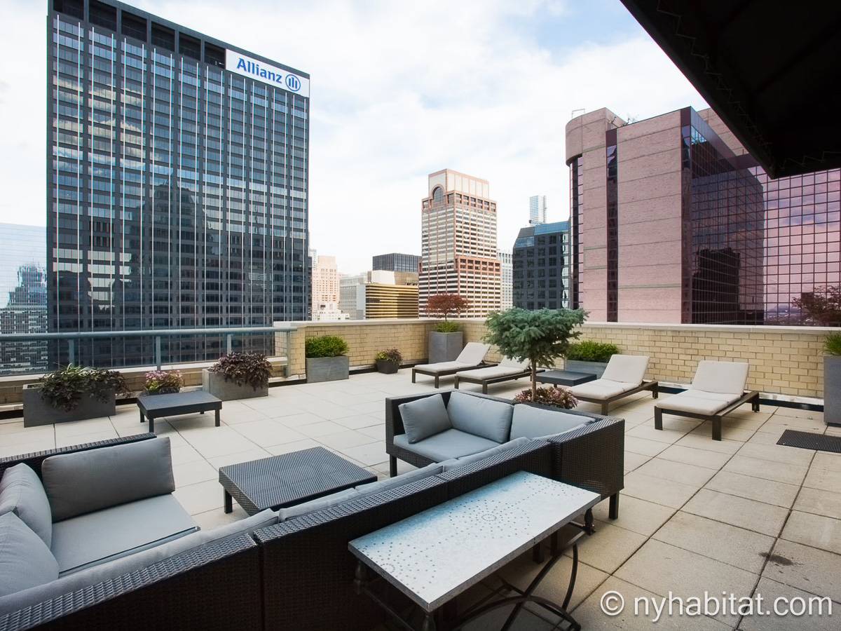 You’ll enjoy the luxury perks of this building including a spacious resident lounge with multiple TV’s and a fireplace to relax and read a book, get some work done or mingle with your neighbors. A spa-like indoor pool area awaits you after a long day, or head to the rooftop sundeck with lounges to enjoy the outdoors and the NYC view! Step outside and you have plenty of dining choices in the Midtown West area such as La Masseria (.1mi/.16km away) for Italian cuisine or P.S. Kitchen (.2mi/.32km away) for vegetarian options. Nearby you’ll find Bryant Park, a green little oasis in Midtown where you can grab lunch outside or picnic on the lawn when the weather is nice or catch its Winter Village for holiday shopping and free ice skating in the colder months.