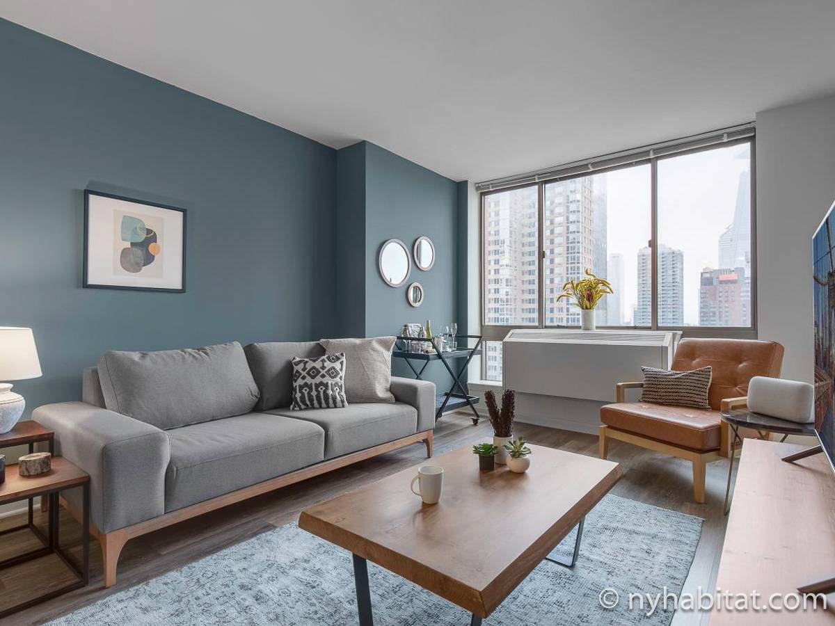 Make yourself at home in this furnished 1 bedroom apartment in Manhattan’s bustling Midtown West. The apartment is situated on the 30th floor in a pet-friendly, high-rise, elevator building with full time doorman located near West 43rd Street & 10th Avenue. The building offers a convenient gym and laundry facilities on-site among an array of other amenities.