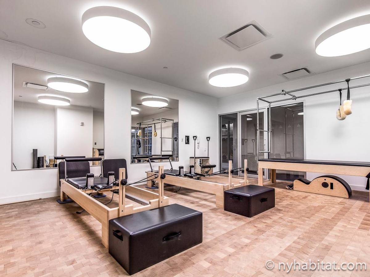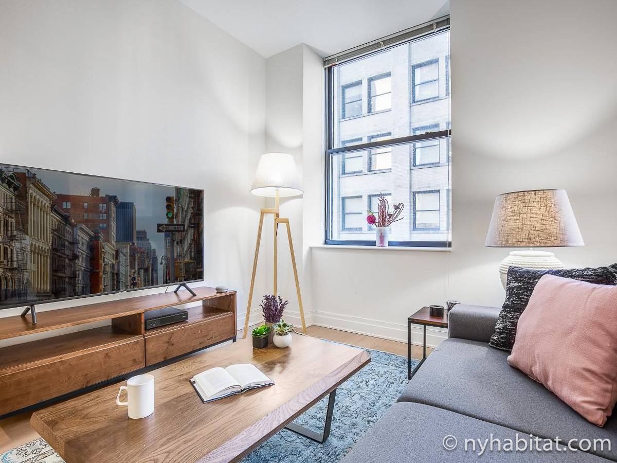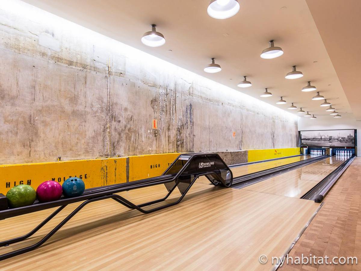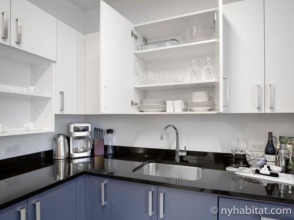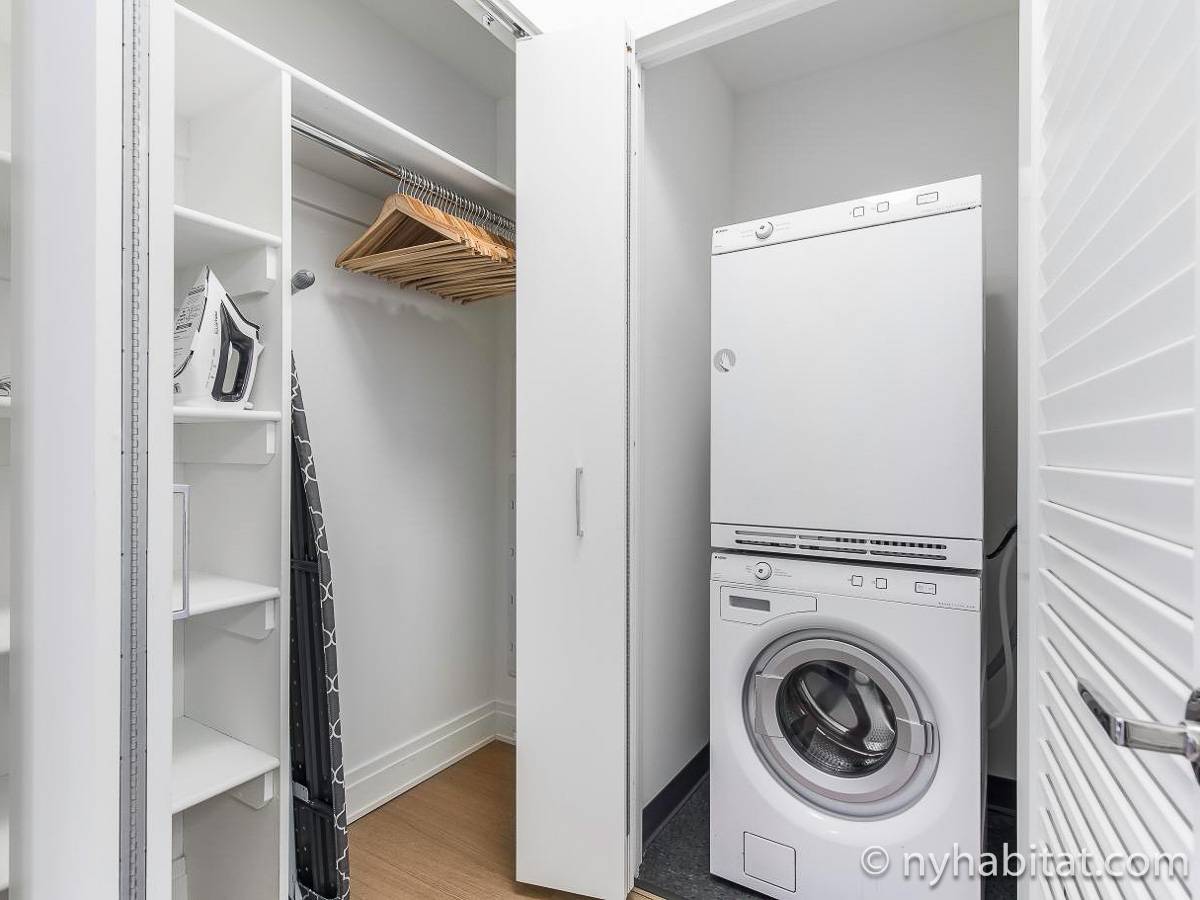 Modern and comfortable, this Murray Hill furnished studio apartment in Manhattan near East 33rd Street & Lexington Avenue has all one can ask for and then some. It is on the 16th floor (equivalent to the European 15th floor) of an elevator building. The high-rise building features laundry facilities, a fitness gym, massage center, bowling alley, and tenant meeting areas.