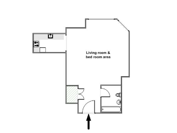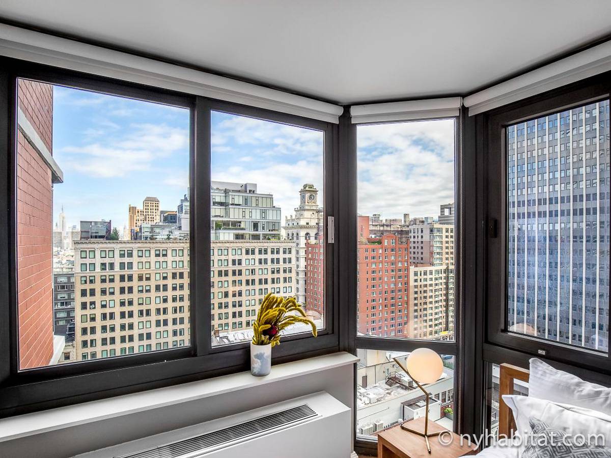Live in one of New York City’s poshest neighborhoods when you rent this furnished studio apartment near Duane Street & Broadway in Manhattan’s Tribeca area. The apartment is located on the 18th floor (17th floor European) of a pet-friendly, high-rise, elevator building. Building amenities include a full-time doorman, laundry room, rooftop sundeck, lounge, indoor pool and gym.