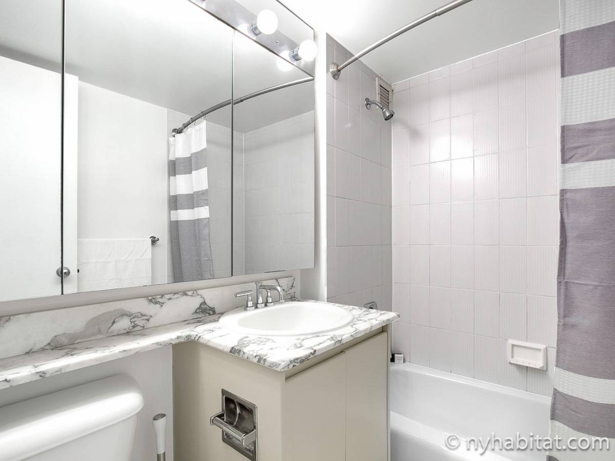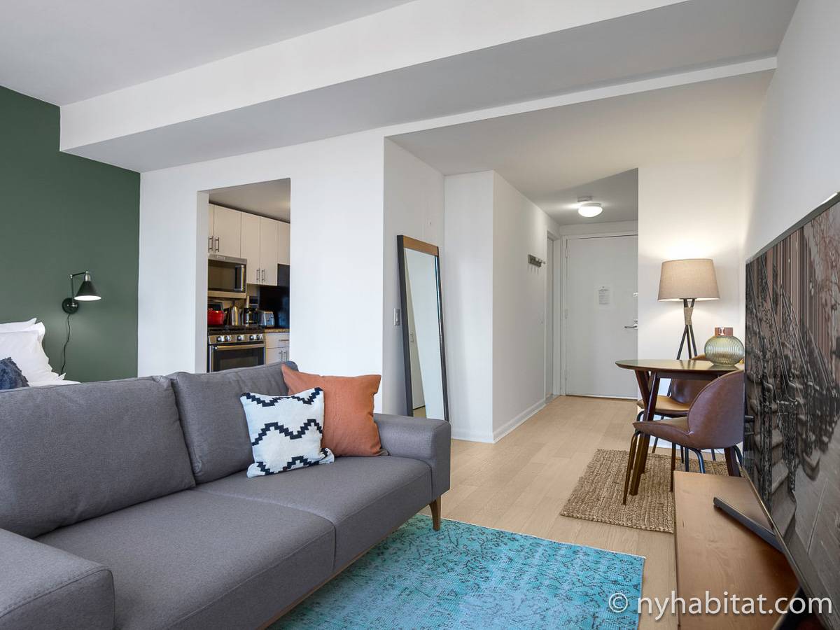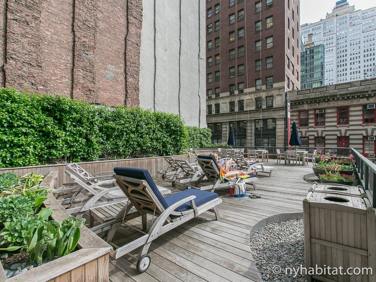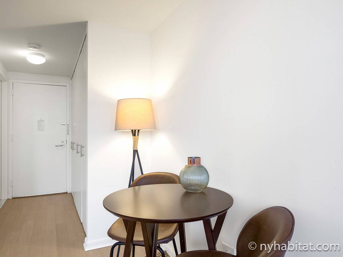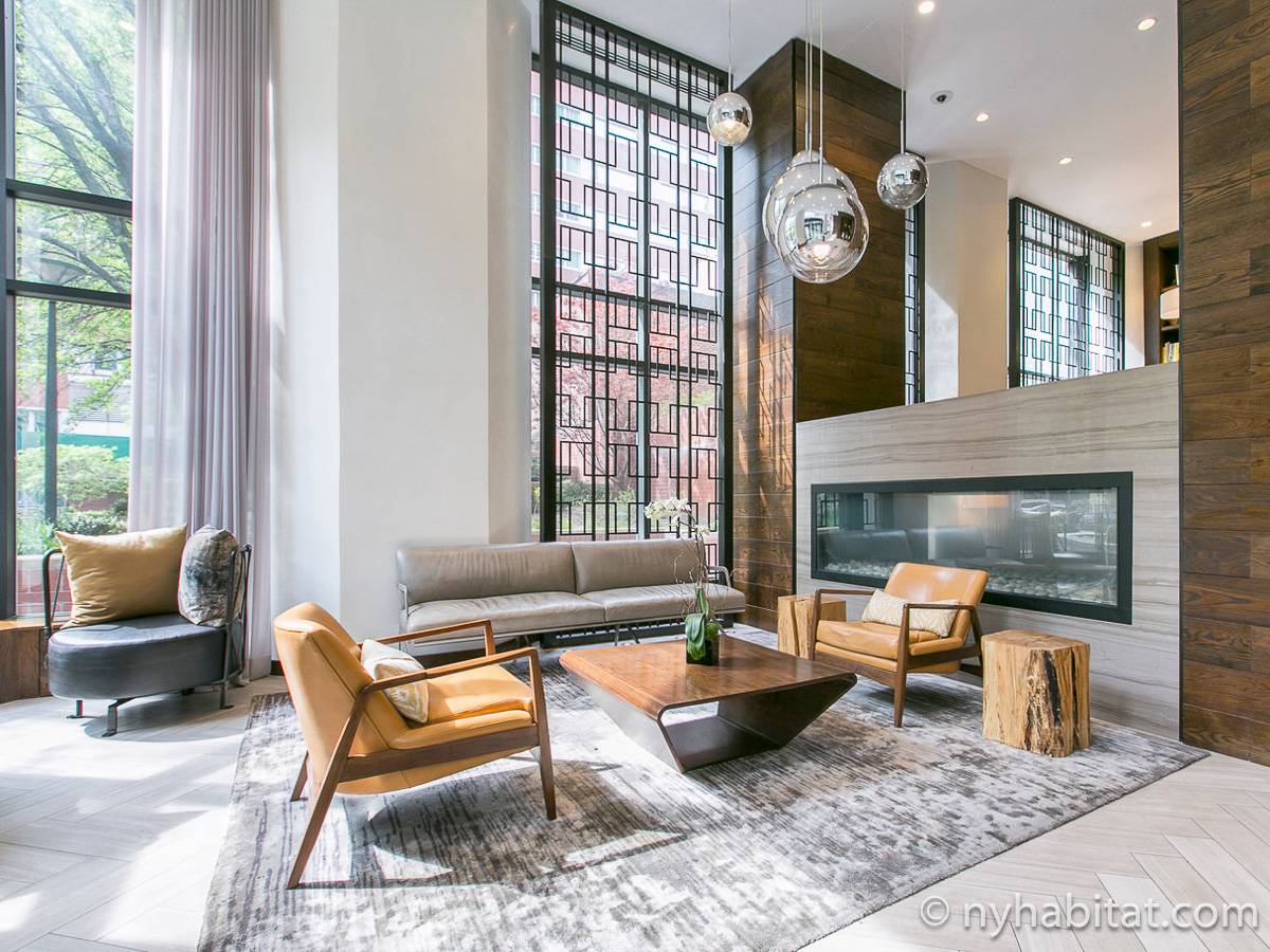 This fully furnished, 469 square feet (44 square meters) apartment is available to sublet between Duane Street & Broadway in Tribeca, New York! This high-rise apartment building is accommodated with a gym, an indoor swimming pool, and elevators at your convenience!