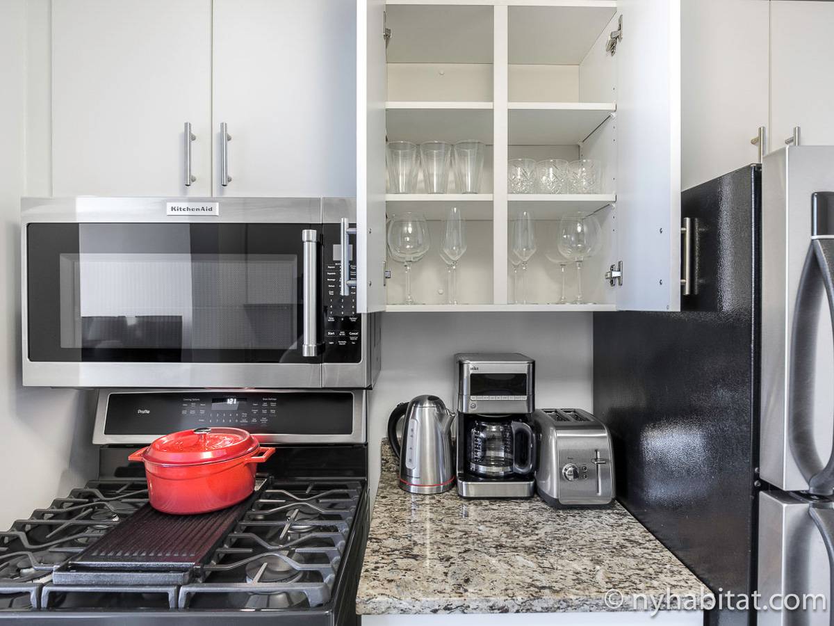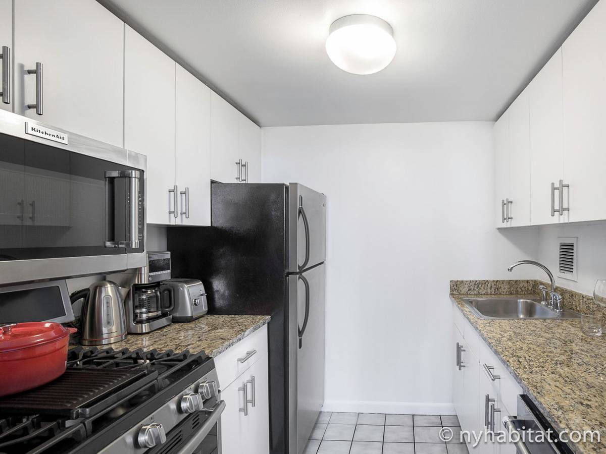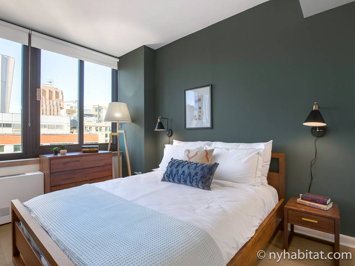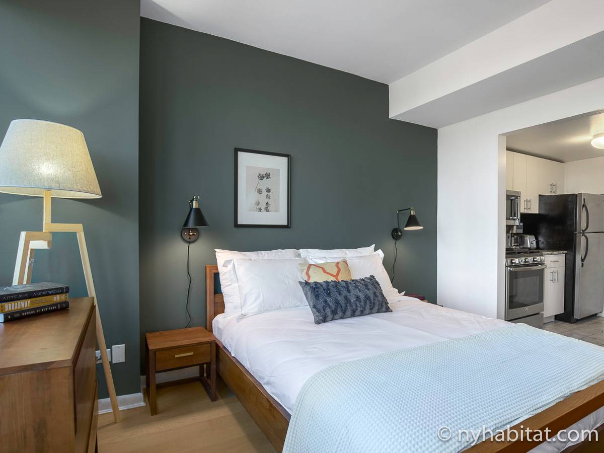 This fully furnished, 469 square feet (44 square meters) apartment is available to sublet between Duane Street & Broadway in Tribeca, New York! This high-rise apartment building is accommodated with a gym, an indoor swimming pool, and elevators at your convenience!