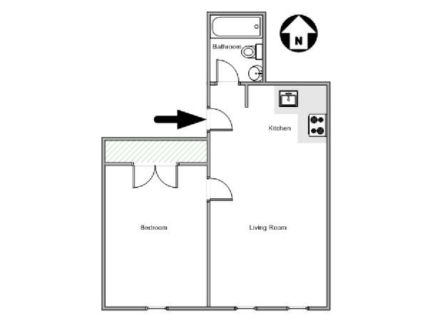 This New York 1 bedroom apartment has those beloved brownstone features like tall windows and a decorative fireplace. The apartment has parquet wood floors throughout and windows facing south overlooking the tree-lined street. Sunlight illuminates the apartment that is painted a creamy yellow adding a sunny brightness. In the living room the blue sofa adds some color and opens to a double sofa bed to accommodate guests. It’s situated across from the flat screen TV that sits atop the decorative fireplace mantel. There’s also a dining table for two to sit down to a meal in the comfort of home. The open kitchen has dark wood cabinetry and white appliances and is equipped with all you need for preparing food at home. The bedroom is furnished with a double bed along with a dresser for storage and a mirror. The bathroom has a combo tub/shower, toilet, vanity mirror and sink with storage cabinets beneath.