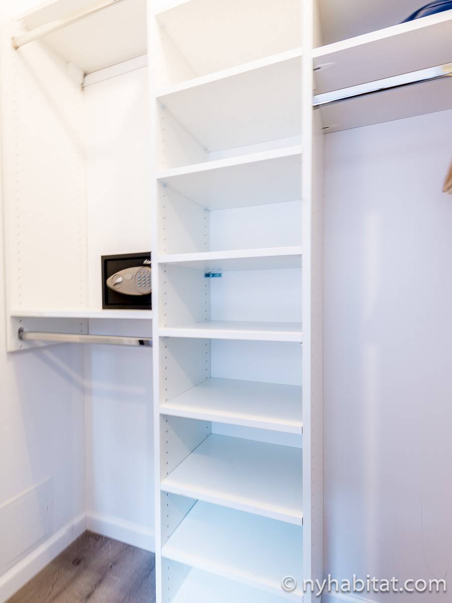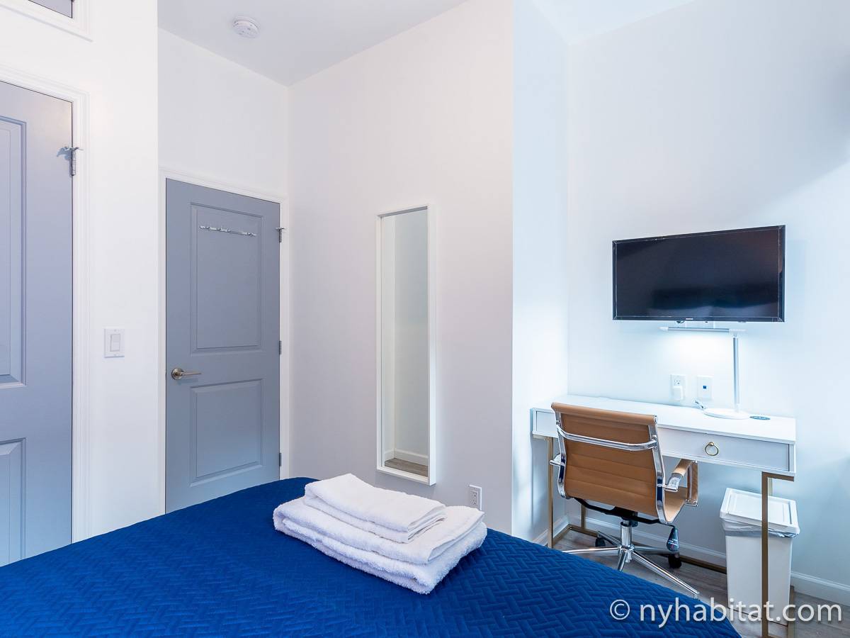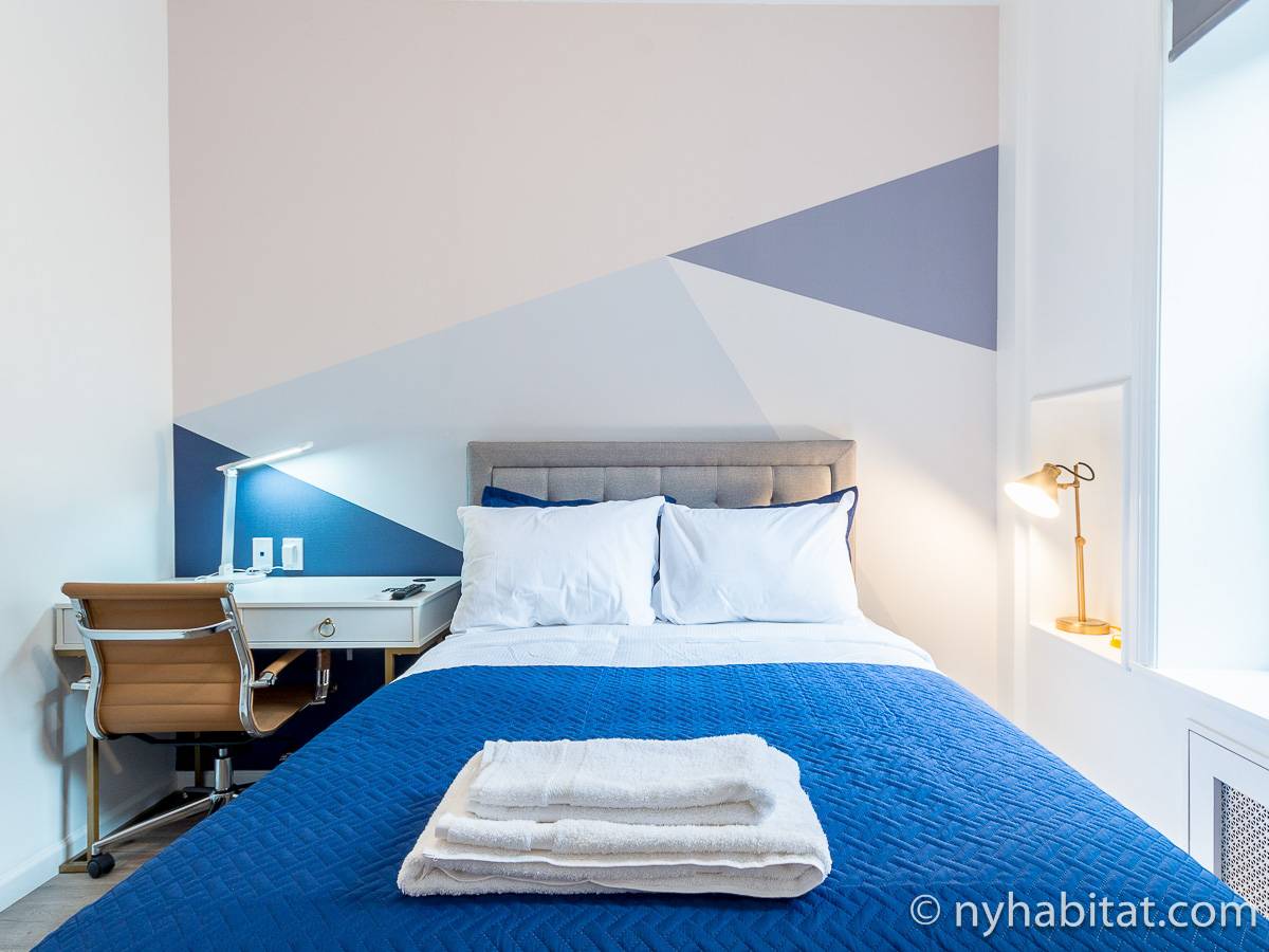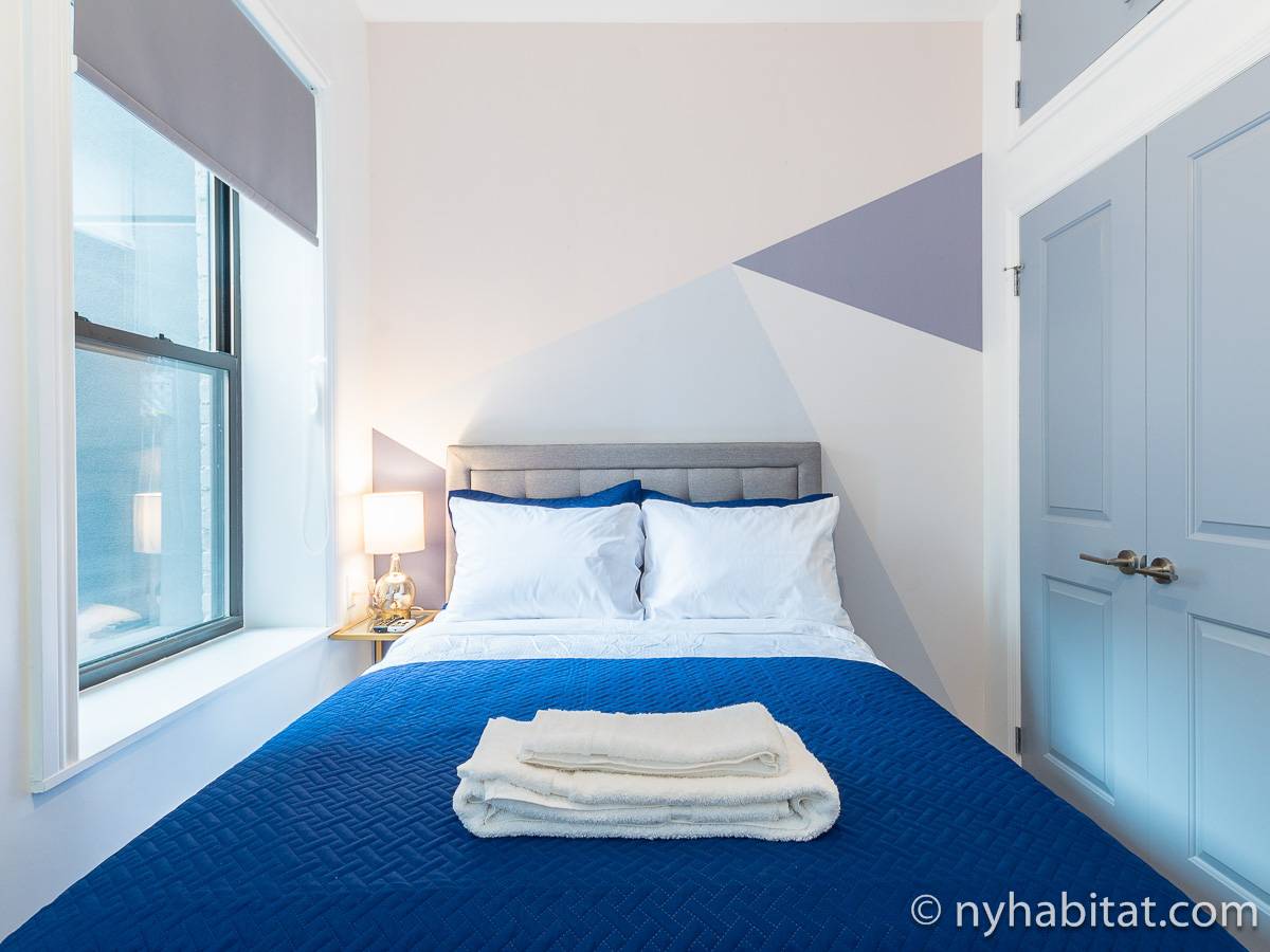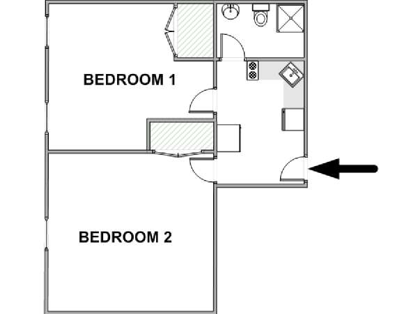This modern style two-bedroom apartment is available at West 3rd Street & 6th Avenue in Greenwich Village, New York! It is 354 square feet (33 sqm) in size and located on the 2nd floor out of 4 total floors (equivalent to the European 1st floor). The building offers amenities such as a security system, laundry inside the apartment, and air conditioning. Please also note that this apartment can be rented both as a private apartment and as a roommate share, where the bedrooms are private and the kitchen and bathroom are shared with a roommate.