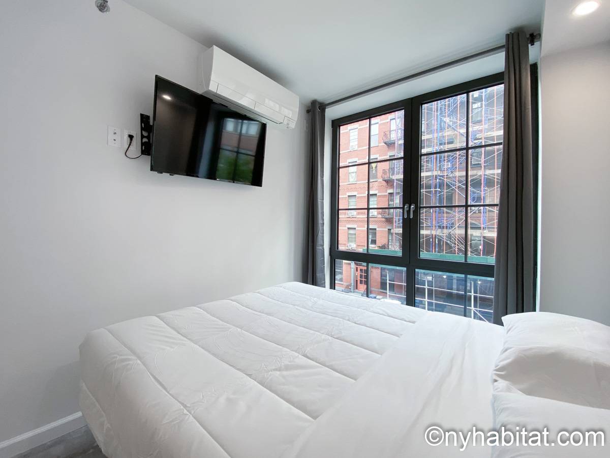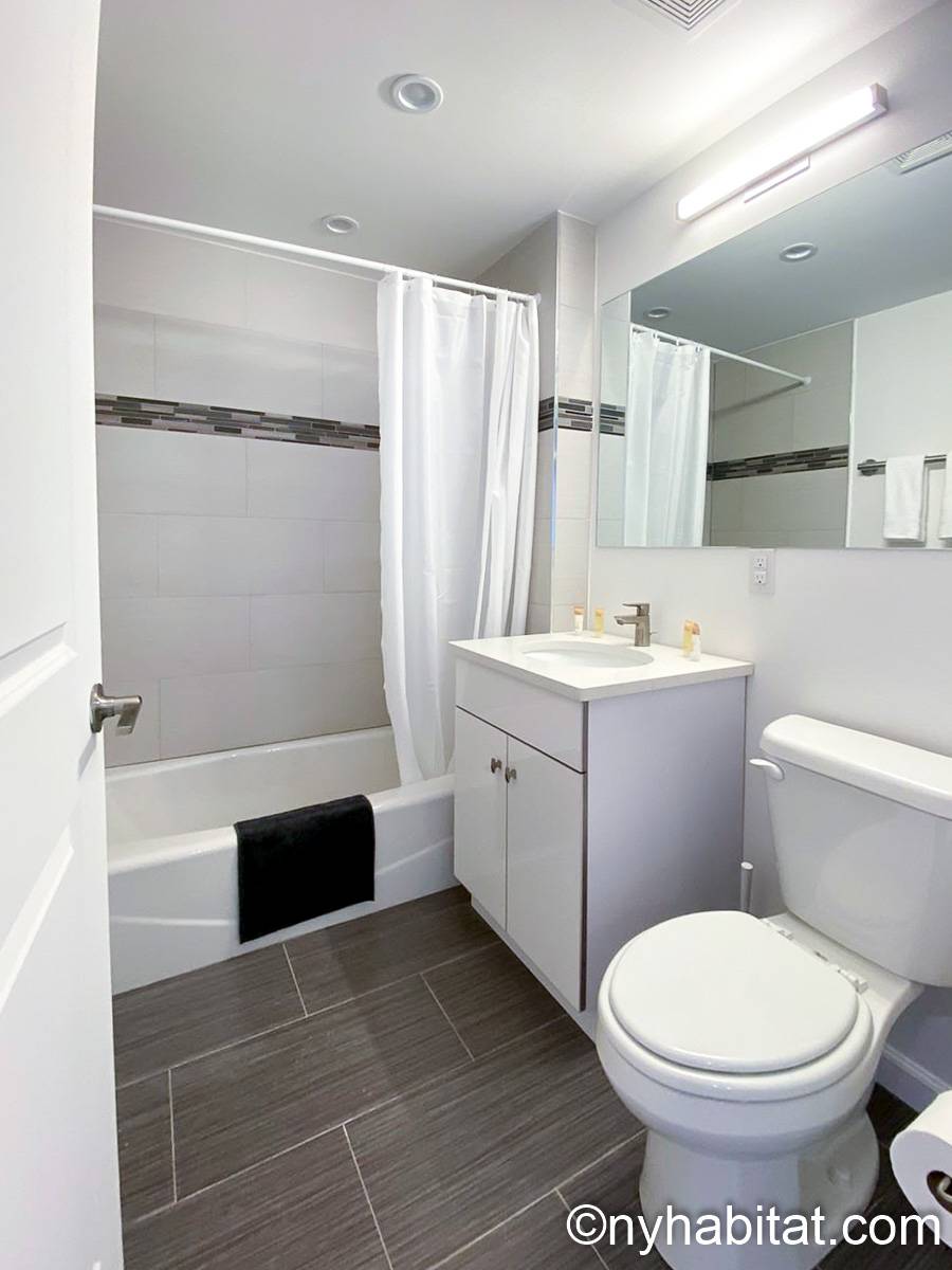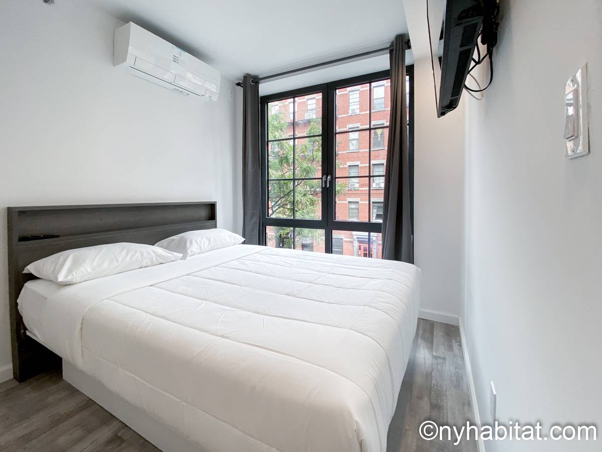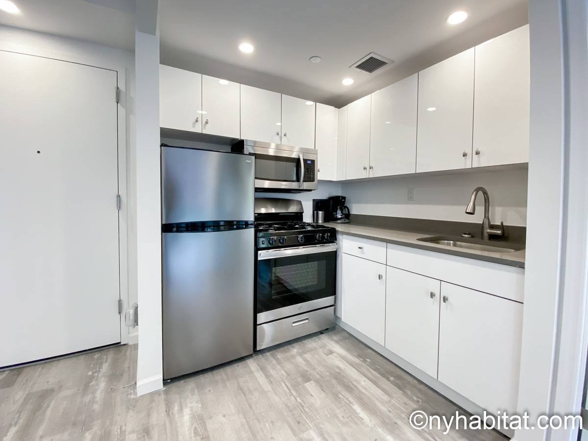 The interior photos are from a model apartment in the building. The model apartment is representative of both the quality and style of apartments offered at this location. Description, floor plan and photos are for reference purposes only. Actual apartment's dimensions, layouts and furniture may vary. On the corner of West 53rd Street and 10th Avenue, this two-bedroom furnished apartment is located in the middle of Manhattan, New York City. This is Midtown West, a neighborhood that borders the Hudson River. This furnished rental, a 600-square-foot space, sits on the third floor (equivalent to the second floor in Europe) of an elevator building. Large windows allow in nautral light, and there is a laundry room in the building and a security system.