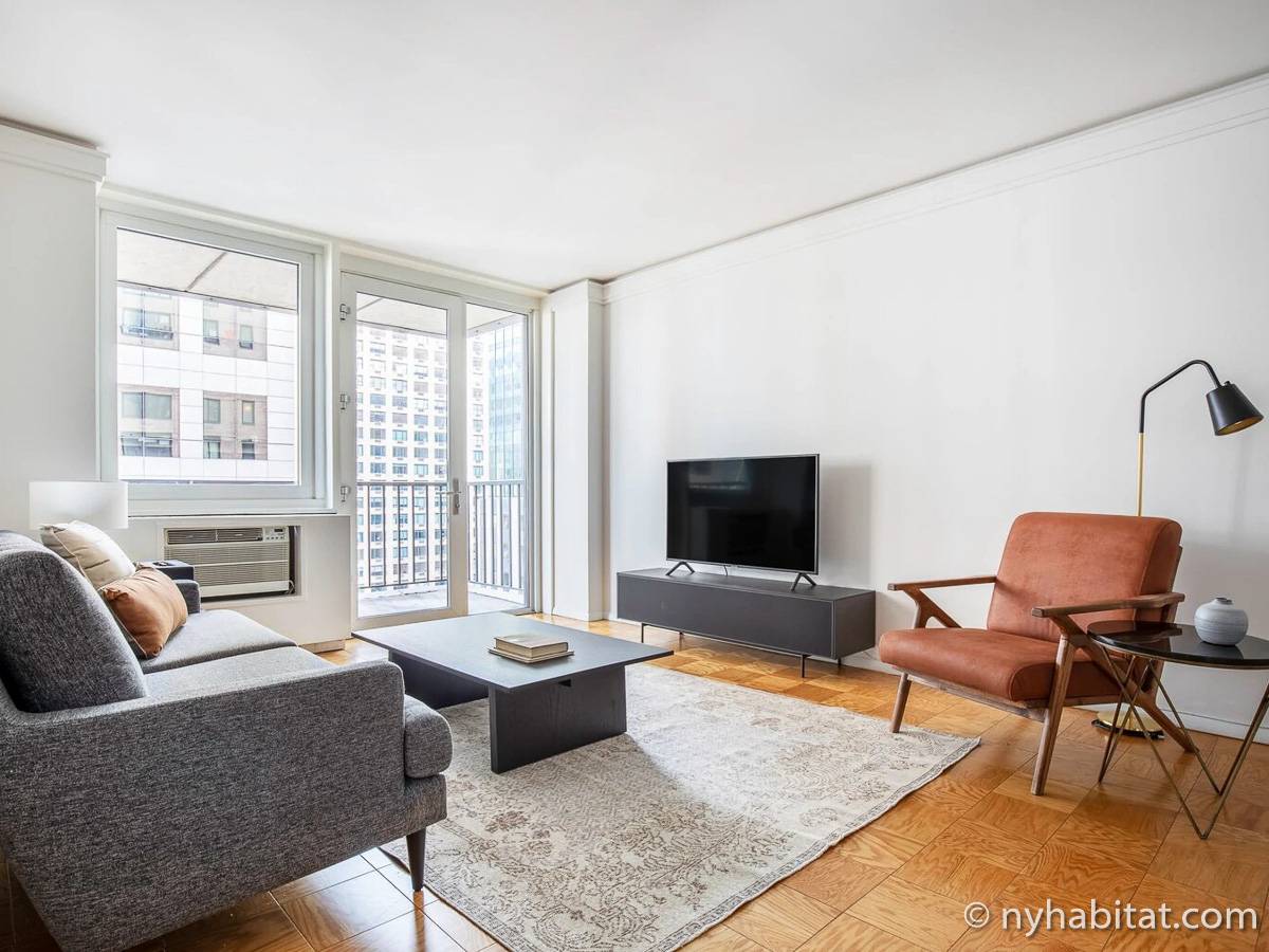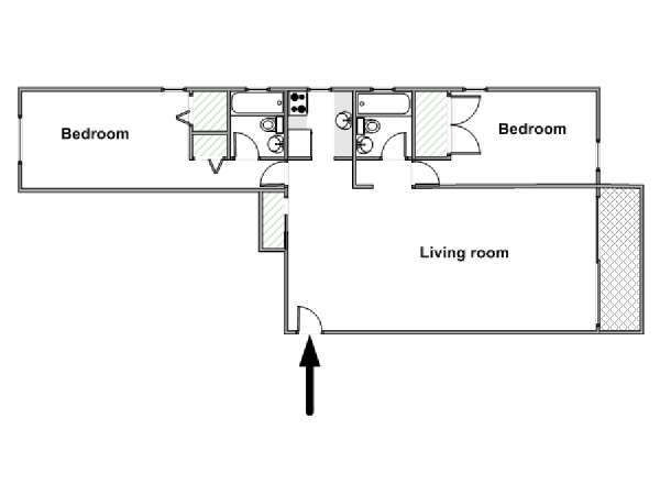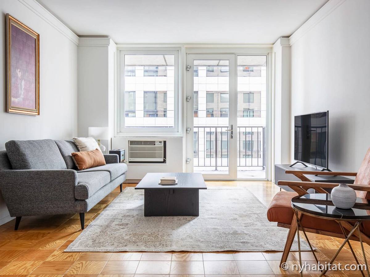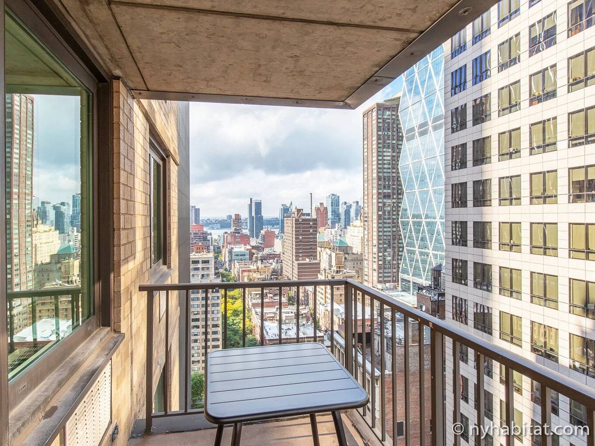 This private, two-bedroom apartment acquires the comfort and luxury for any resident who desires to experience the city from West 55th Street and 8th Avenue in Midtown West, on the edge of what is famously known as Hell’s Kitchen! This serviced apartment holds access to a gym, elevator for convenience, and an exclusive balcony to view the city!