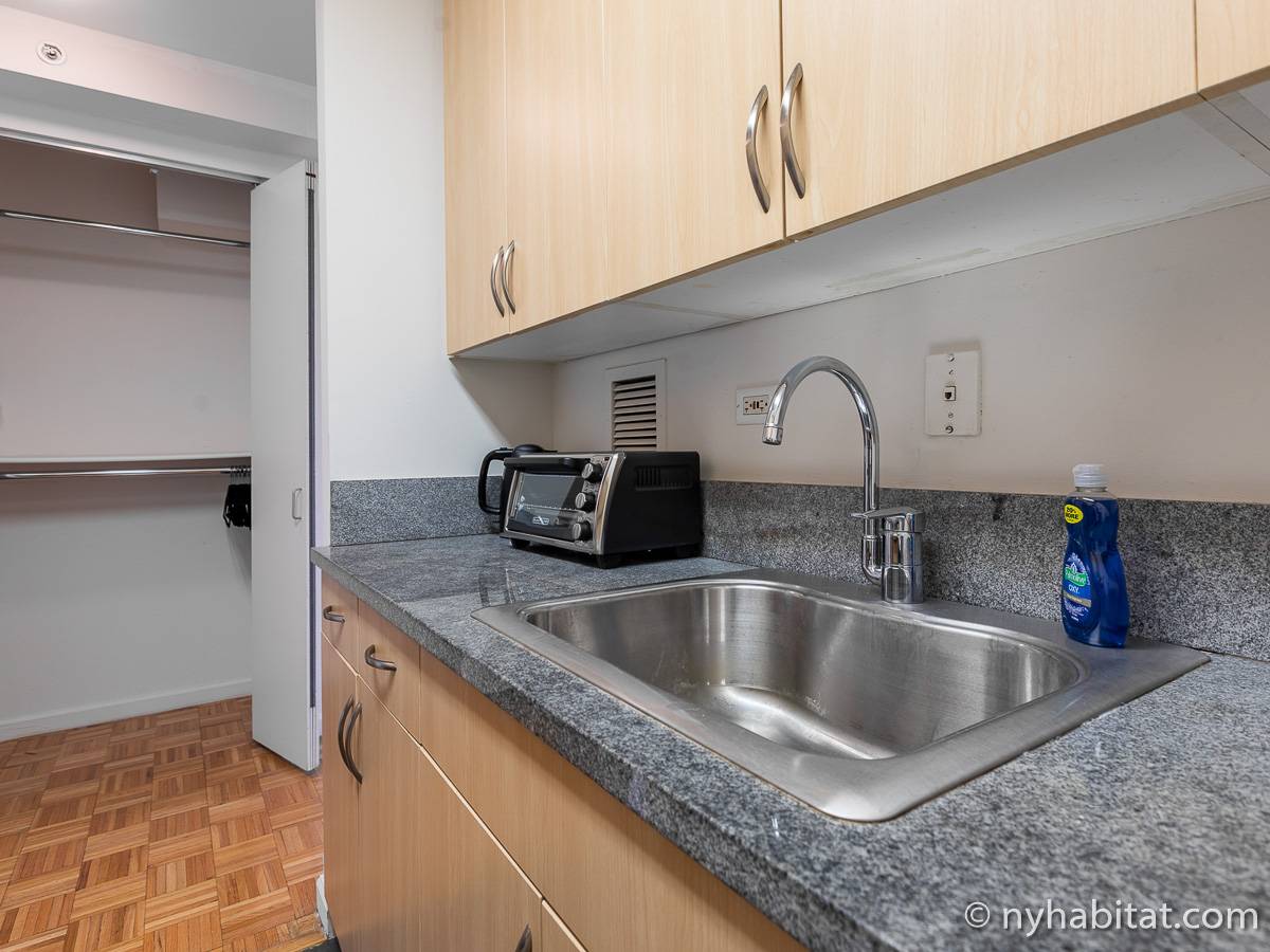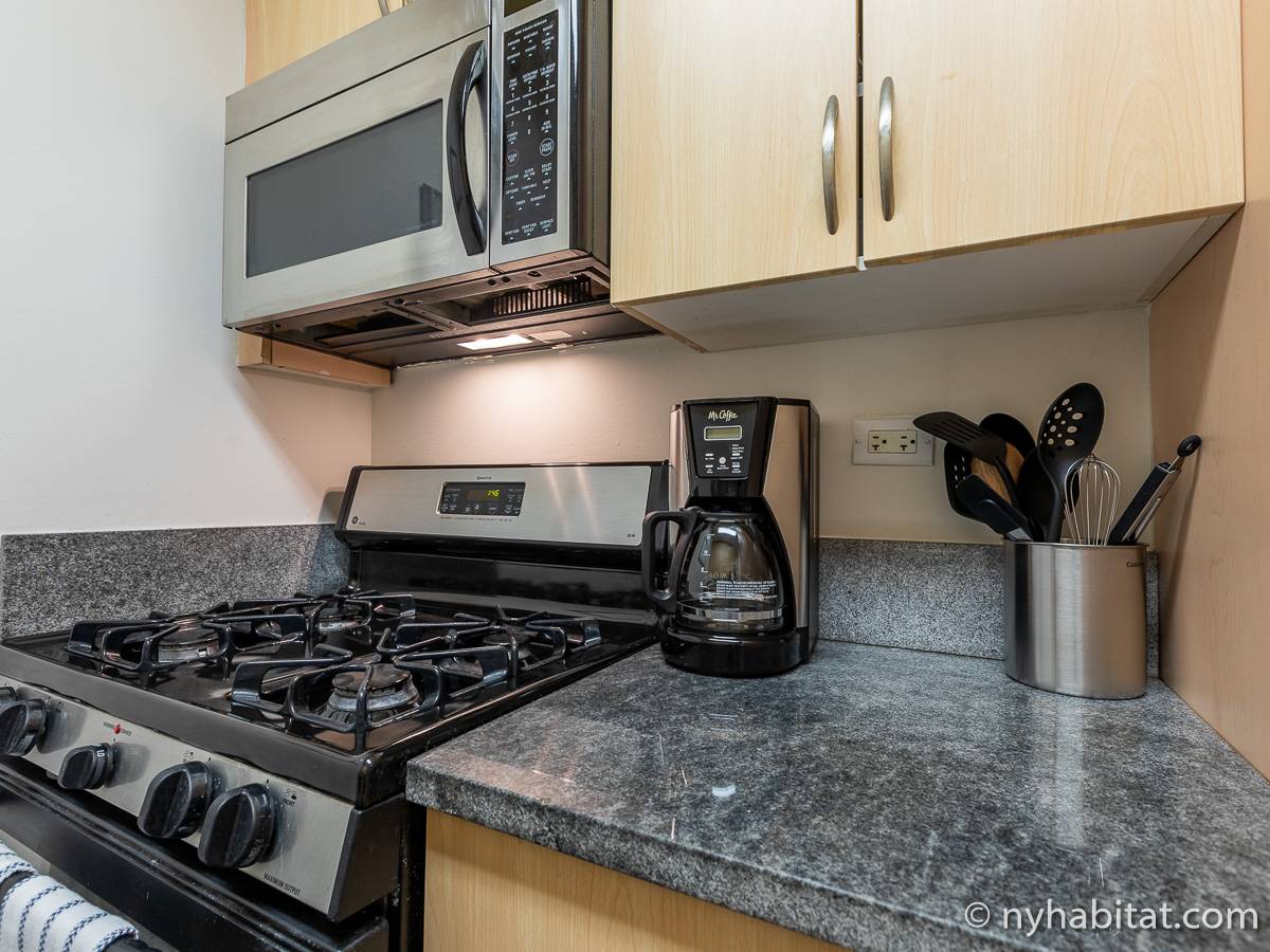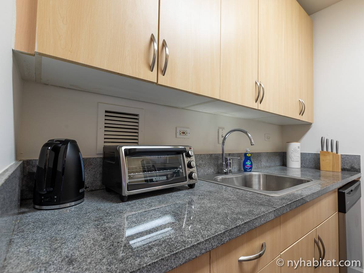 Located on the crossing streets of West 47th Street and 8th Avenue, this modern decorated one bedroom is in the heart of Midtown West. The building includes laundry machines available, a garage, and a gym! Known for its life, the attractions, top rated food, and accessibility, this is a classic New York experience