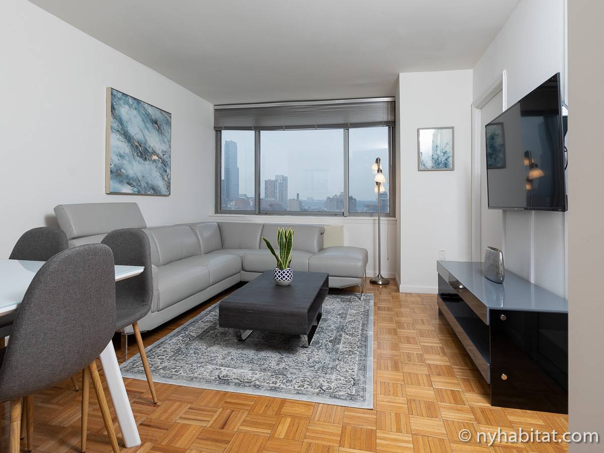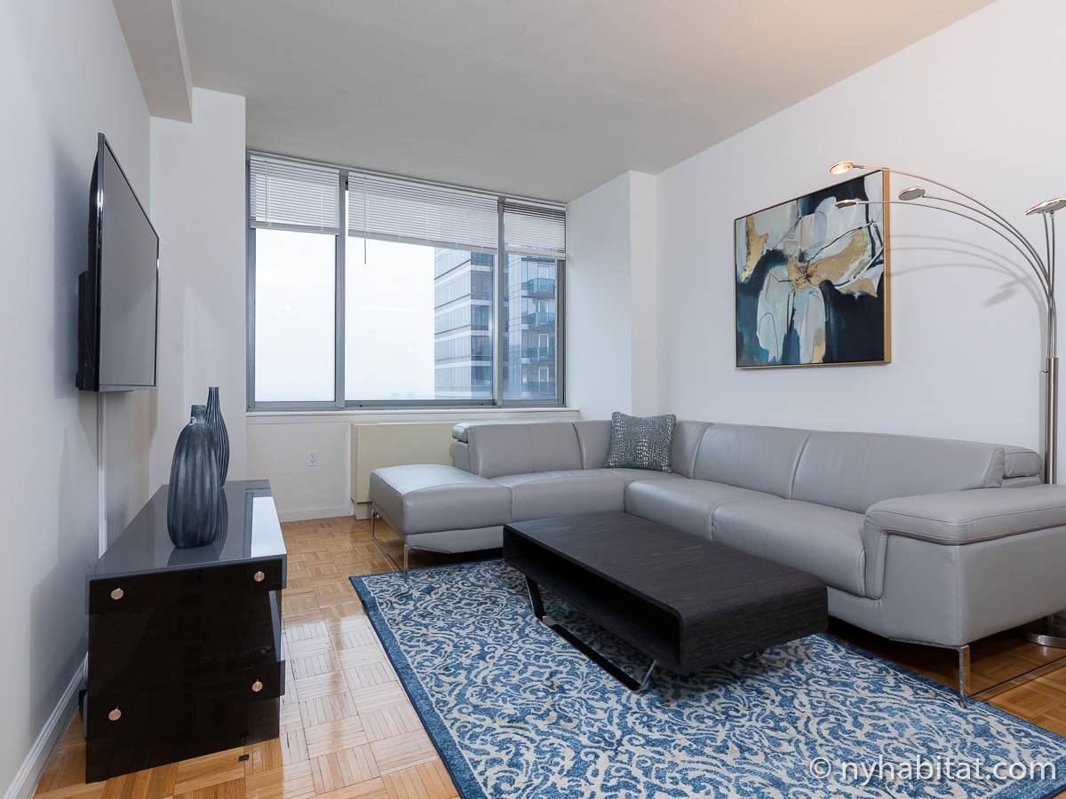 This fully furnished, one-bedroom apartment is available on West 46th Street between 8th and 9th Avenue in Midtown West, New York! This 441-square-foot (around 41 m2) apartment is located on the 3rd floor (equivalent to the 2nd floor in Europe) of the building.