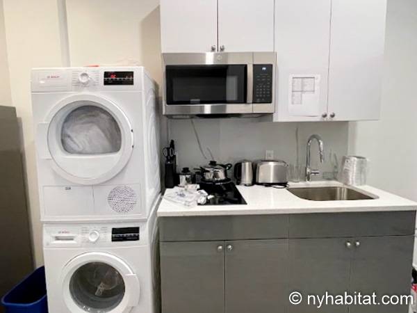 This iconic neighborhood, well known for being a cultural and intellectual hub of New York City, is home to New York University (NYU). Restaurants, performance venues, and a few museums are to be found within a half-mile (around 800 meters) radius of the apartment. John V. Lindsay East River Park is a mile away (around 1.6 km). From this waterfront green space, you can see the Brooklyn Bridge.