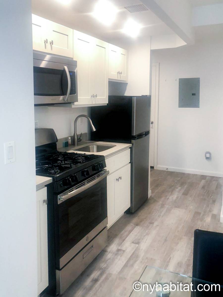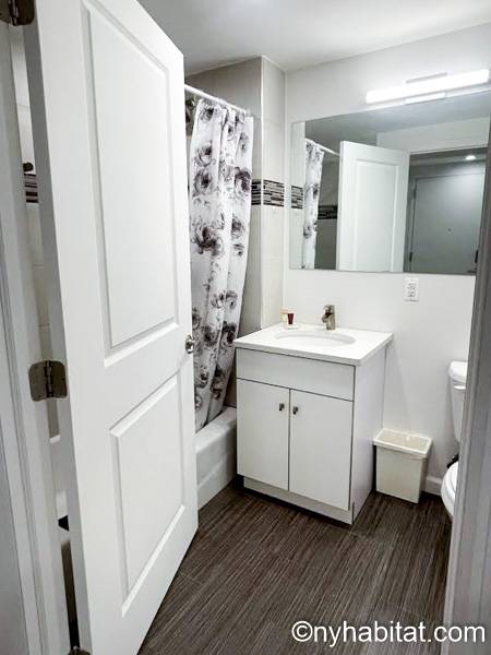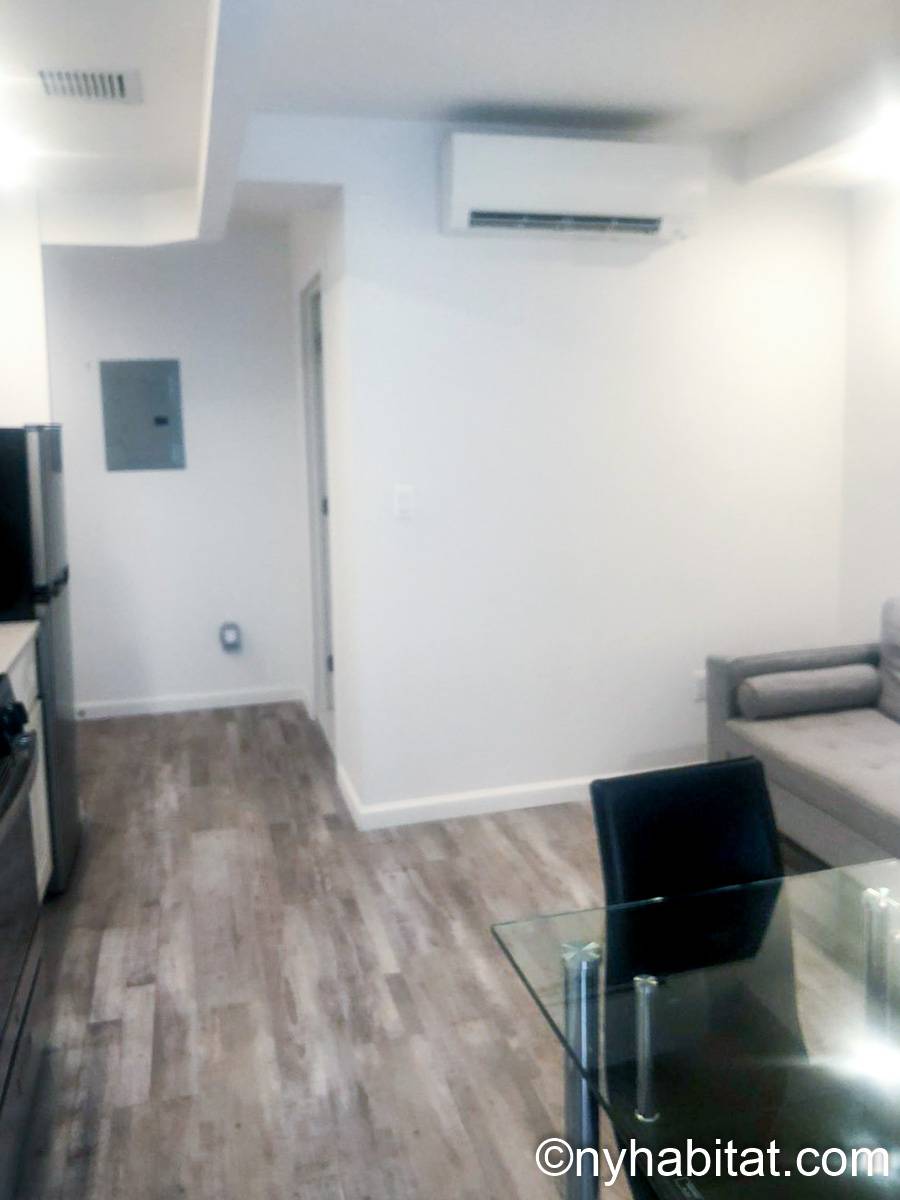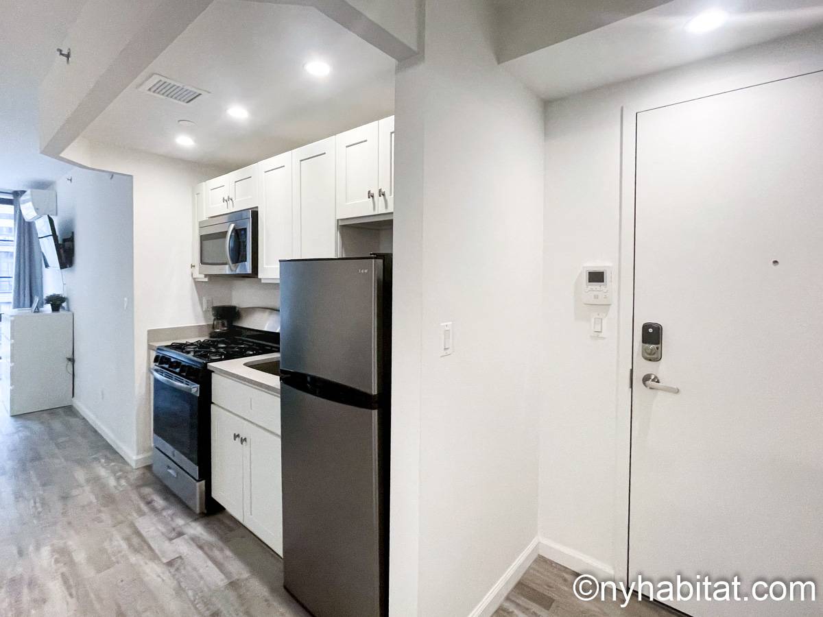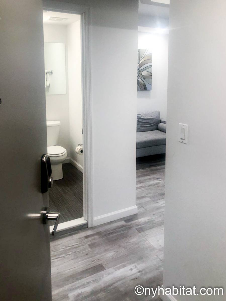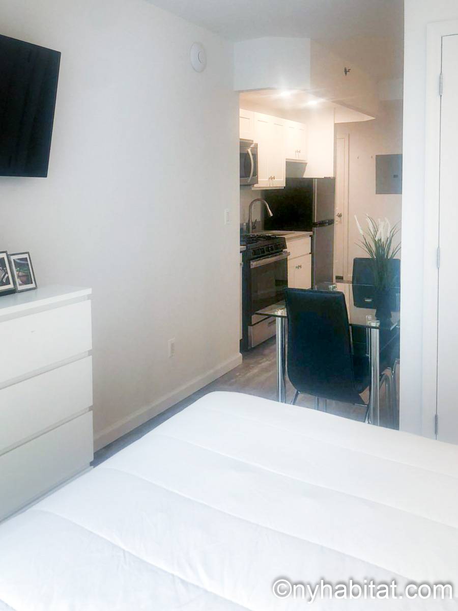 This apartment is a studio is located in the Midtown West area of Manhattan, between West 53rd Street and 10th Avenue. It is on the second floor (equivalent to the first European floor) of a low-rise building. The building is monitored by a security system, and it has laundry and elevator available.