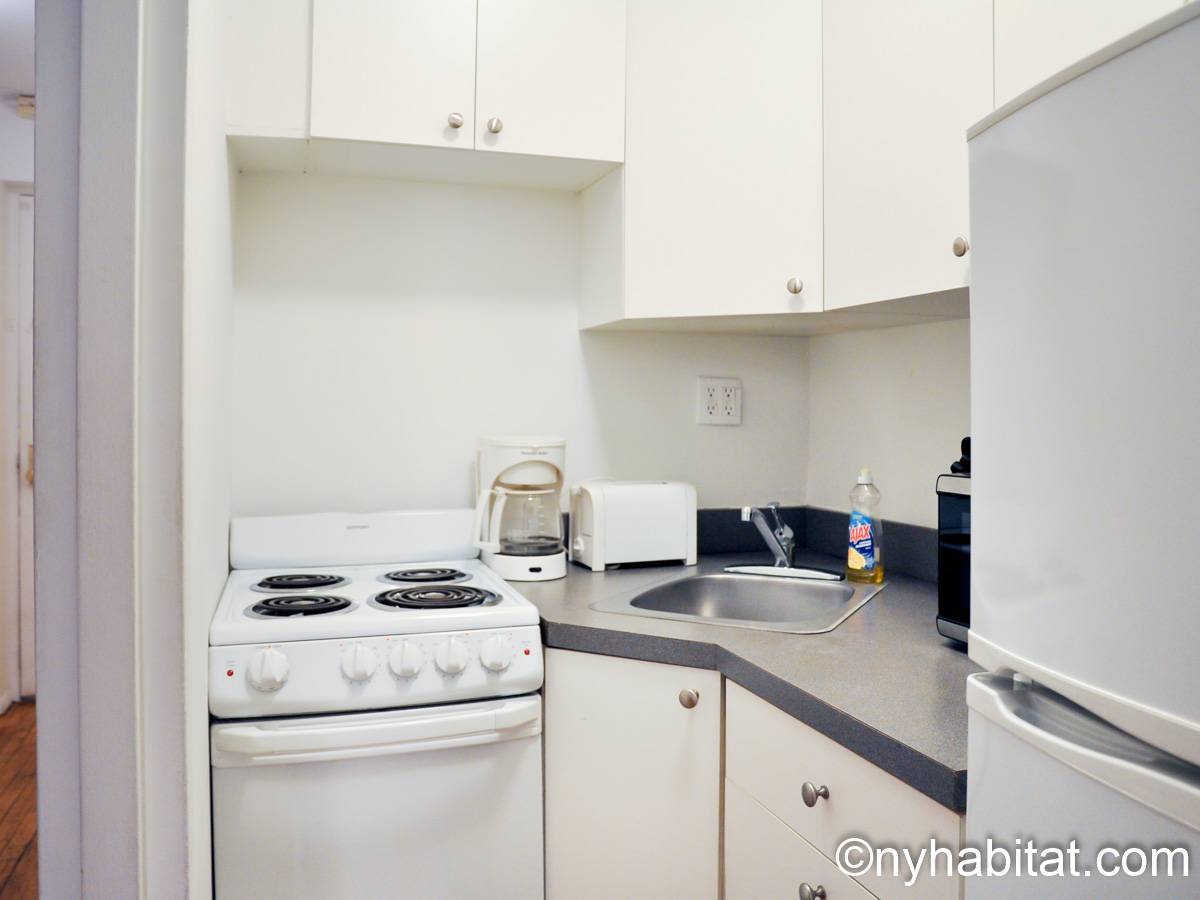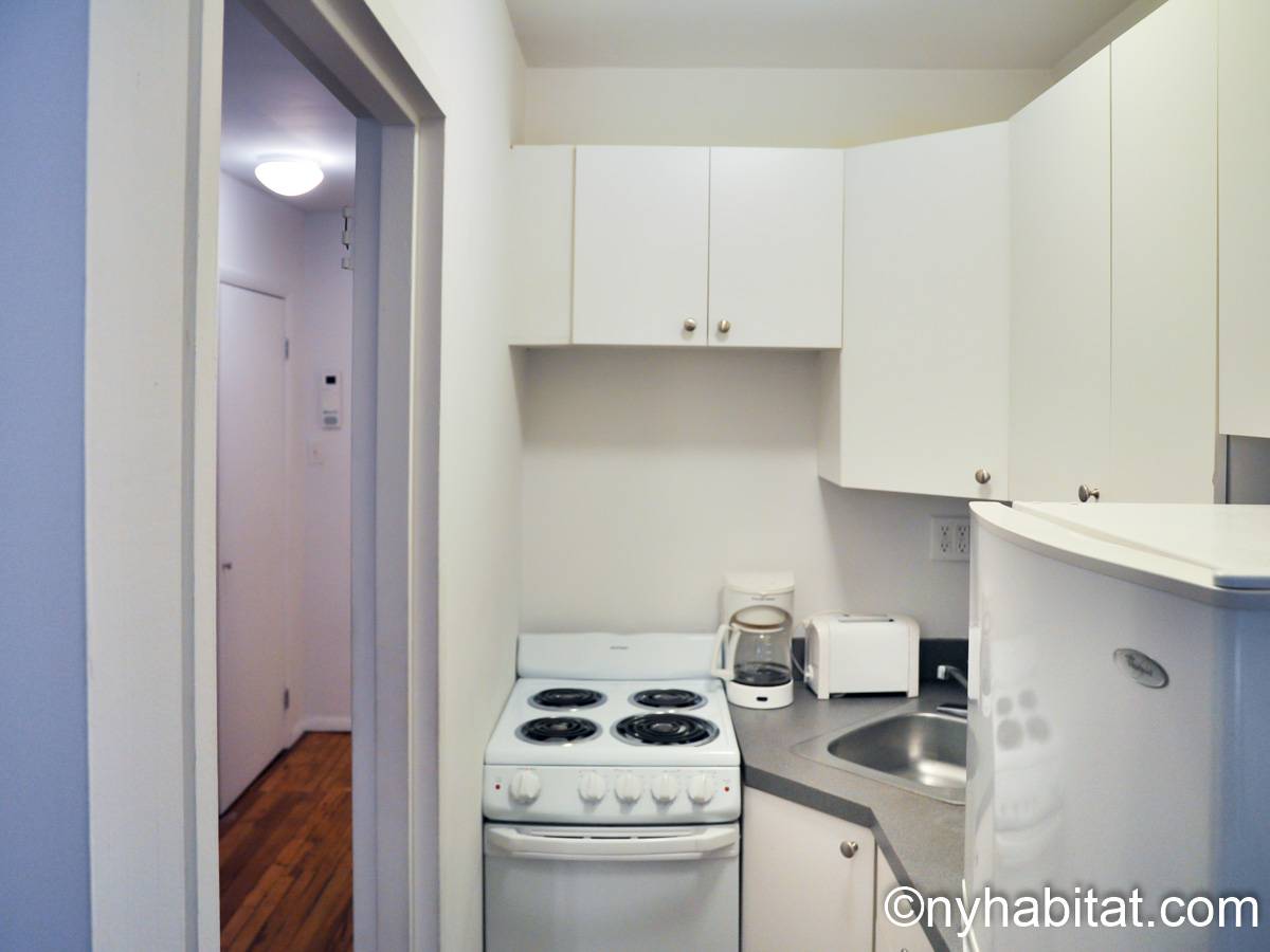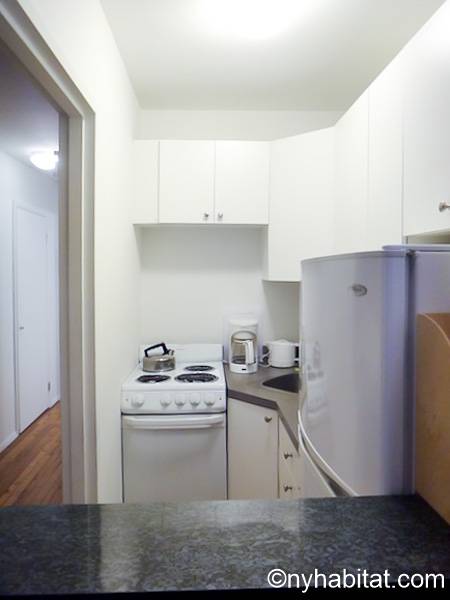 This Upper East Side furnished studio apartment is located in the Carnegie Hill neighborhood of New York City. Just off of East 89th Street and 3rd Avenue, this Manhattan apartment features on-site laundry facilities, an elevator, a rooftop deck, and is handicap accessible.