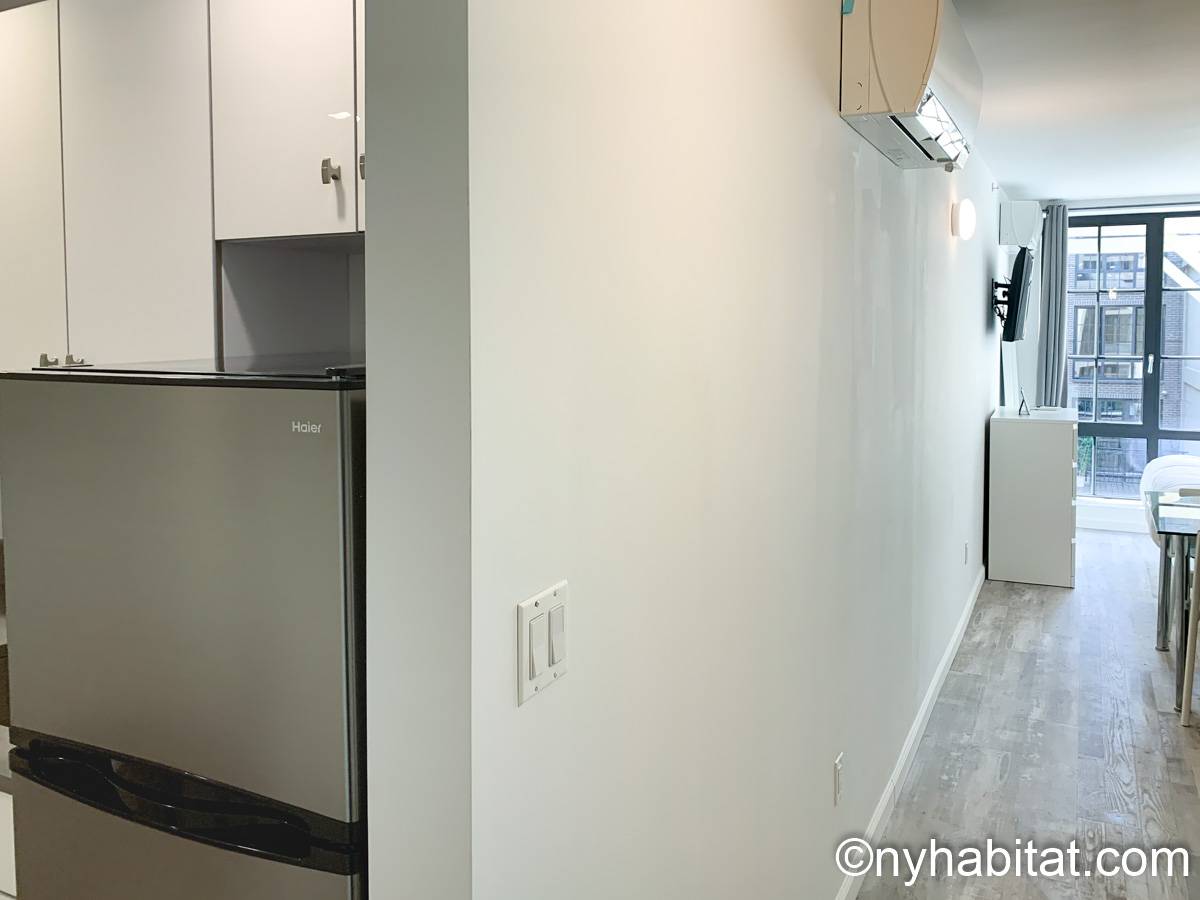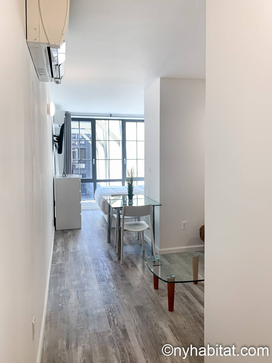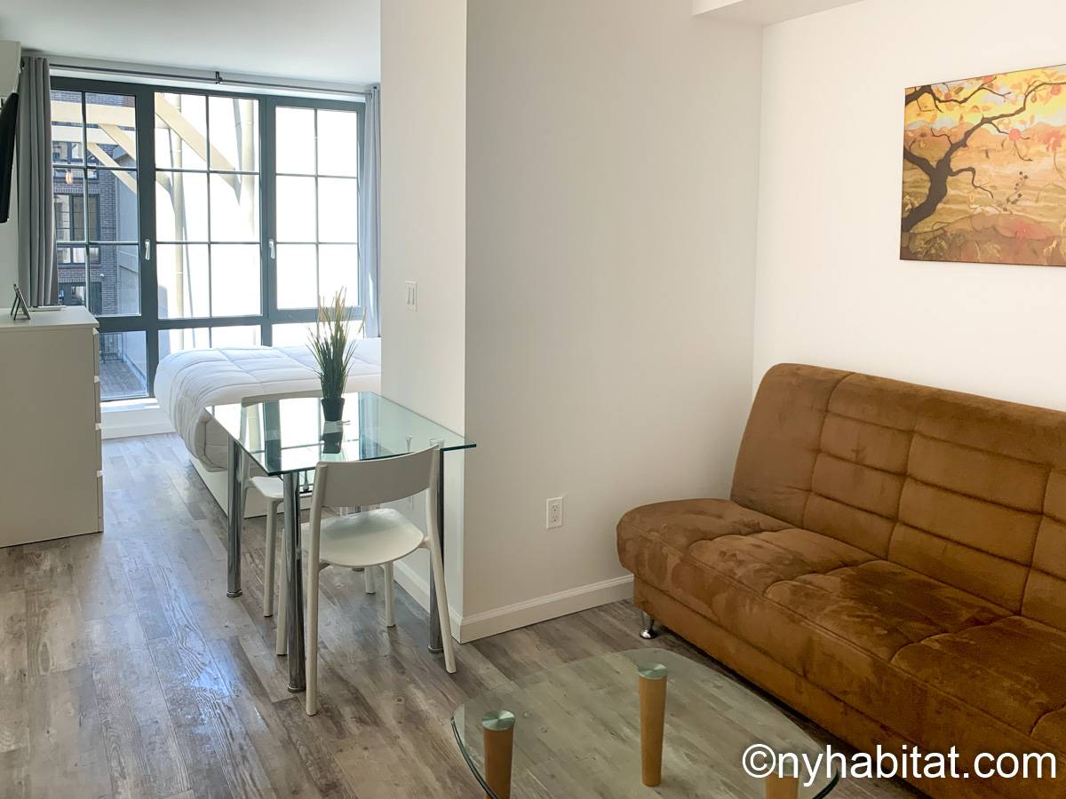 This fully furnished studio apartment is available for rent in Midtown West NYC! You’ll find this building conveniently located on West 53rd Street and 10th Avenue, where you’ll have access to an in-building laundry room and elevator.