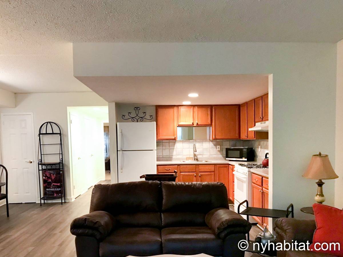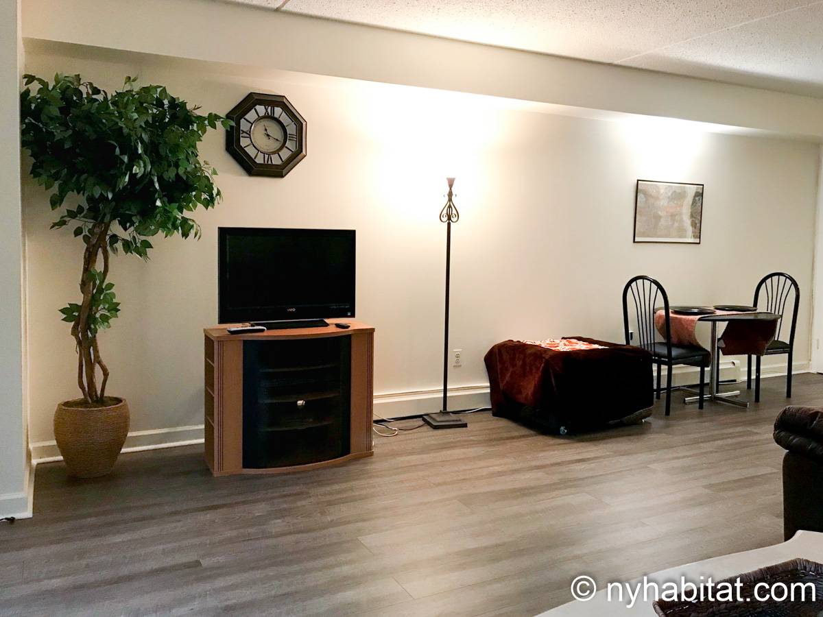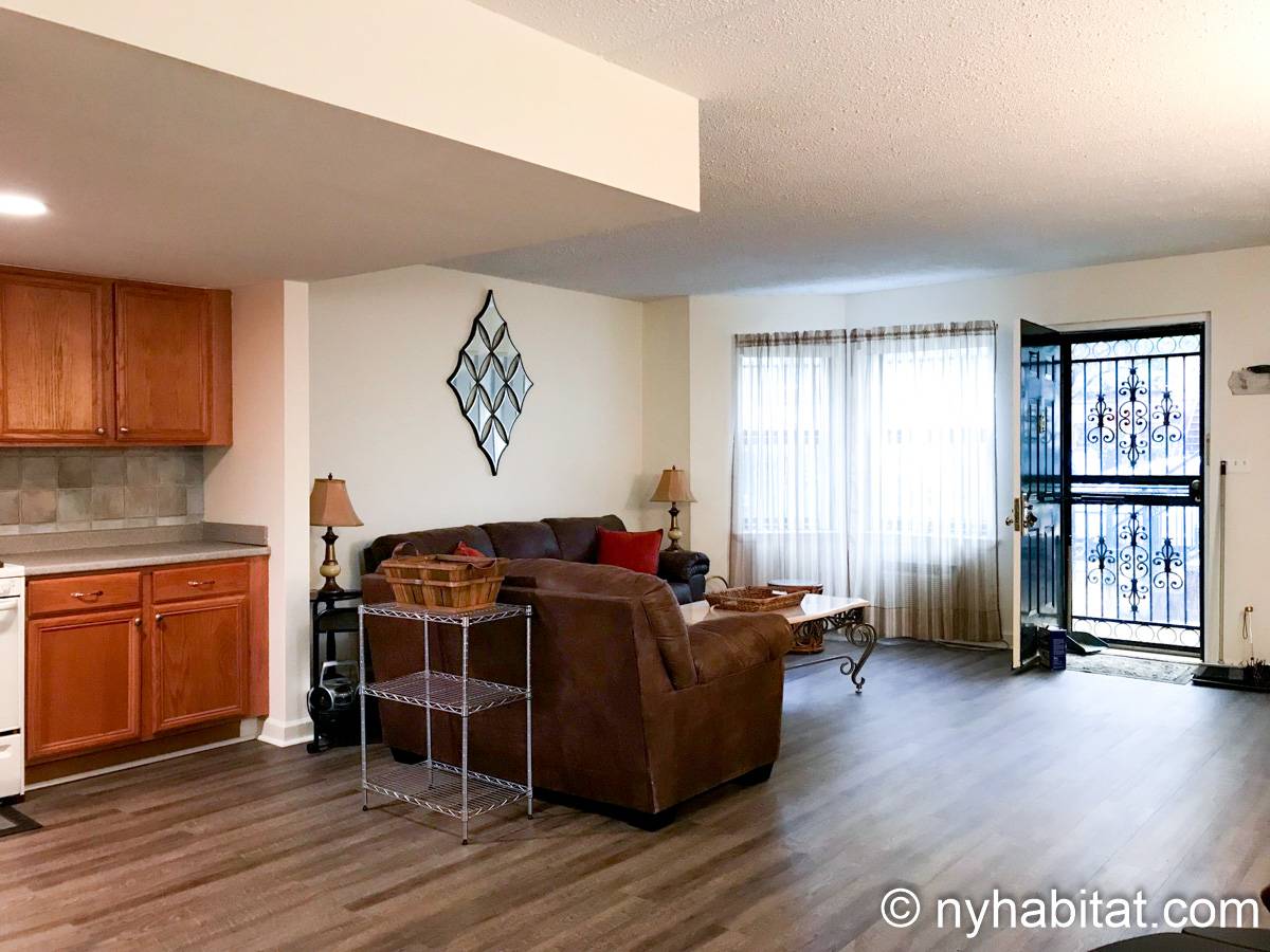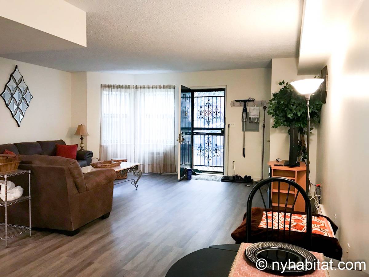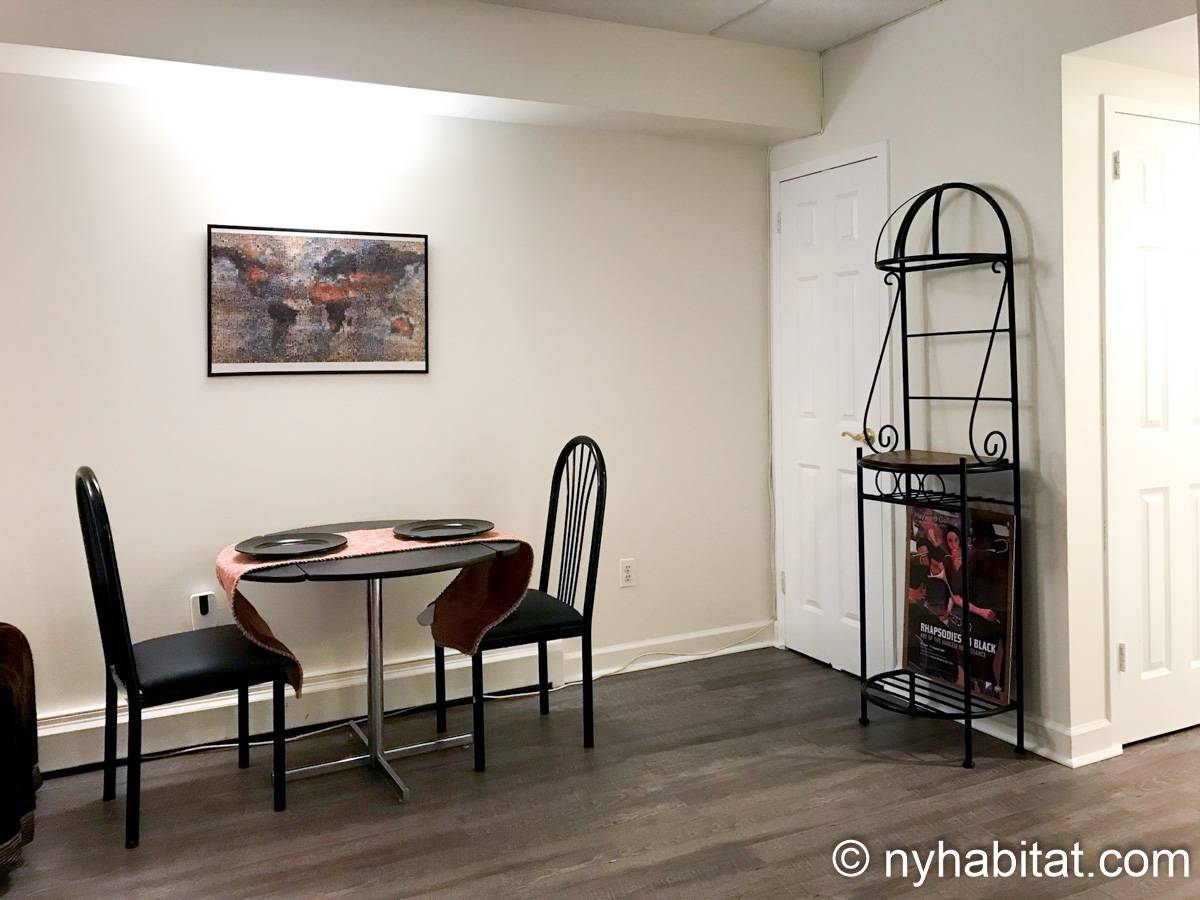 This furnished two-bedroom, one-bathroom apartment is located in the East Harlem neighborhood of New York City. On 119th Street and Madison Avenue, the apartment is on the 1st floor (same as the ground level in Europe) of an Upper Manhattan apartment building.