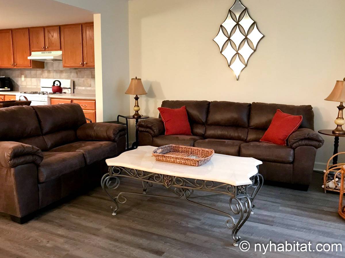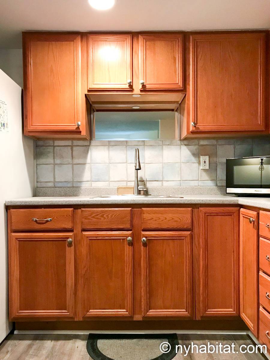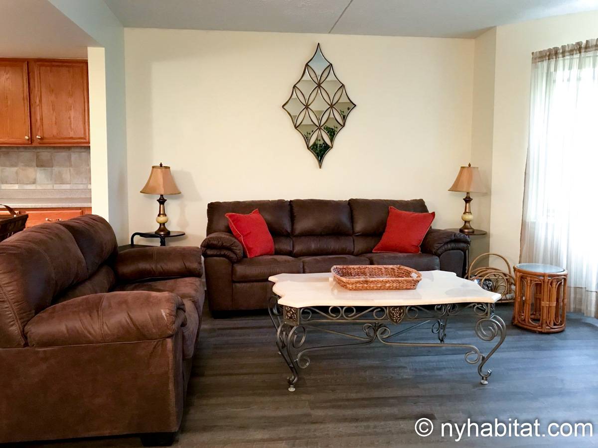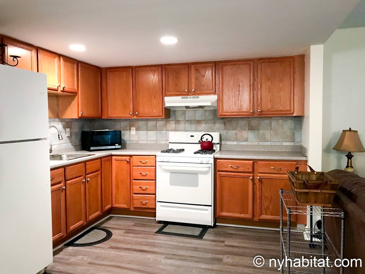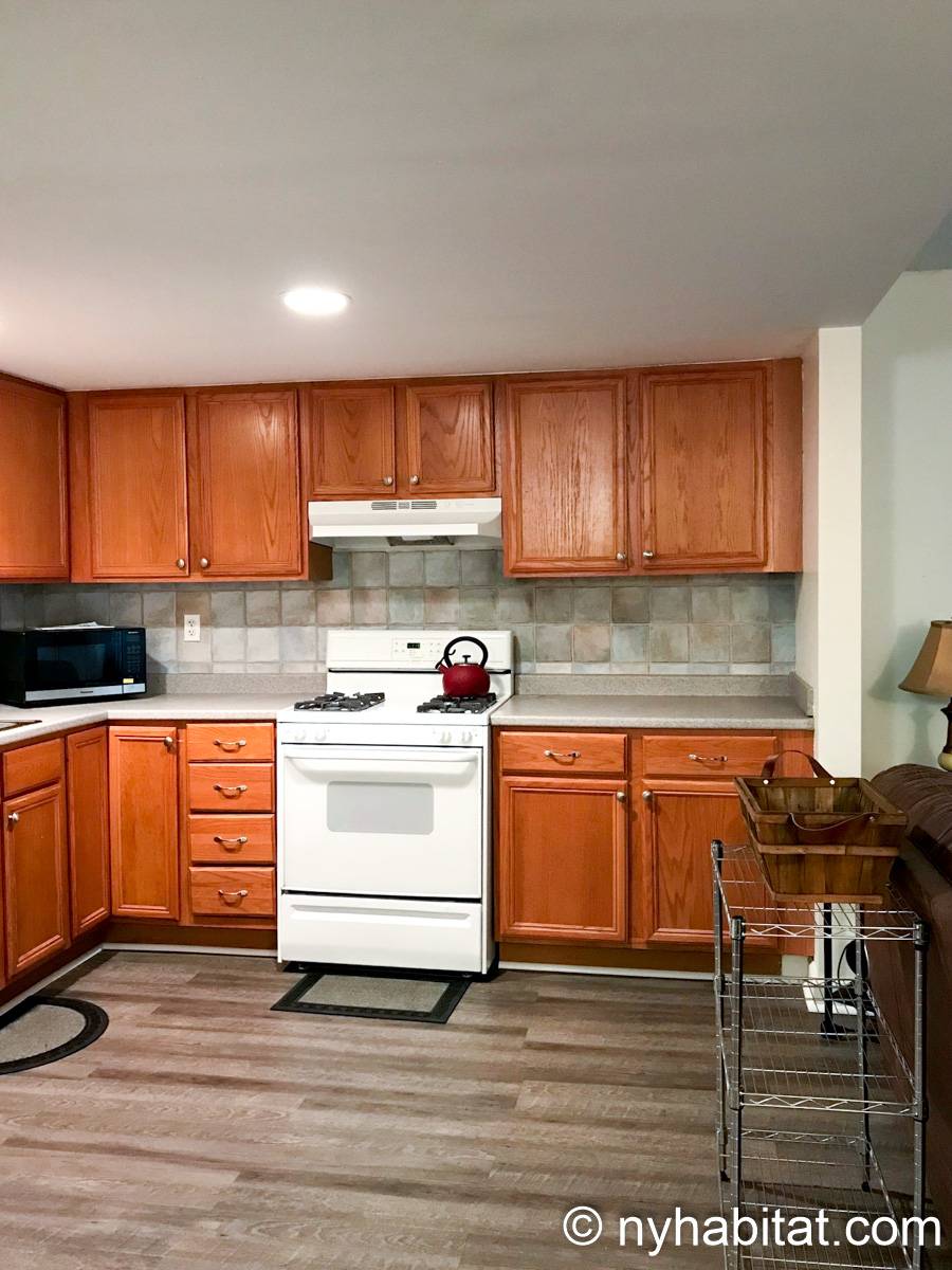 This furnished two-bedroom, one-bathroom apartment is located in the East Harlem neighborhood of New York City. On 119th Street and Madison Avenue, the apartment is on the 1st floor (same as the ground level in Europe) of an Upper Manhattan apartment building.