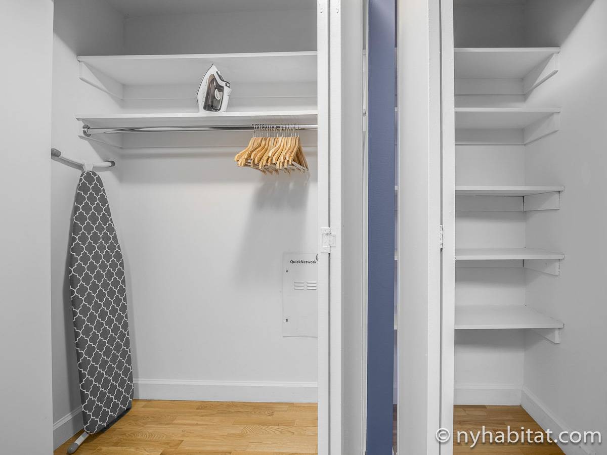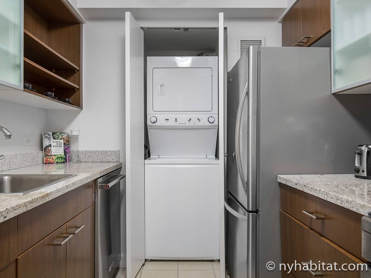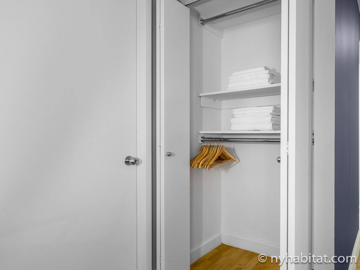 The furnished rental is on the 3rd floor (same as the 2nd floor in Europe) of a 14-story building with an elevator located between West 15th Street & 6th Avenue. The building features a gym and rooftop deck and also has a doorman.