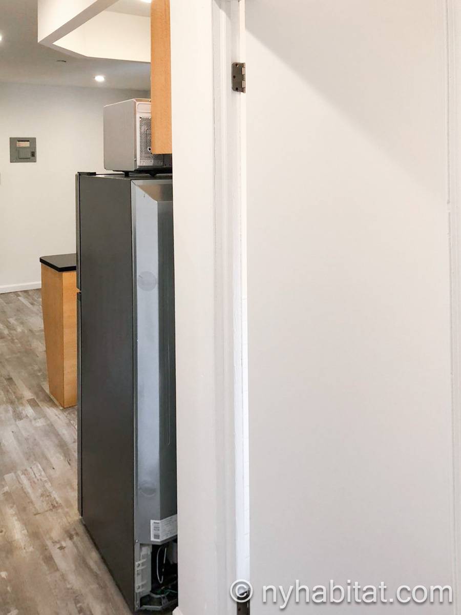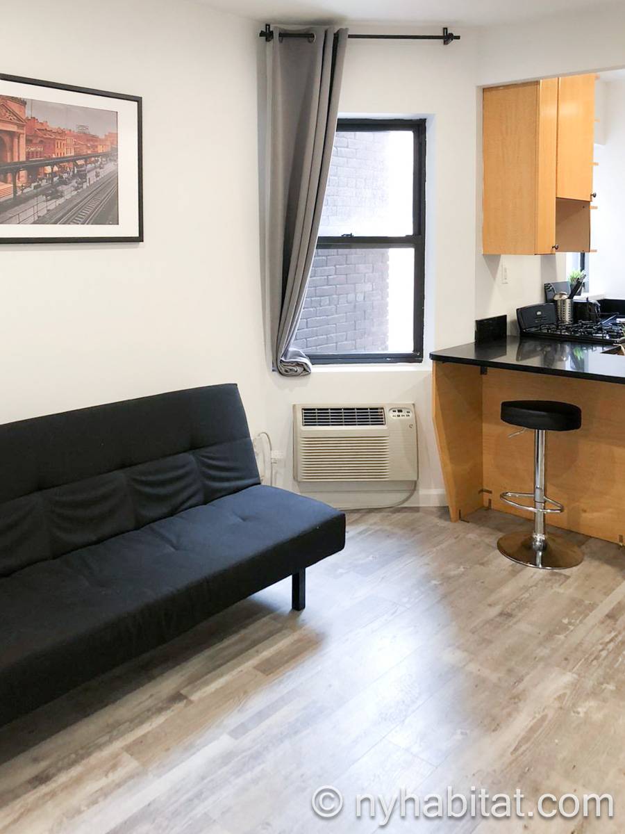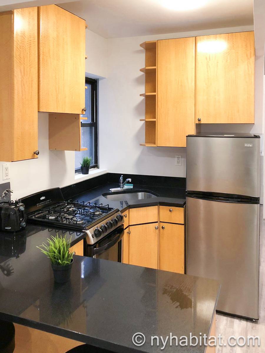 This two-bedroom, one bathroom furnished apartment is located in the neighborhood of Midtown West in Manhattan, New York City. Situated between West 51st Street and 9th Avenue, this apartment rental will bring you to the fourth floor (same as the third floor in Europe) of an elevator building. The building has laundry facilities.