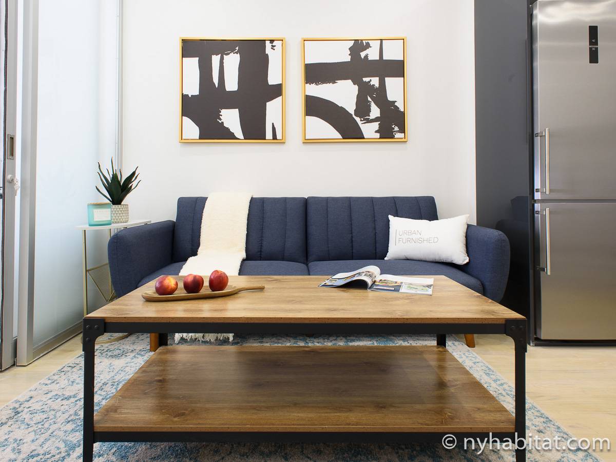 On the third floor (equivalent to the second floor in Europe) of a no-elevator building, there is a 470-square-foot (around 44 m2) furnished New York apartment. This one-bedroom rental is near 2nd Avenue and 78th Street, in the Upper East Side of Manhattan.