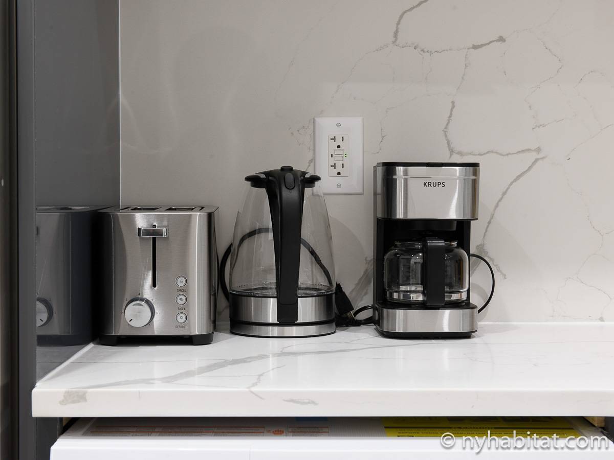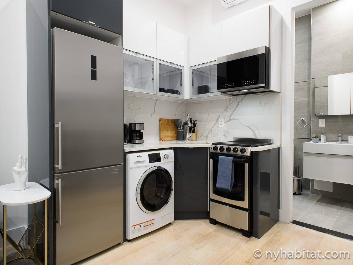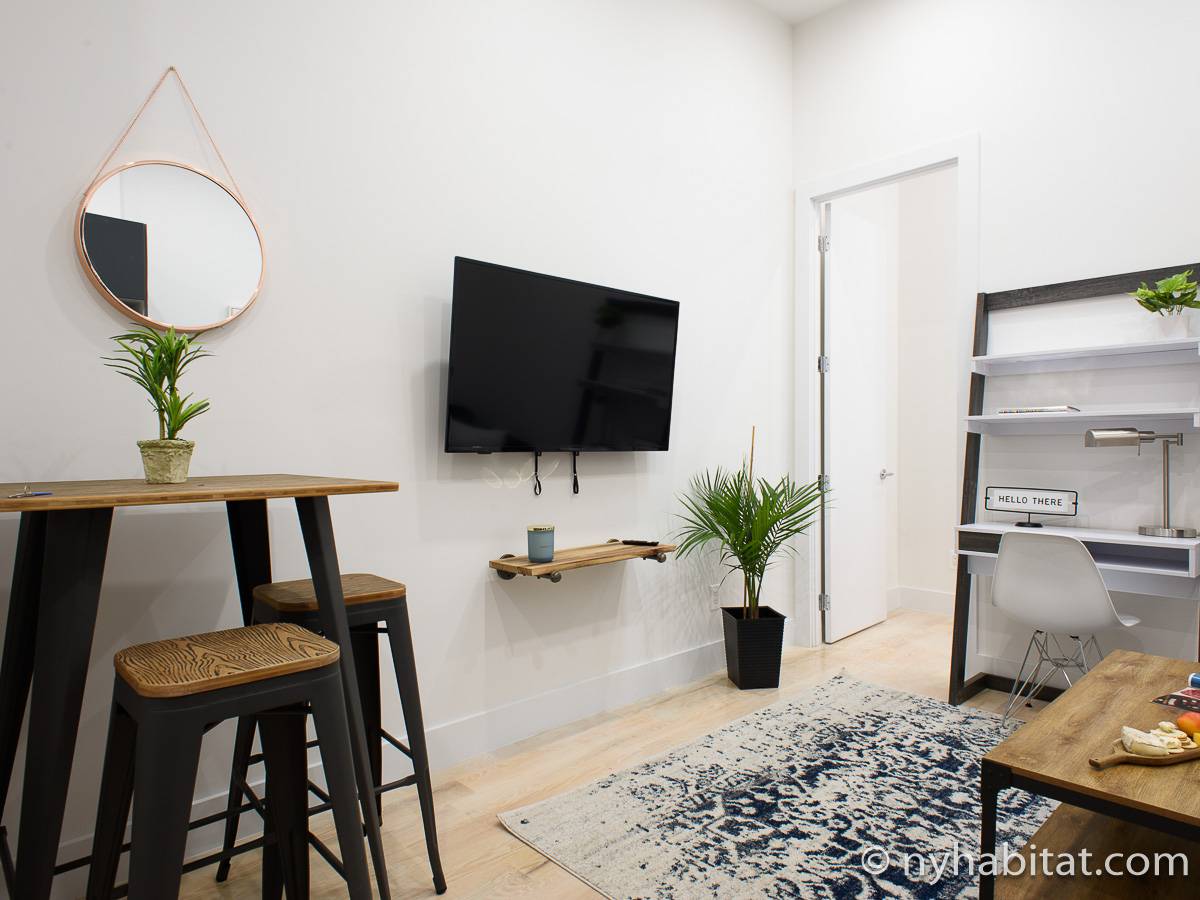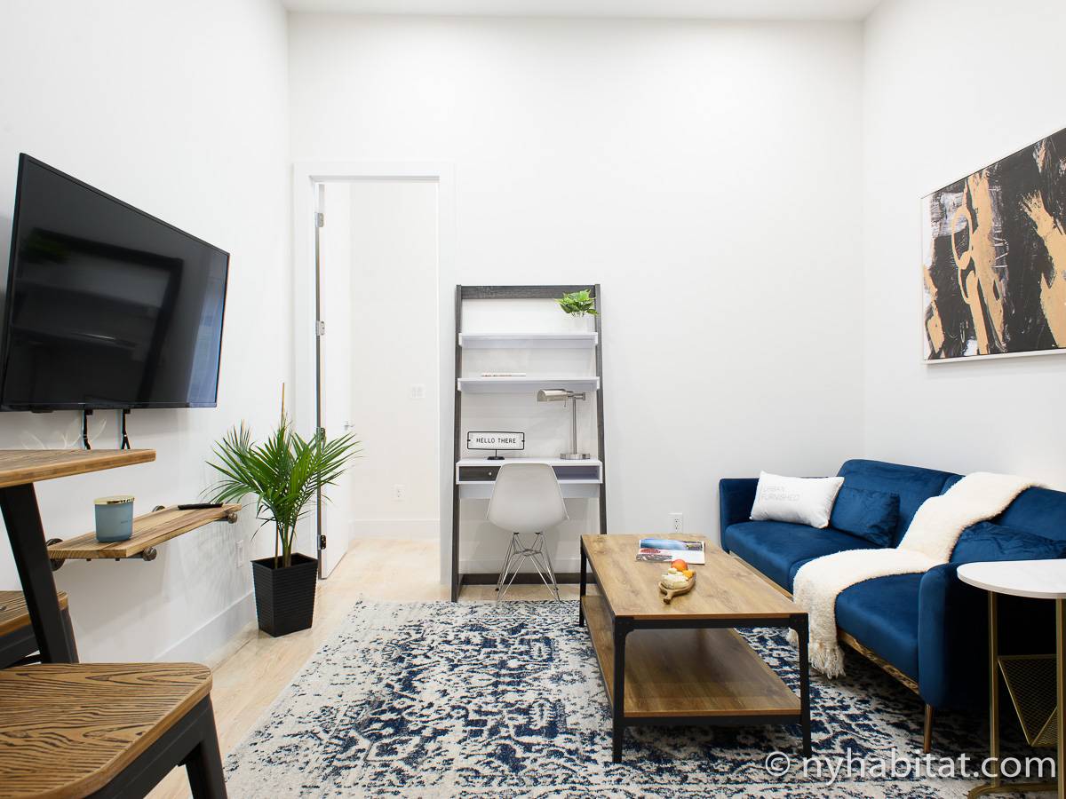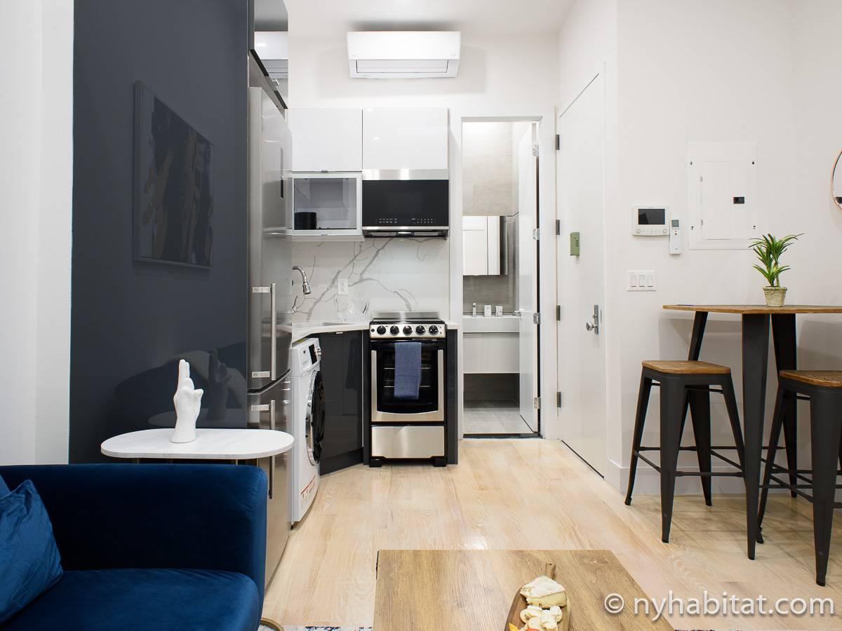 Between 2nd Avenue and 78th Street is this 1-bedroom, 1-bathroom furnished apartment. Located on the Upper East Side of Manhattan, this apartment offers 470-square-feet (around 44 m2) of New York space. The apartment–there is no elevator in the building–rests on the 4th floor (equivalent to the 3rd floor in Europe).