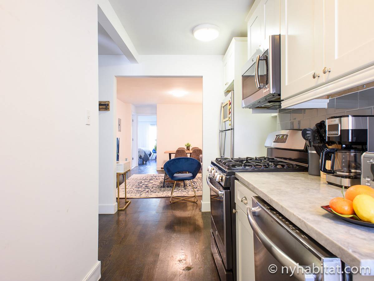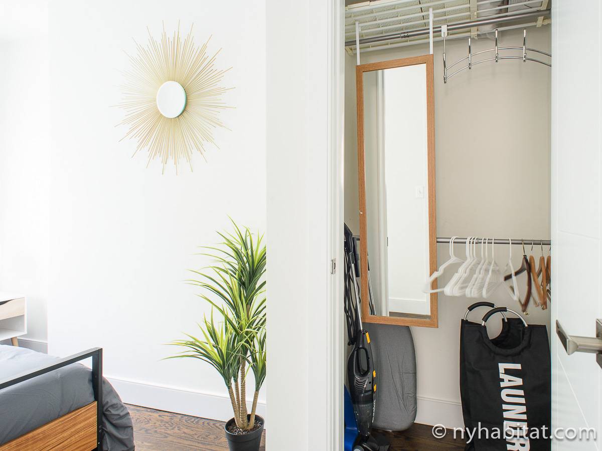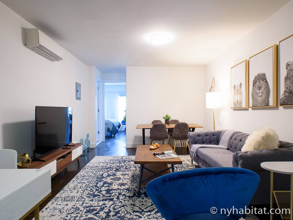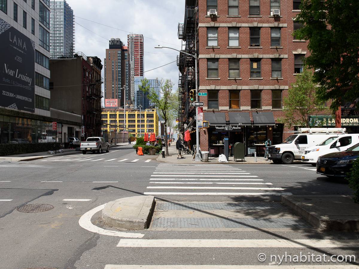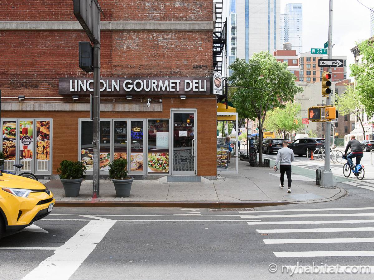 In the neighborhood of Midtown West, also known as Hell’s Kitchen or Clinton, is a 3-bedroom 1-bathroom furnished apartment for rent. This Manhattan apartment is located near the corner of 9th Avenue and West 39th Street. At 1,100 square feet (around 102 m2), this apartment is in a no-elevator New York building.