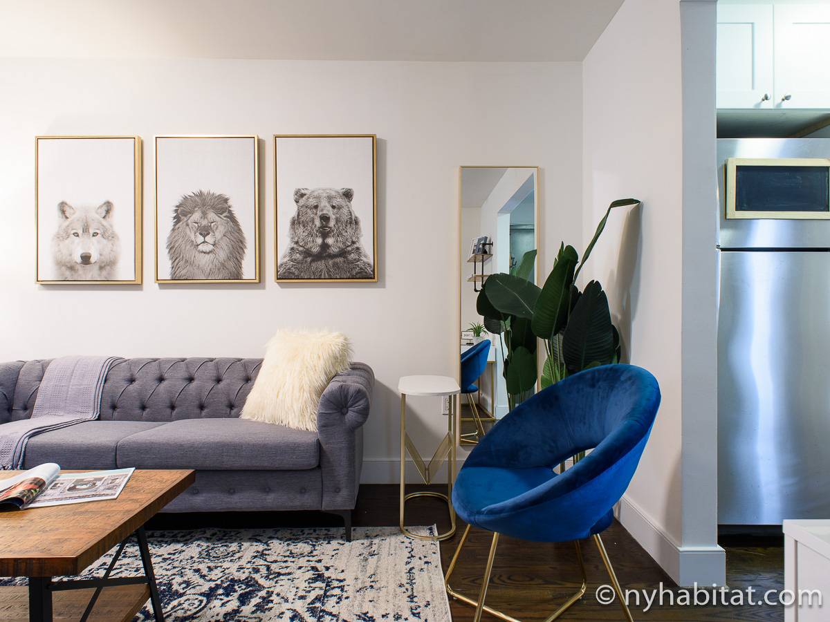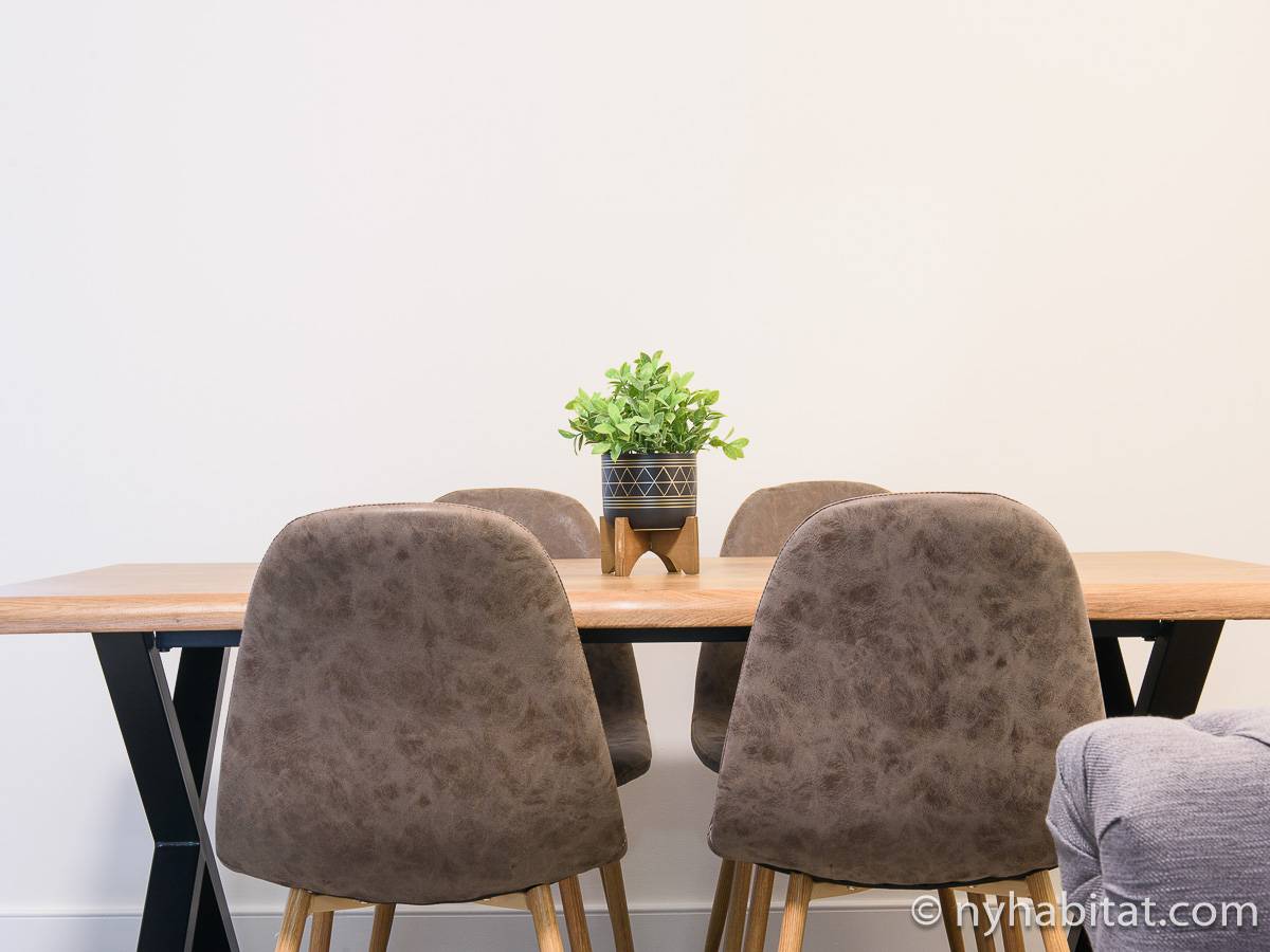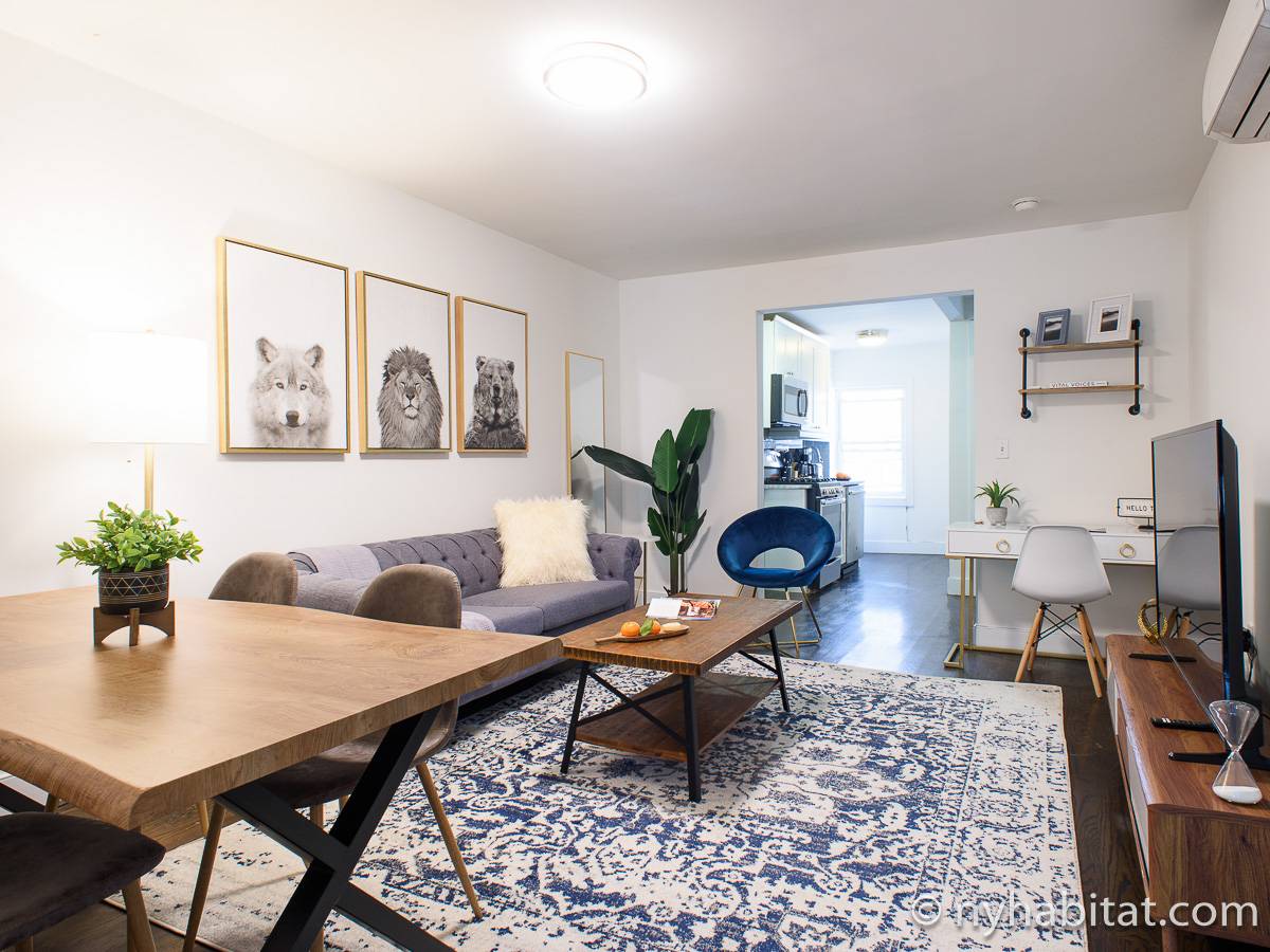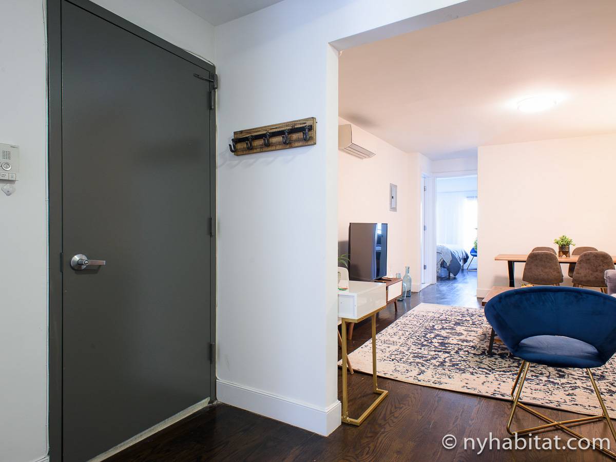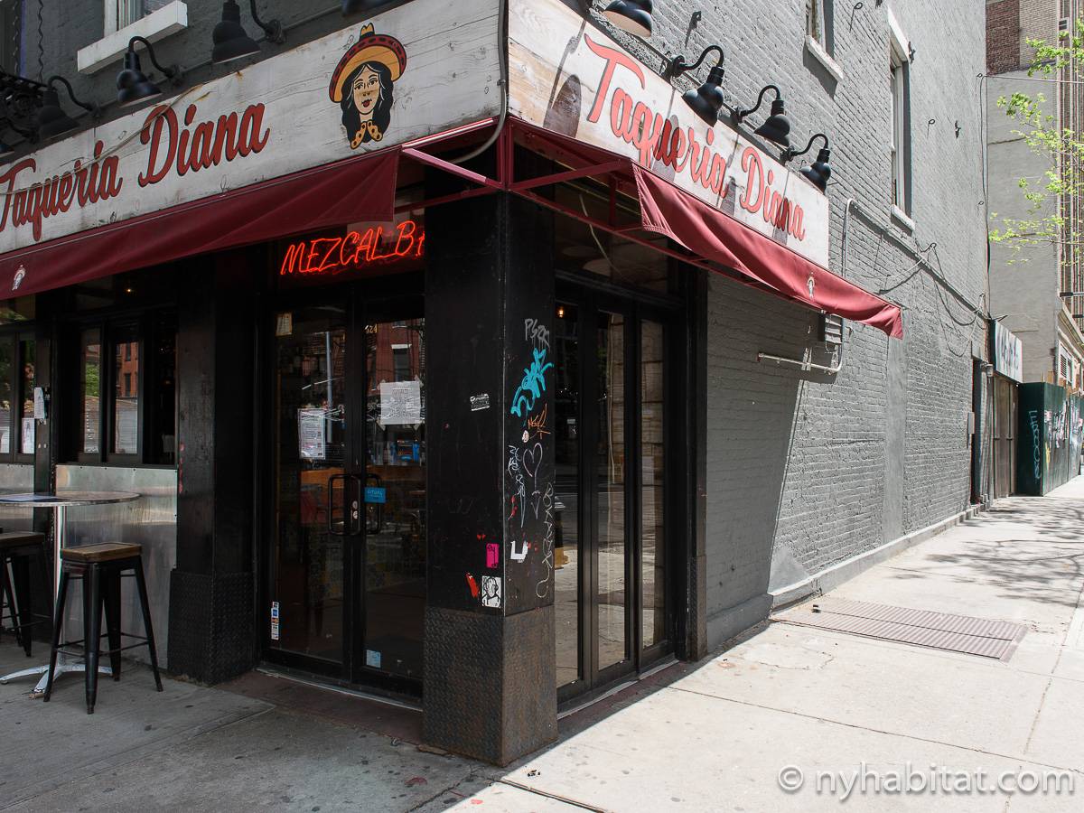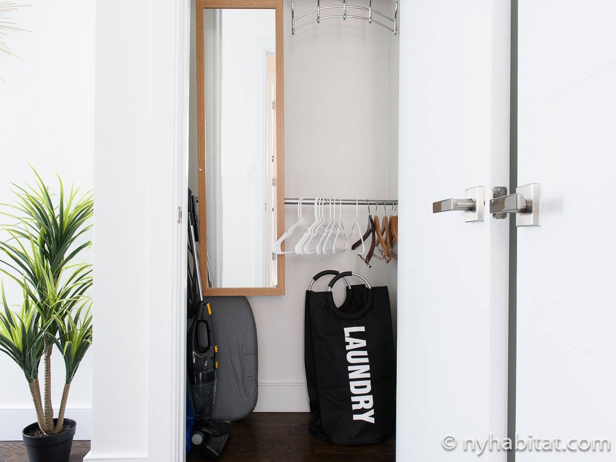 In the neighborhood of Midtown West, also known as Hell’s Kitchen or Clinton, is a 3-bedroom 1-bathroom furnished apartment for rent. This Manhattan apartment is located near the corner of 9th Avenue and West 39th Street. At 1,100 square feet (around 102 m2), this apartment is in a no-elevator New York building.