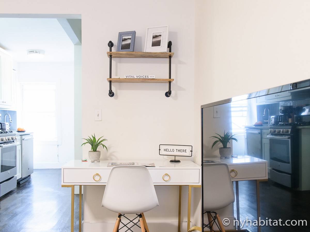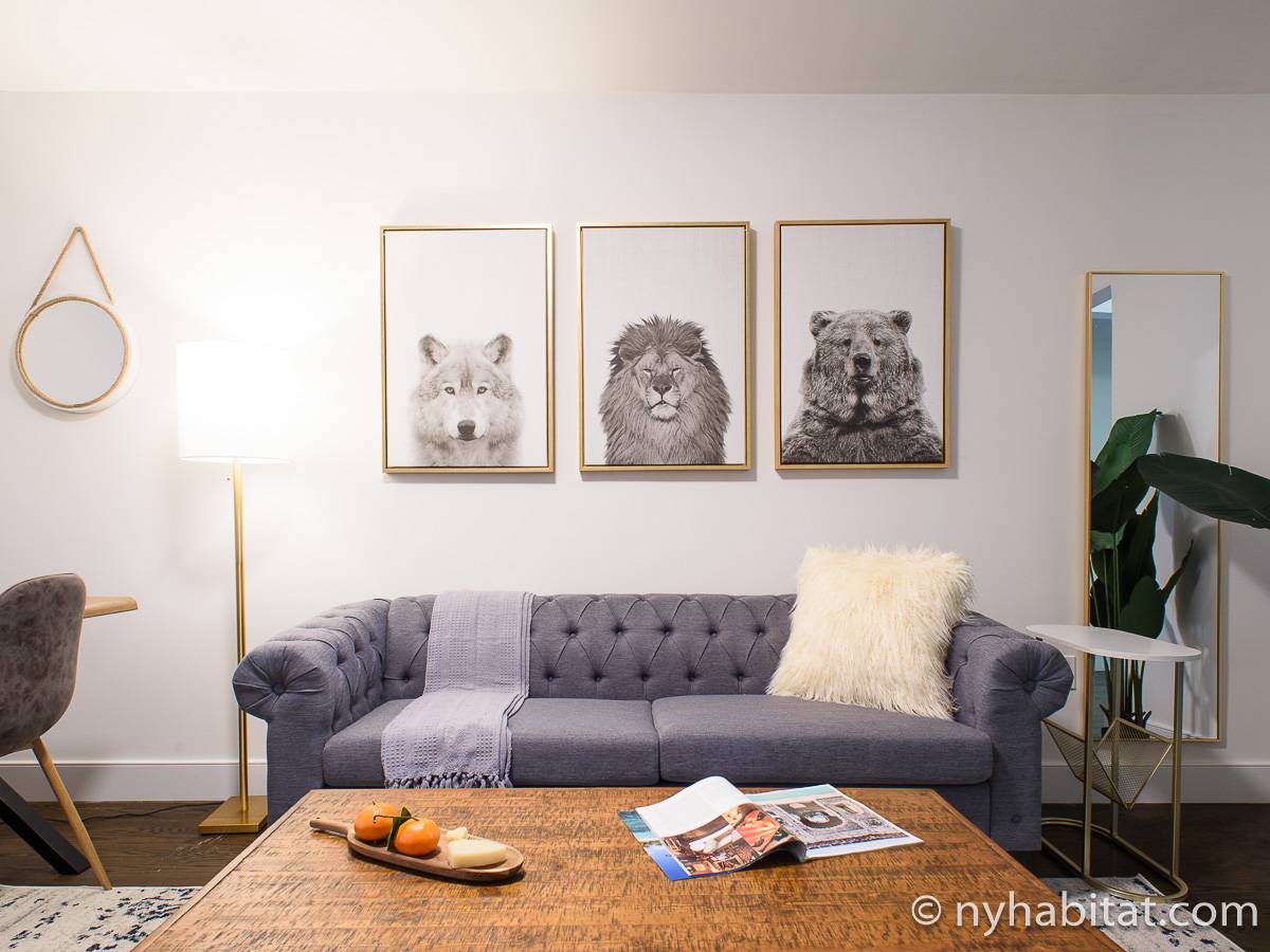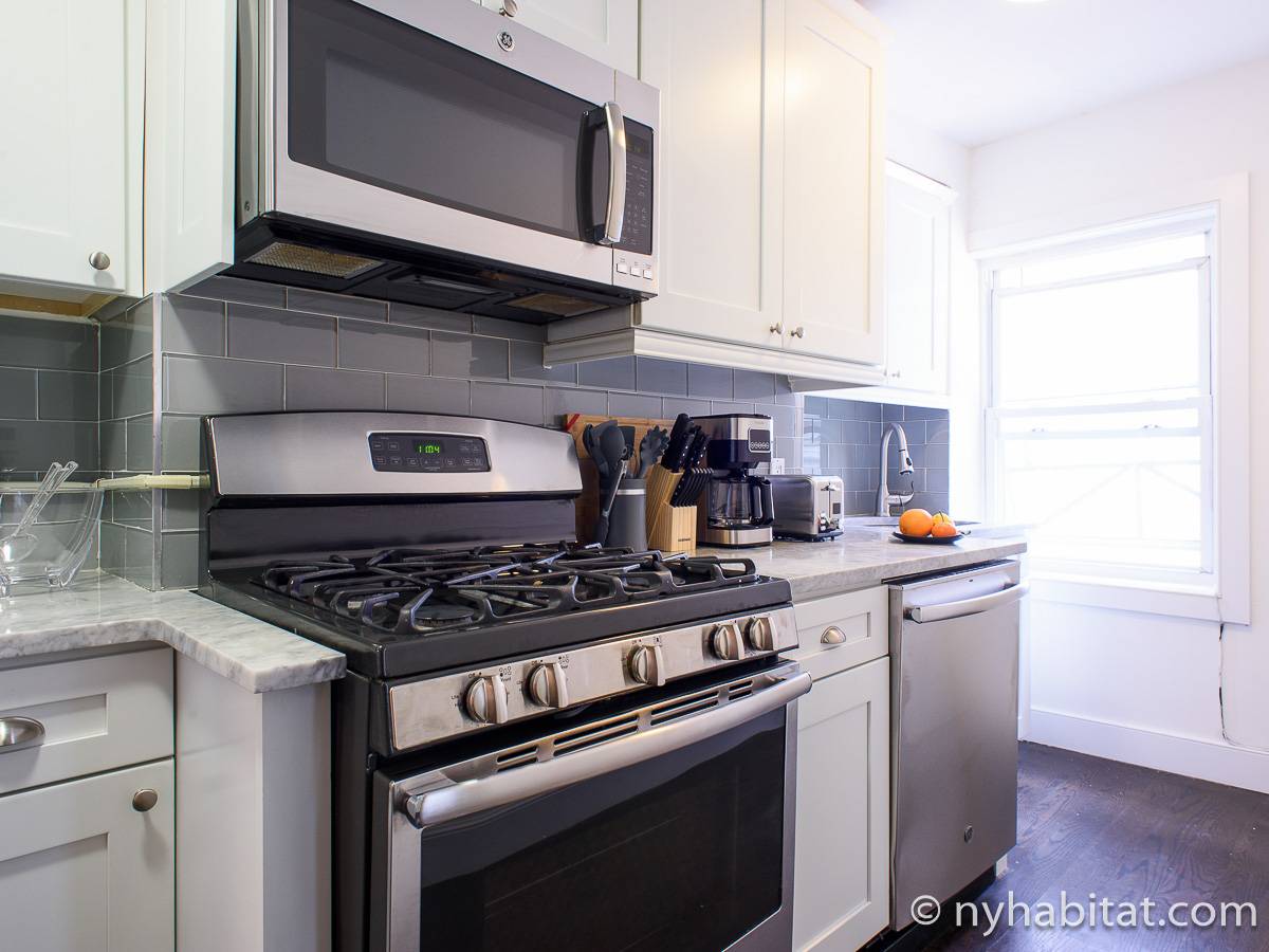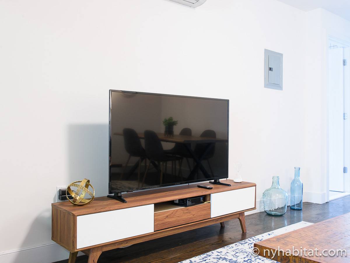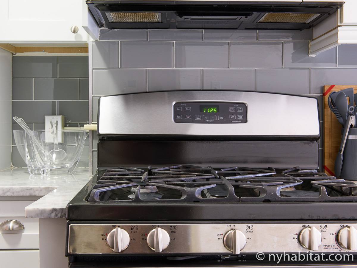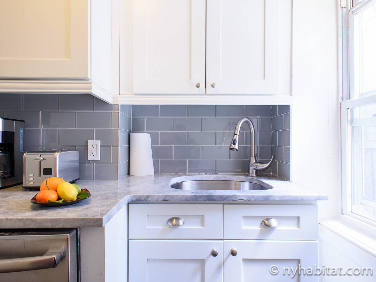 In the neighborhood of Midtown West, also known as Hell’s Kitchen or Clinton, is a 3-bedroom 1-bathroom furnished apartment for rent. This Manhattan apartment is located near the corner of 9th Avenue and West 39th Street. At 1,100 square feet (around 102 m2), this apartment is in a no-elevator New York building.
