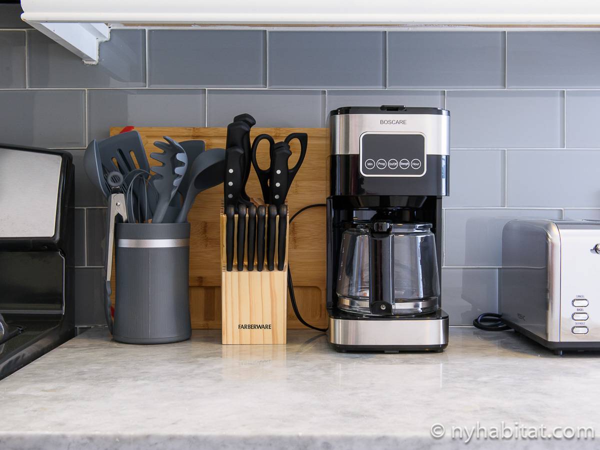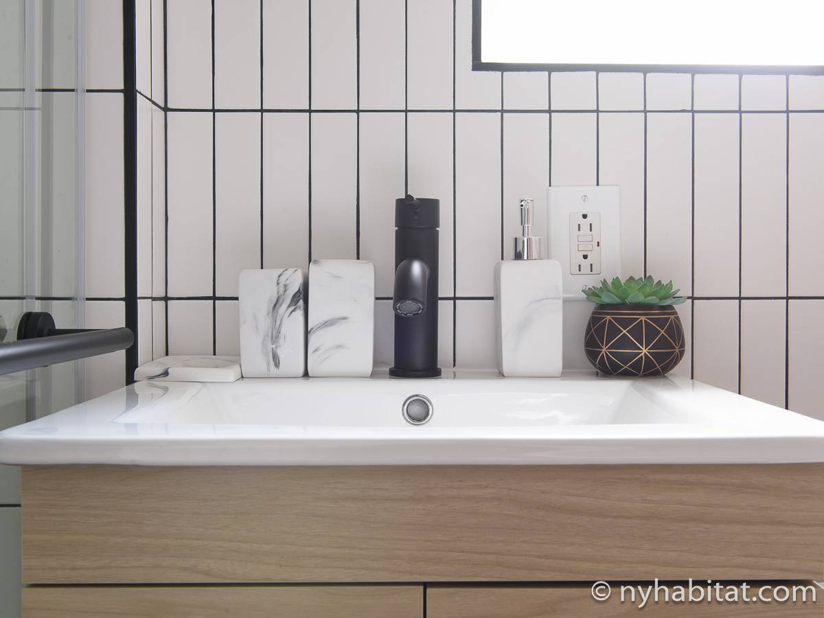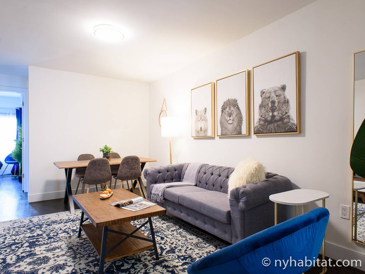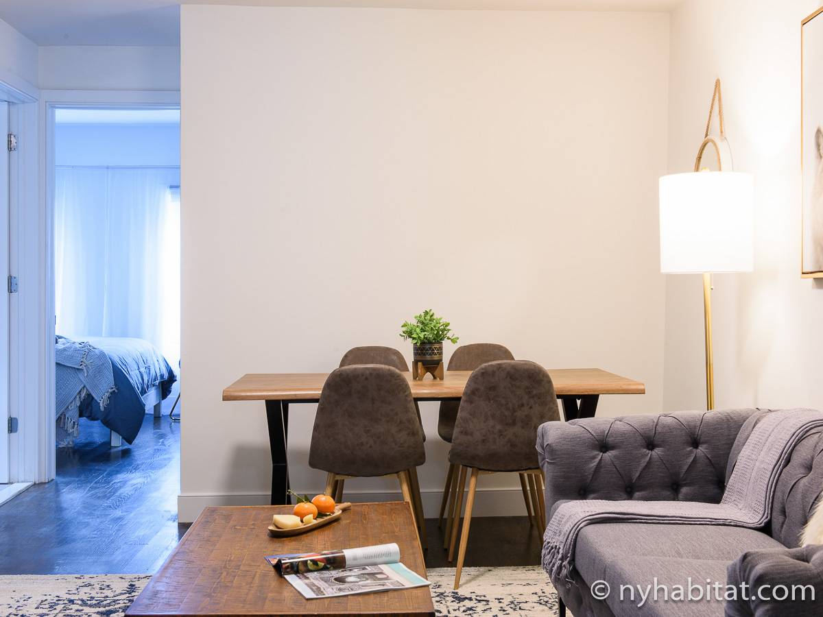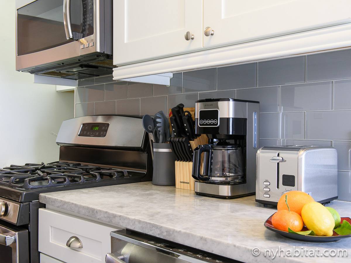 In the neighborhood of Midtown West, also known as Hell’s Kitchen or Clinton, is a 3-bedroom 1-bathroom furnished apartment for rent. This Manhattan apartment is located near the corner of 9th Avenue and West 39th Street. At 1,100 square feet (around 102 m2), this apartment is in a no-elevator New York building.
