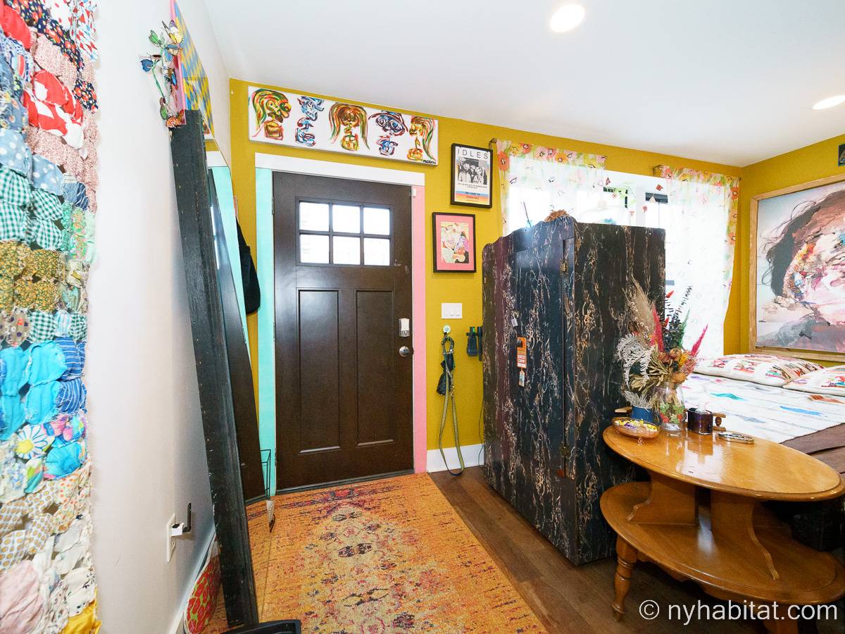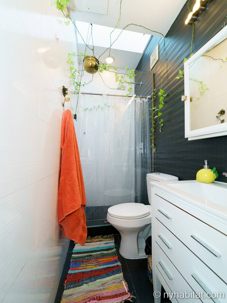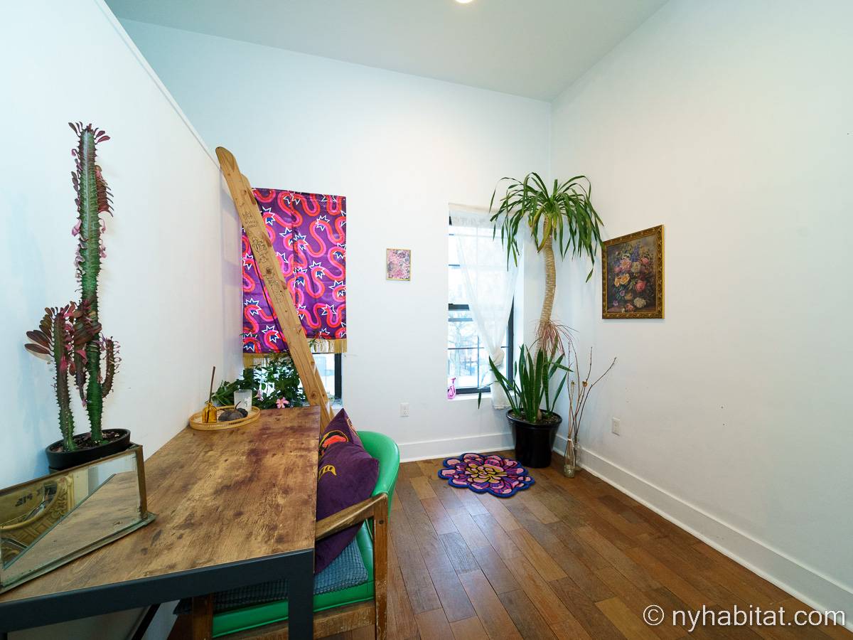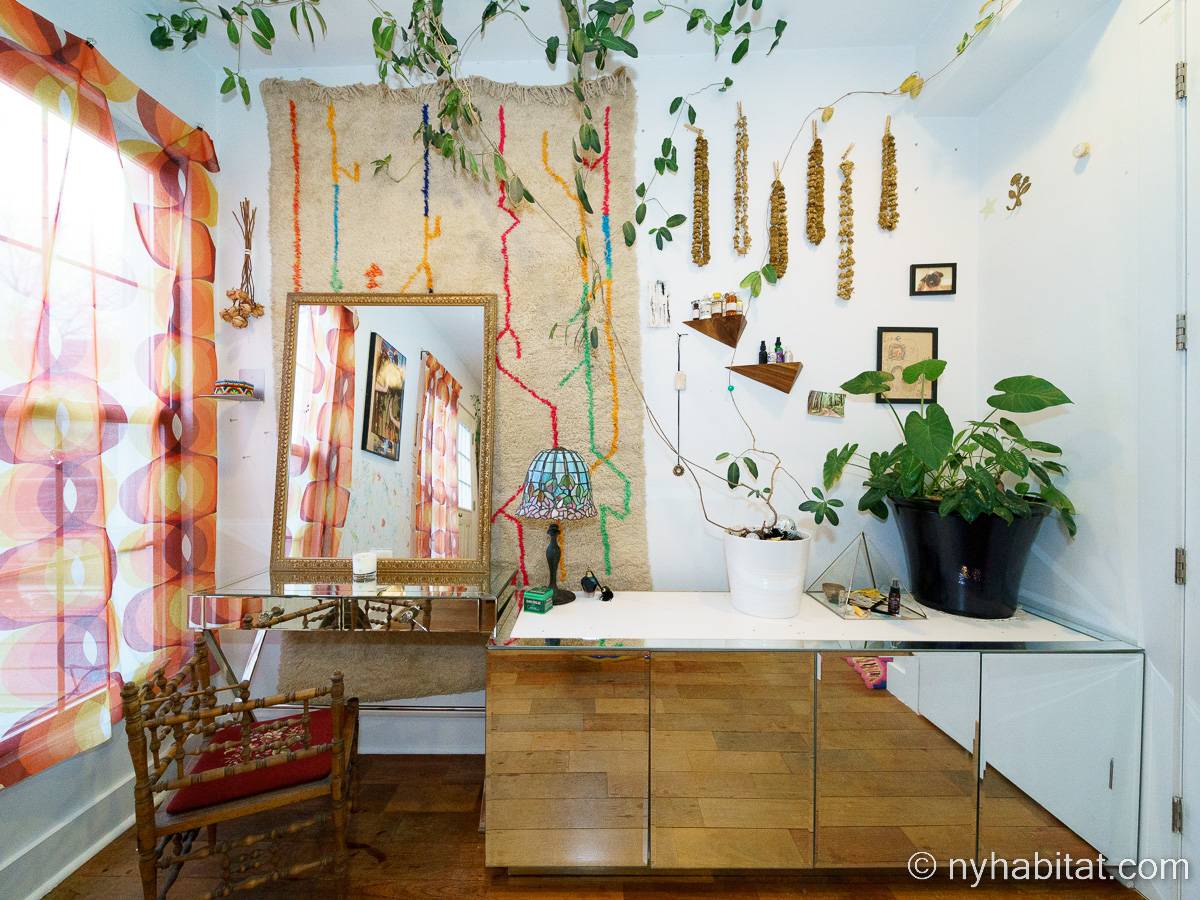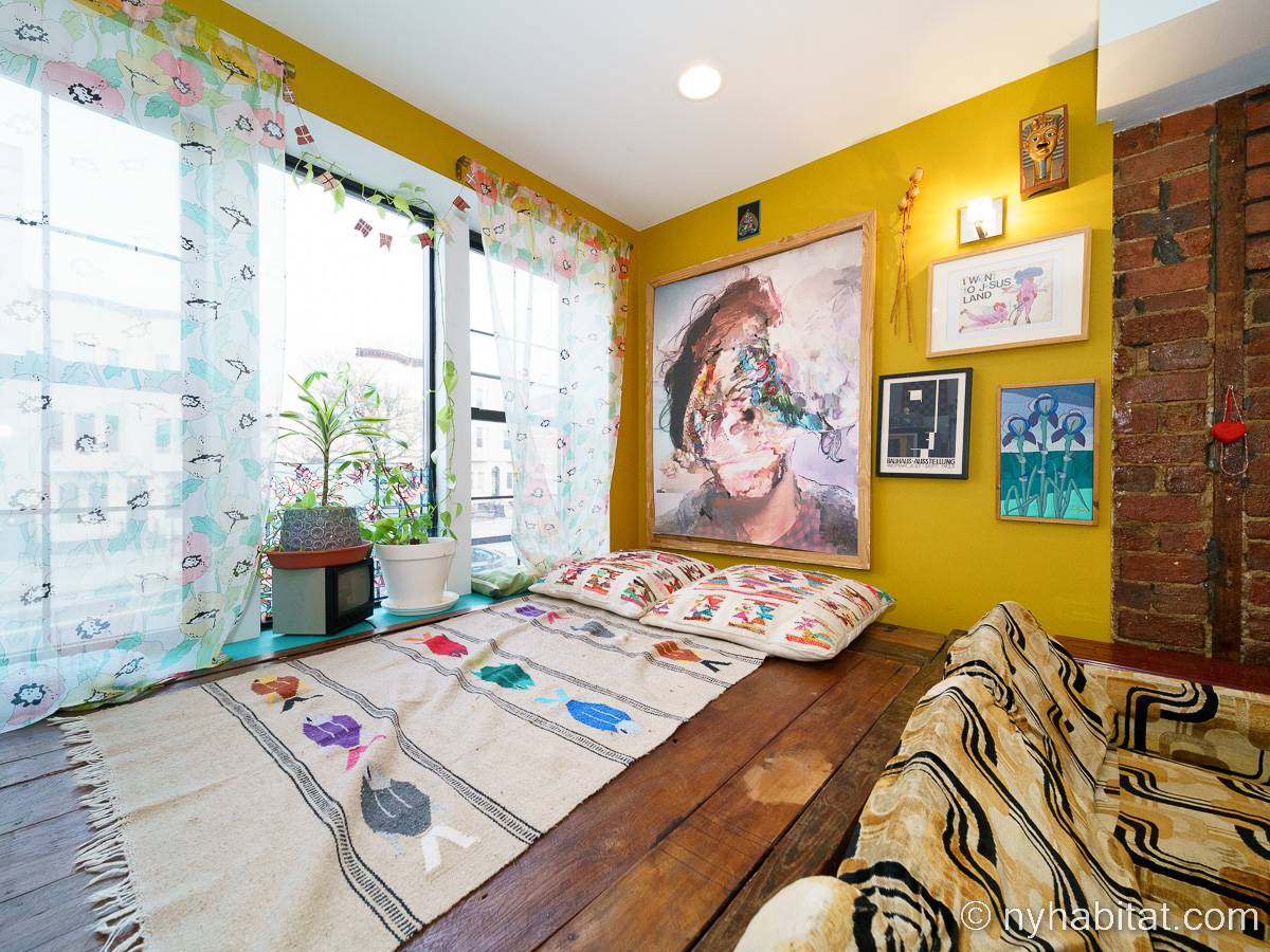 This rental is a furnished duplex apartment near Bushwick Avenue and Chauncey Street in Brooklyn, New York. It has two bedrooms, two bathrooms and an additional separate toilet. It is on the second and third floor (equivalent to the first and second floor in Europe) of a three-floor townhouse in Ocean Hill Brownsville.