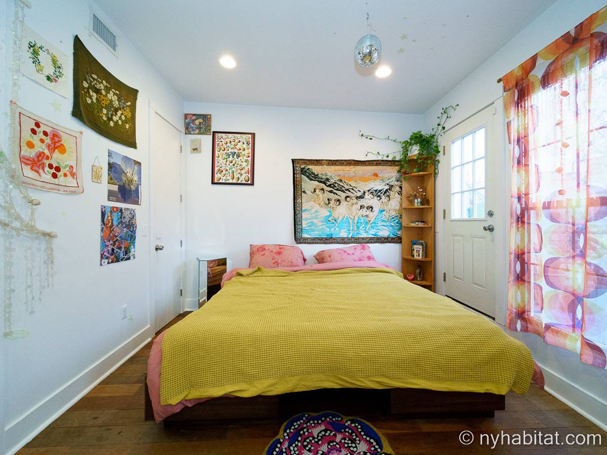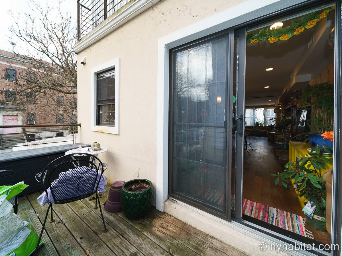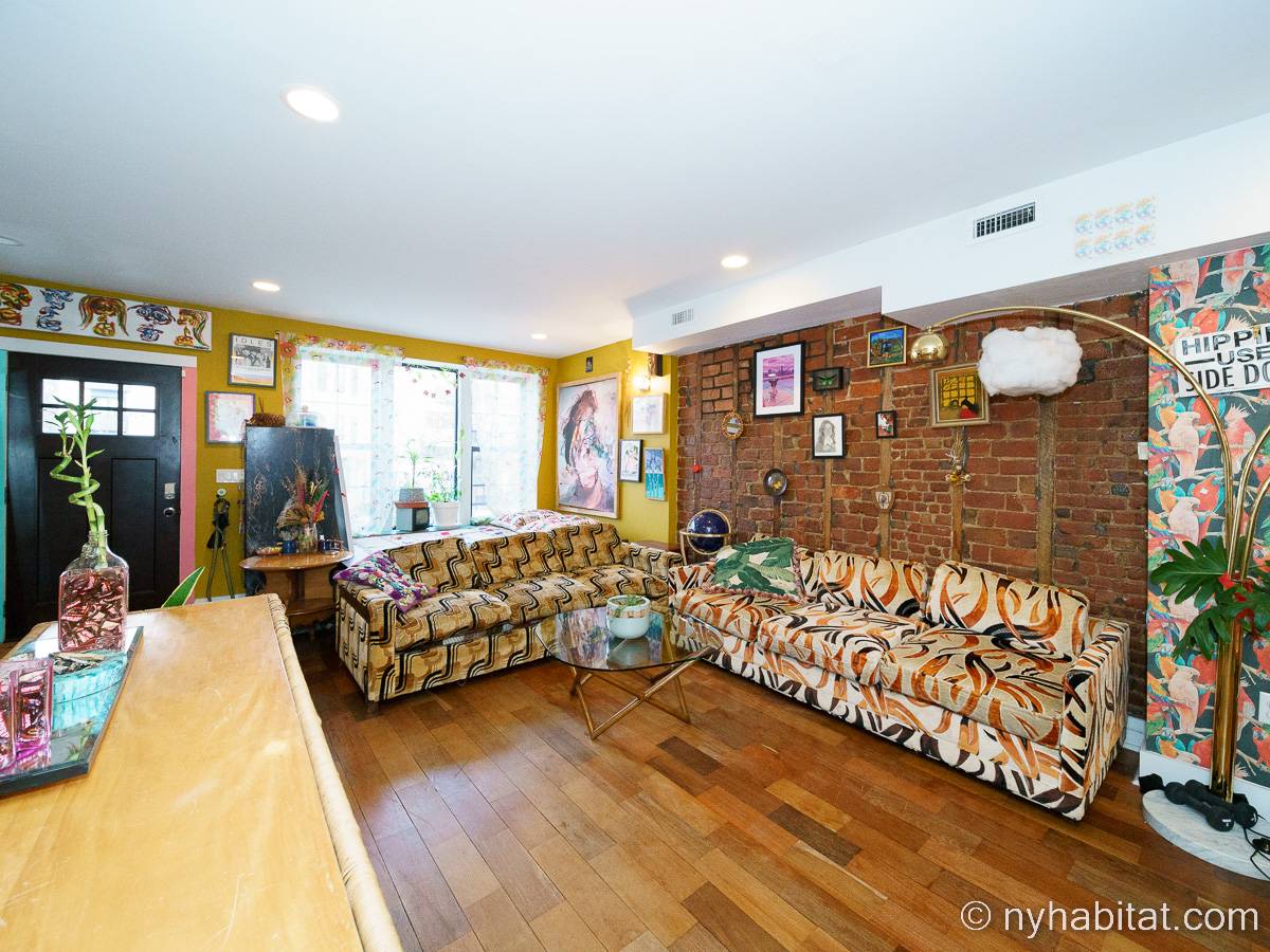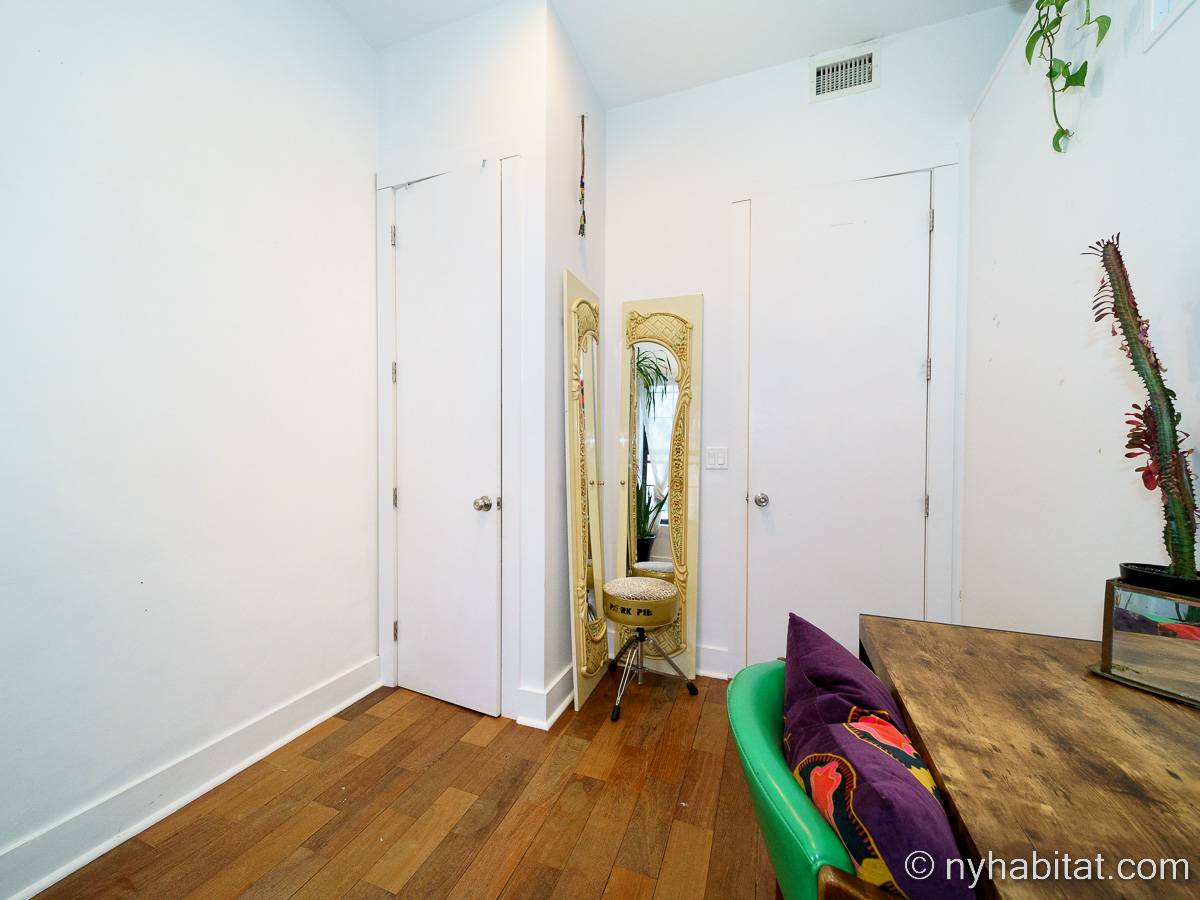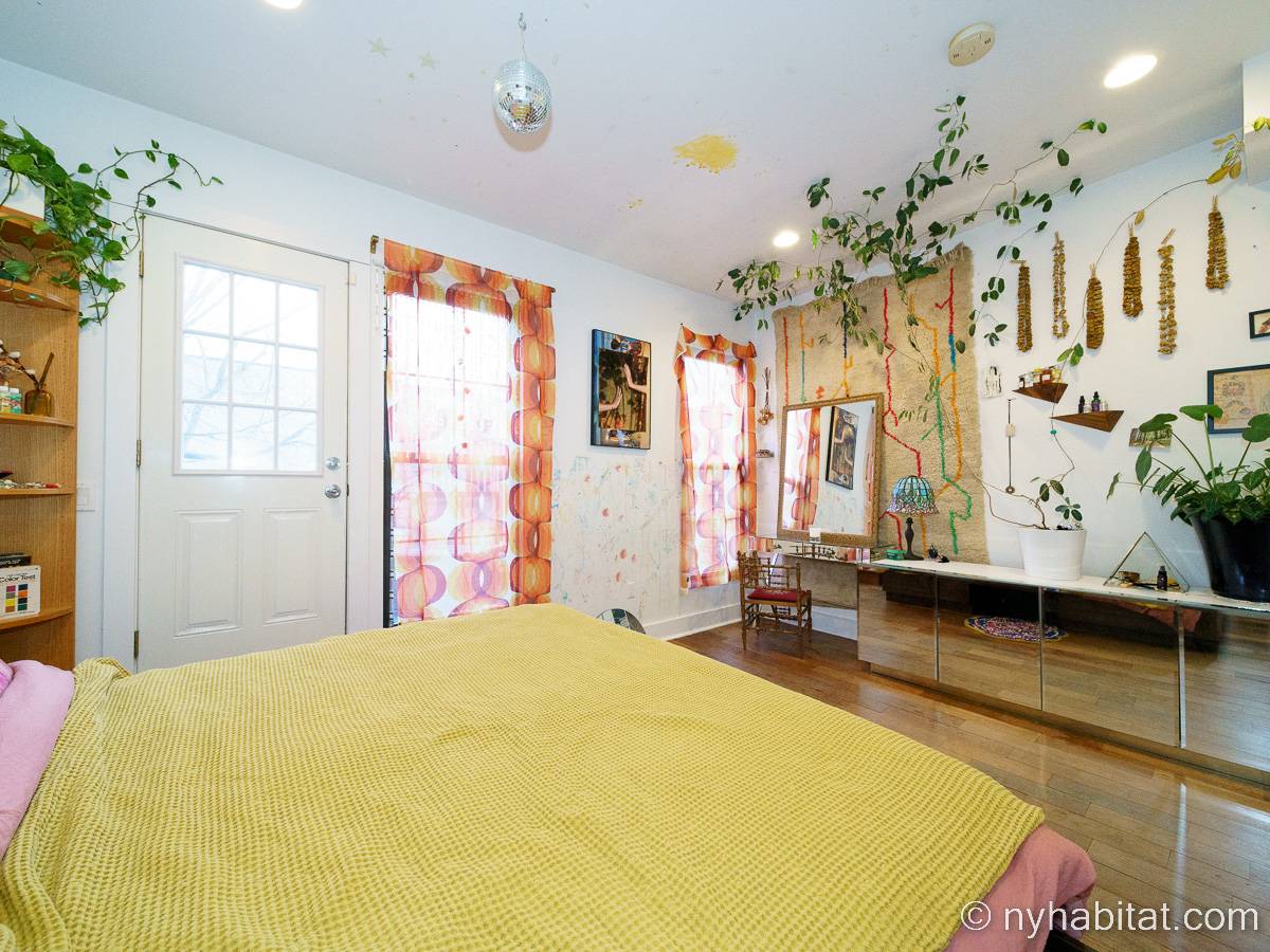 This rental is a furnished duplex apartment near Bushwick Avenue and Chauncey Street in Brooklyn, New York. It has two bedrooms, two bathrooms and an additional separate toilet. It is on the second and third floor (equivalent to the first and second floor in Europe) of a three-floor townhouse in Ocean Hill Brownsville.