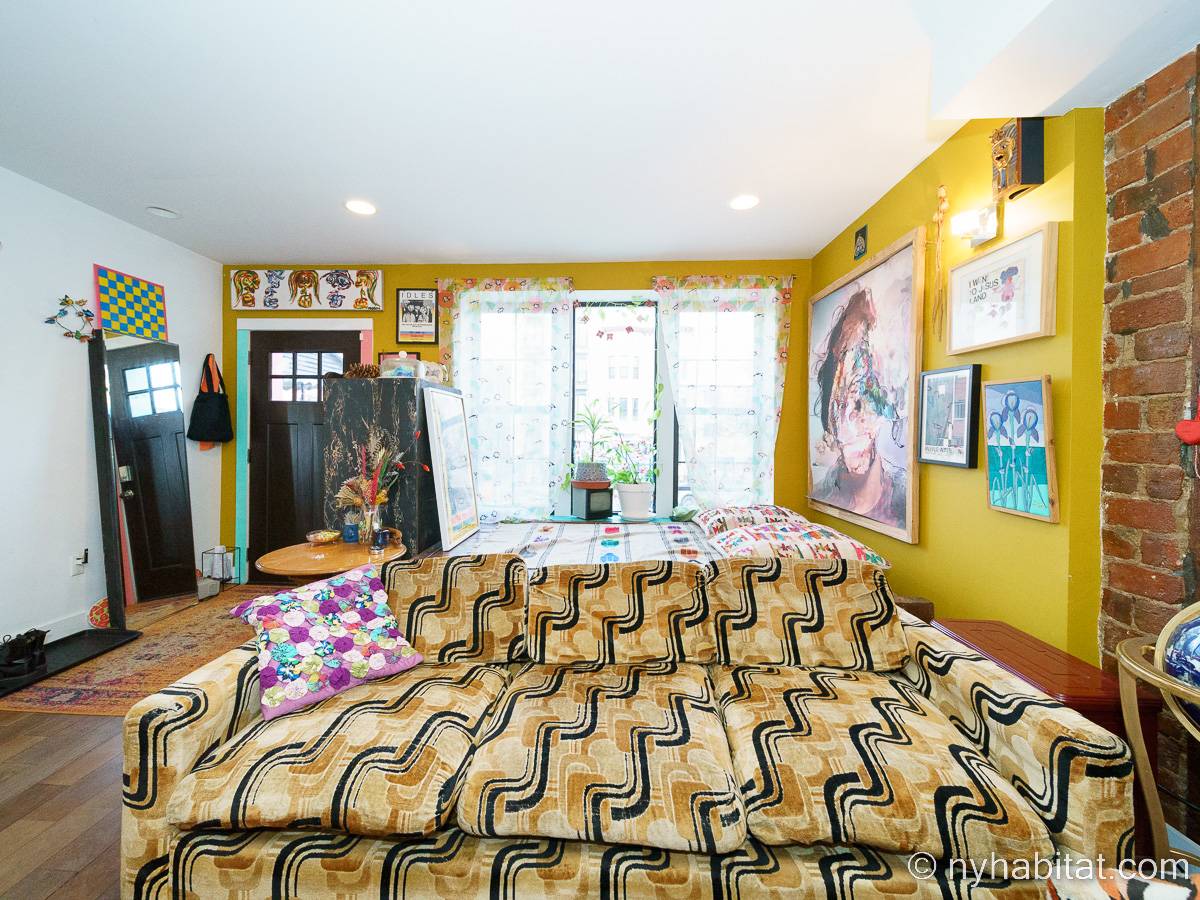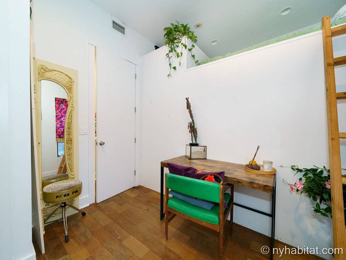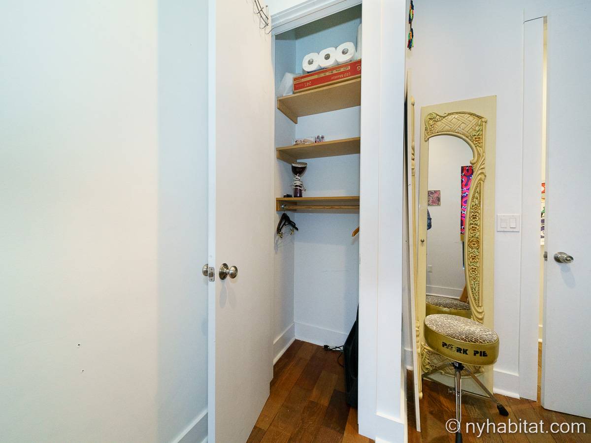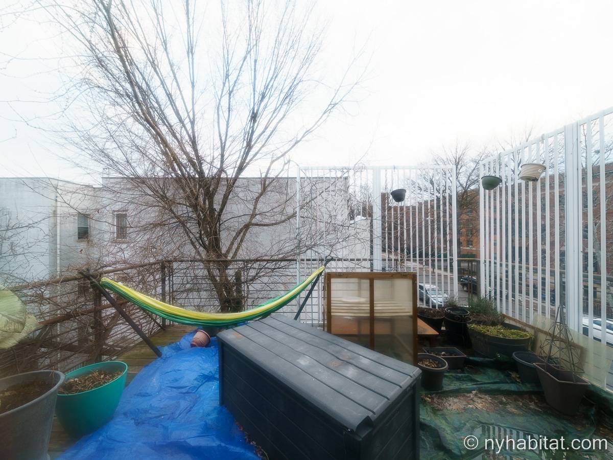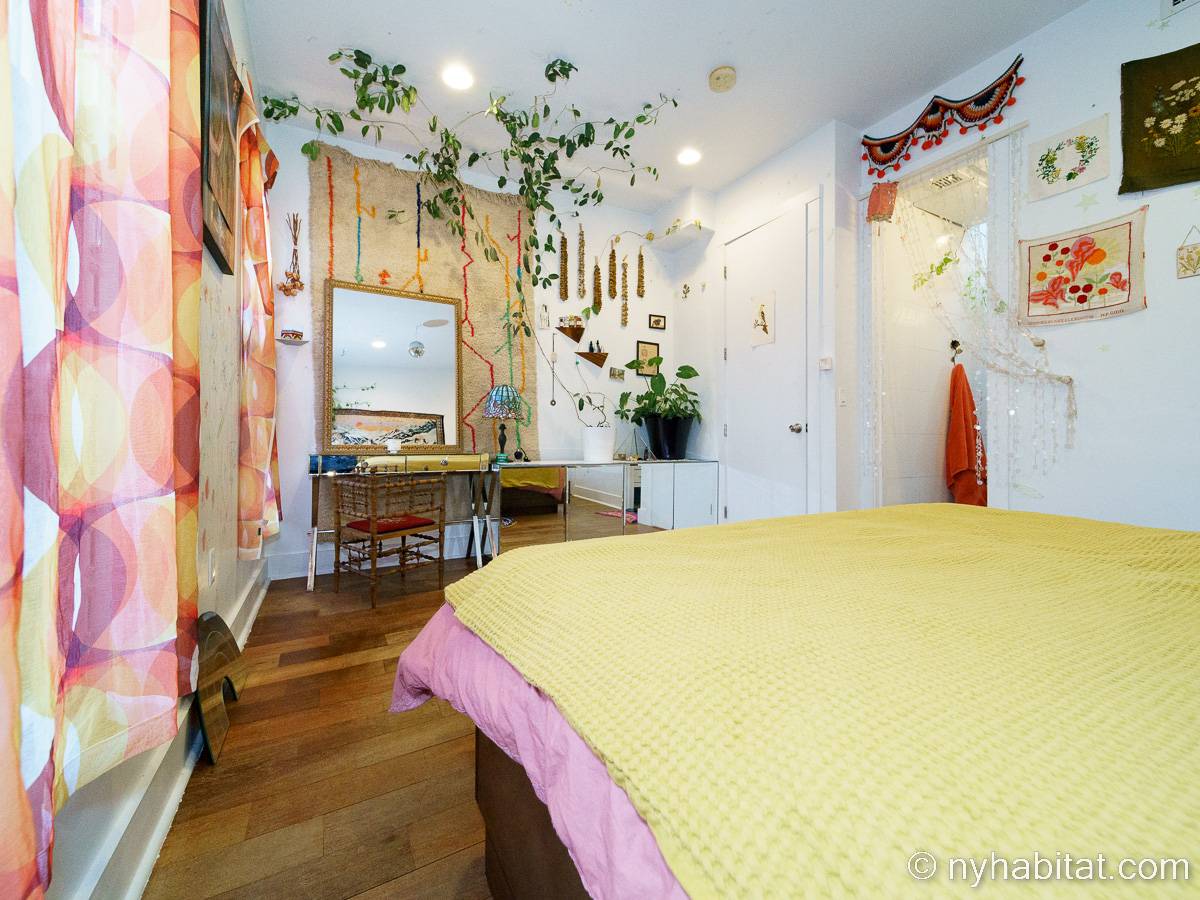 This rental is a furnished duplex apartment near Bushwick Avenue and Chauncey Street in Brooklyn, New York. It has two bedrooms, two bathrooms and an additional separate toilet. It is on the second and third floor (equivalent to the first and second floor in Europe) of a three-floor townhouse in Ocean Hill Brownsville.