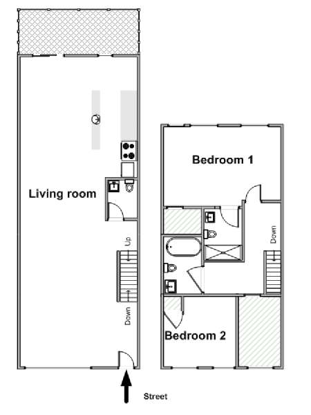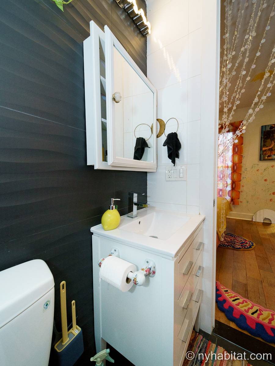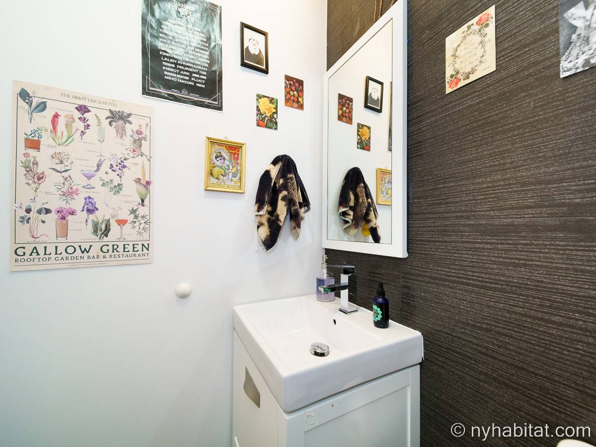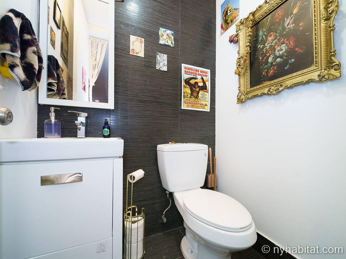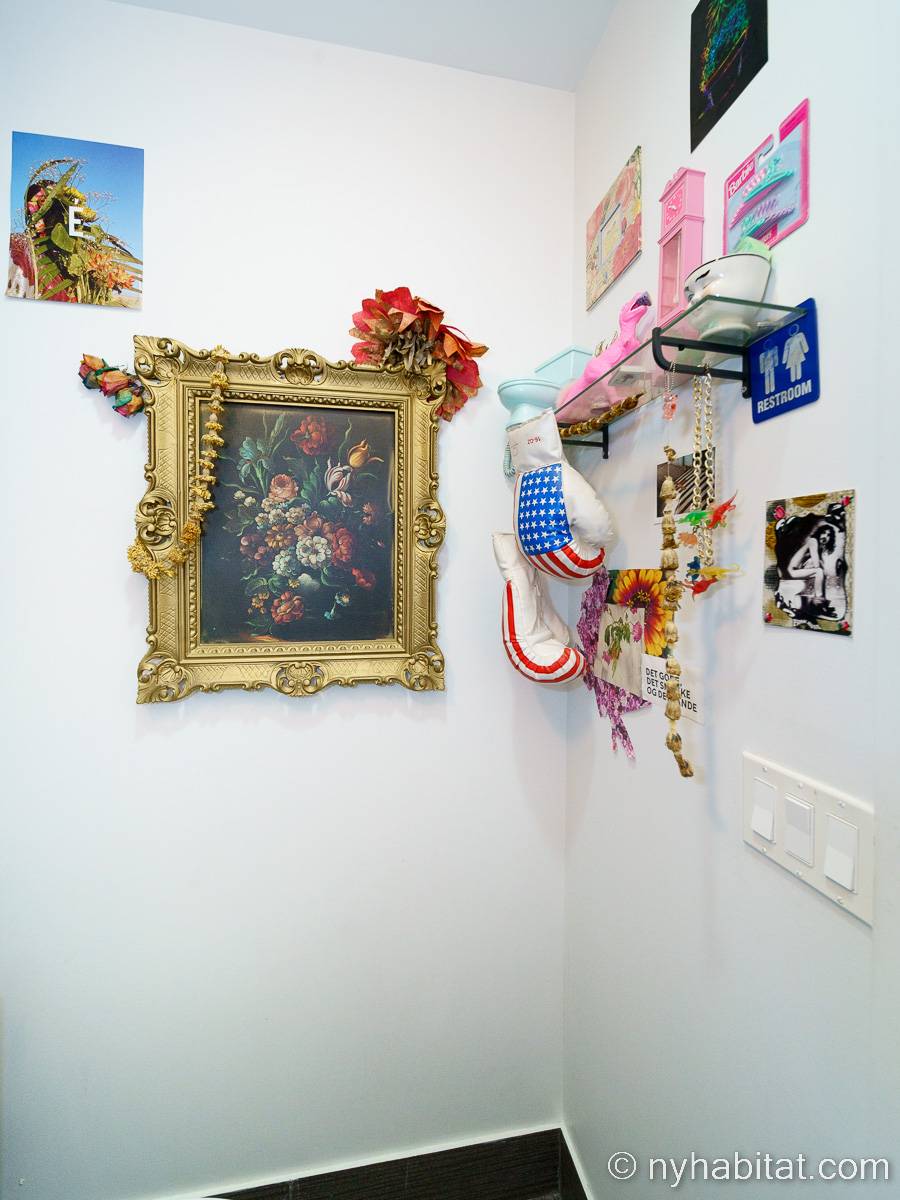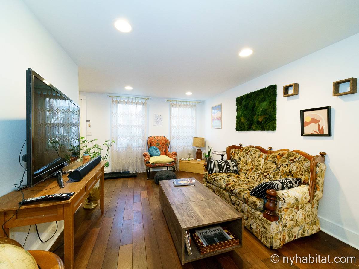 This rental is a furnished duplex apartment near Bushwick Avenue and Chauncey Street in Brooklyn, New York. It has two bedrooms, two bathrooms and an additional separate toilet. It is on the second and third floor (equivalent to the first and second floor in Europe) of a three-floor townhouse in Ocean Hill Brownsville.