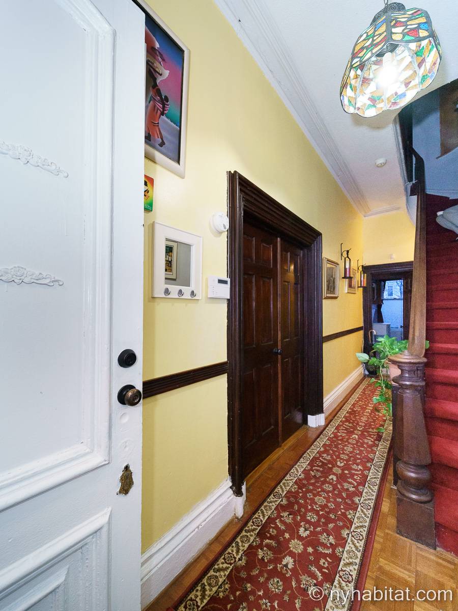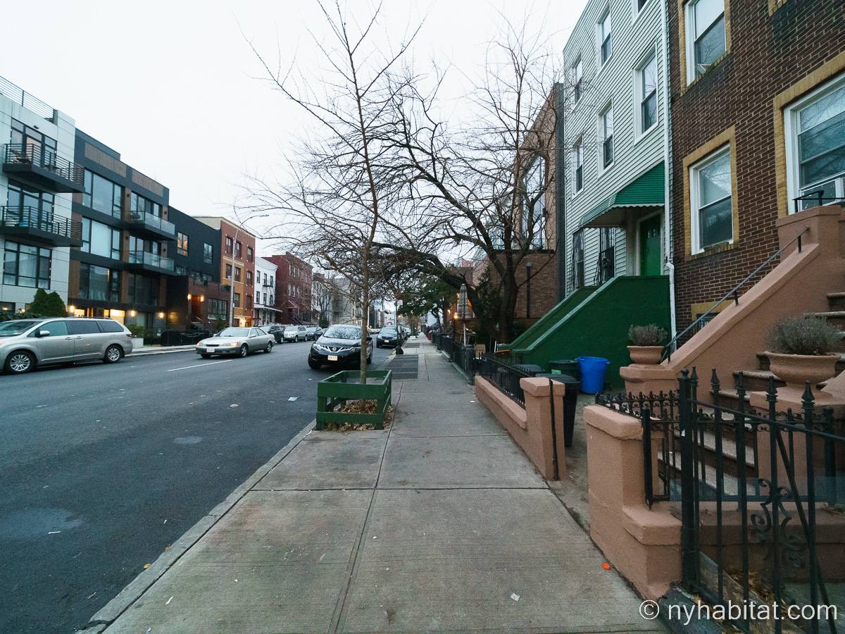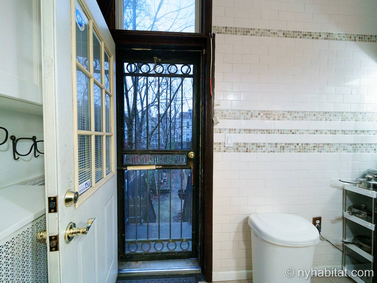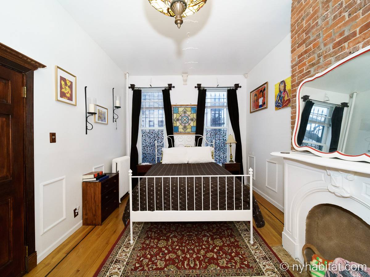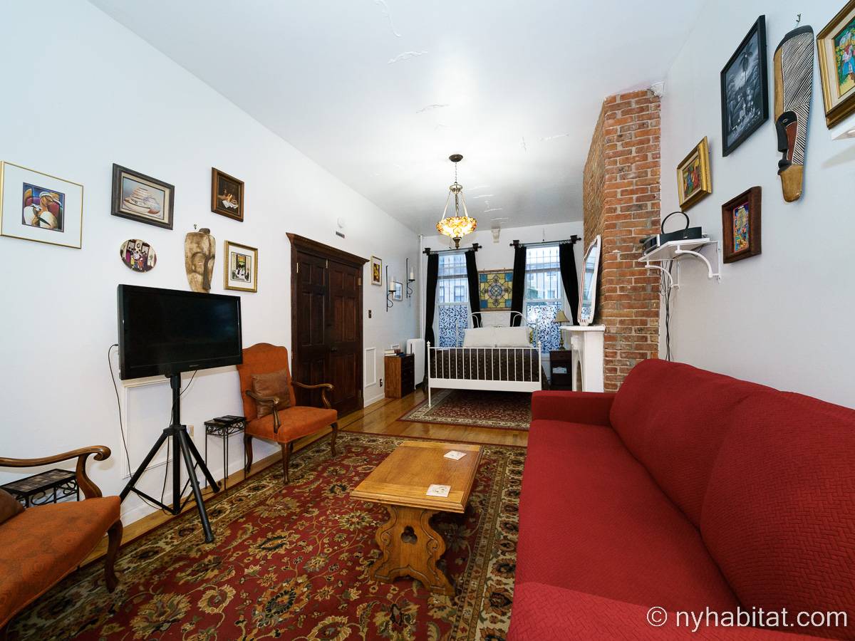 Between Lafayette Avenue and Nostrand Avenue is this furnished studio rental in Clinton Hill, Brooklyn, New York. The apartment sits on the second floor (equivalent to the first floor in Europe). Please note there is no elevator.
