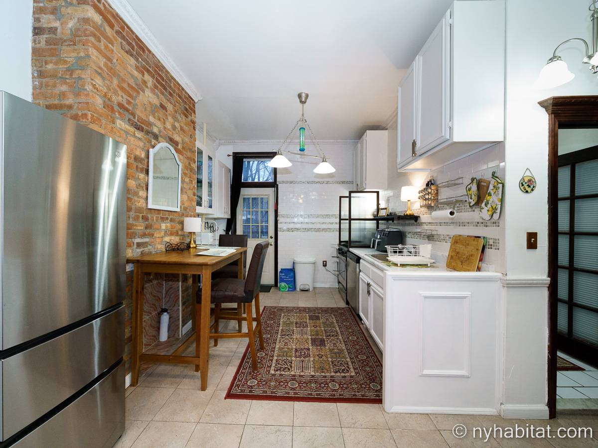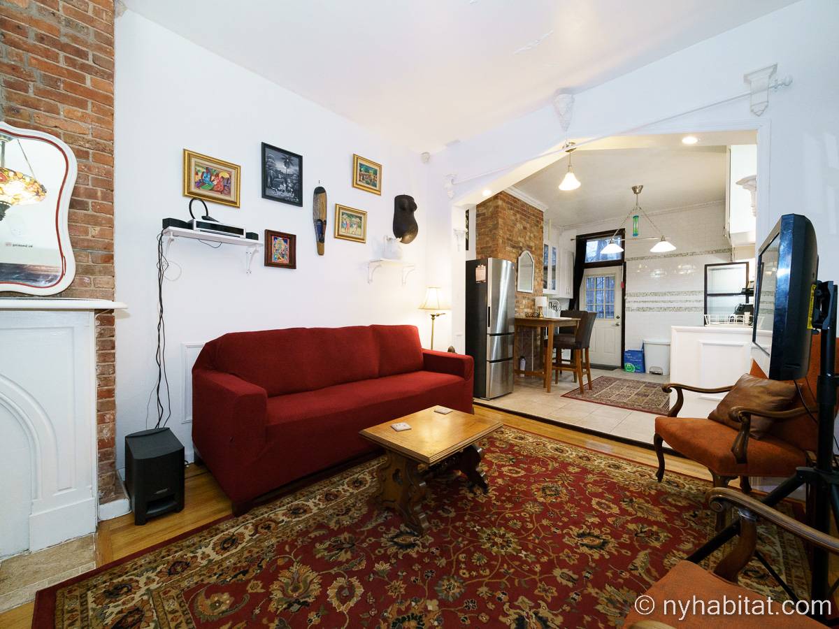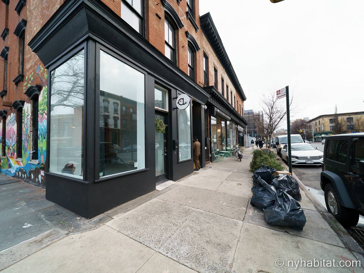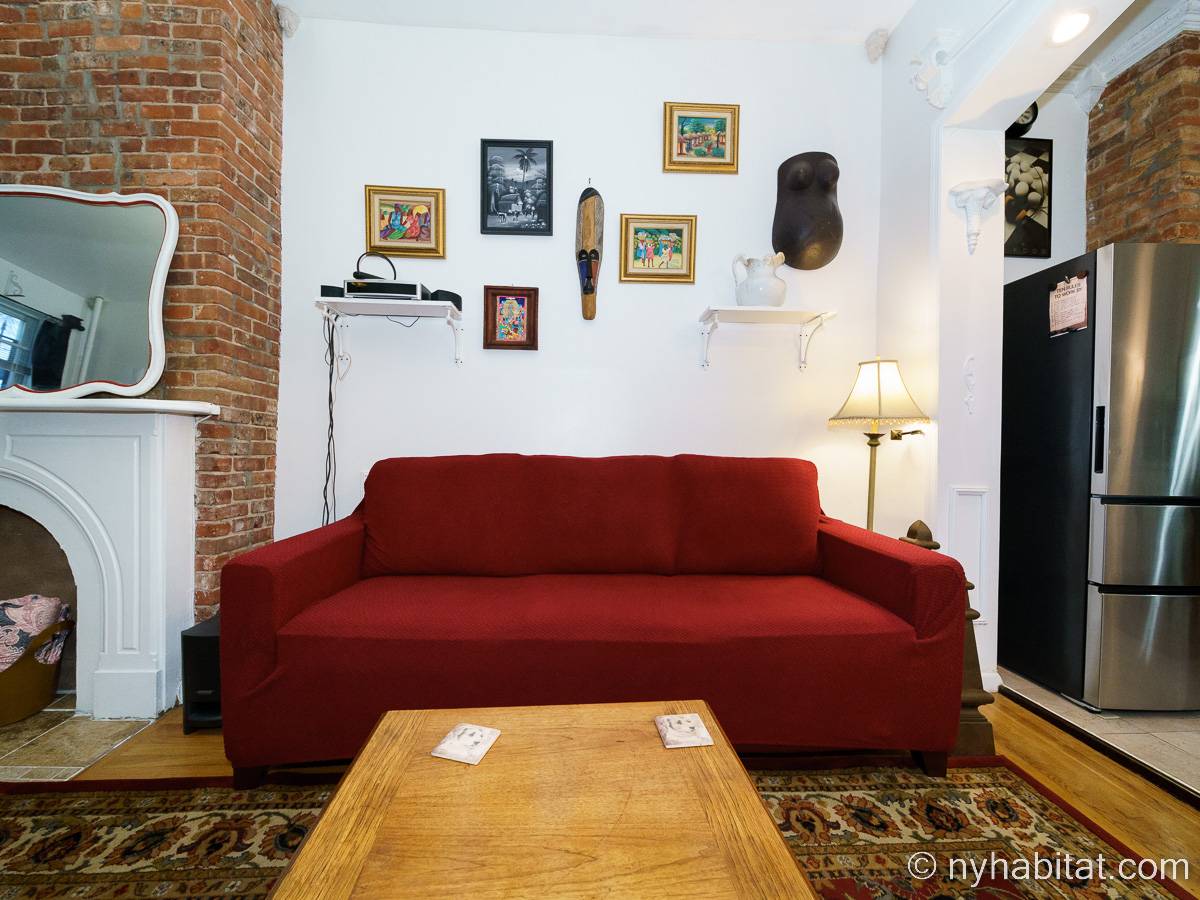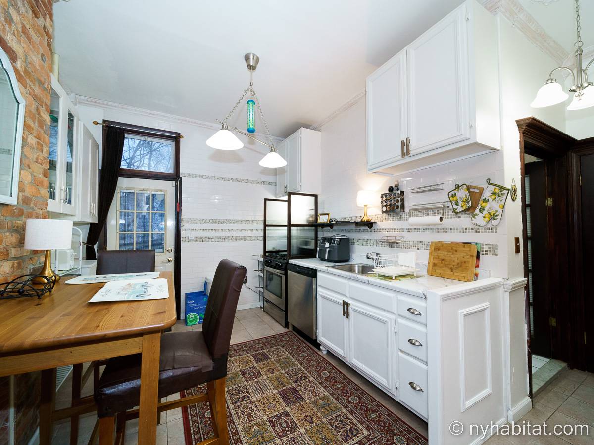 Between Lafayette Avenue and Nostrand Avenue is this furnished studio rental in Clinton Hill, Brooklyn, New York. The apartment sits on the second floor (equivalent to the first floor in Europe). Please note there is no elevator.