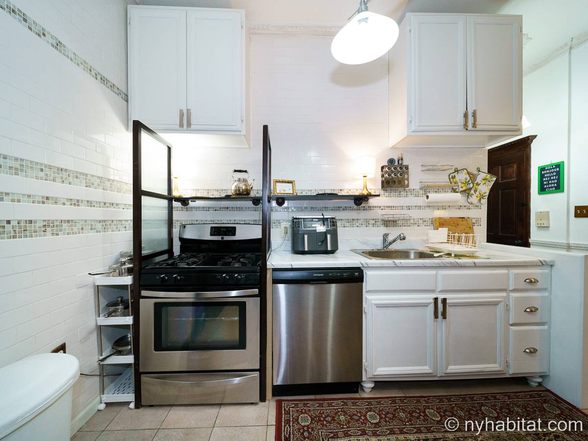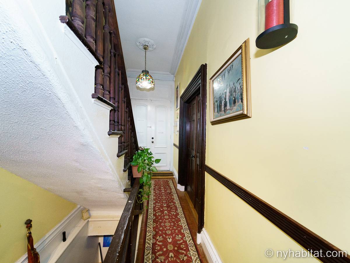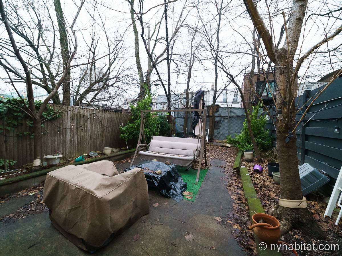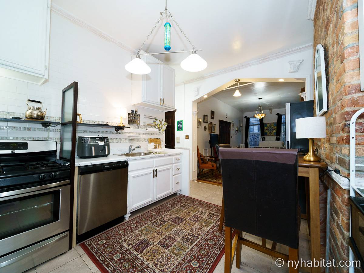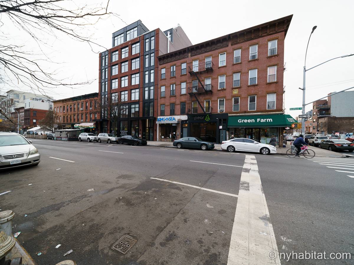 Between Lafayette Avenue and Nostrand Avenue is this furnished studio rental in Clinton Hill, Brooklyn, New York. The apartment sits on the second floor (equivalent to the first floor in Europe). Please note there is no elevator.