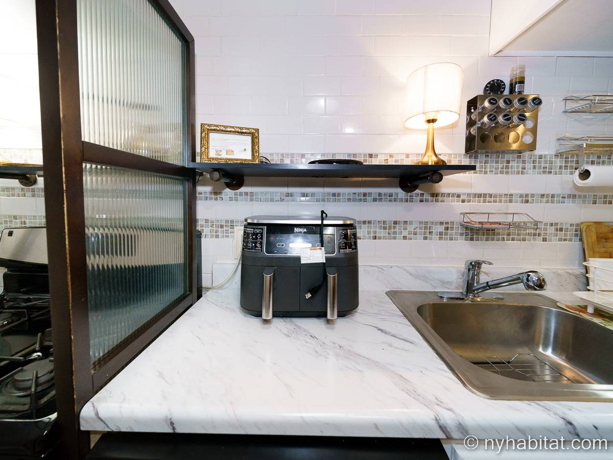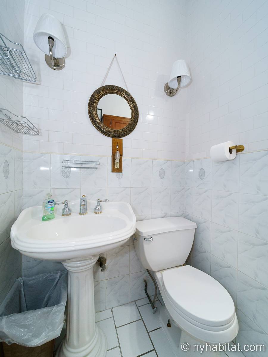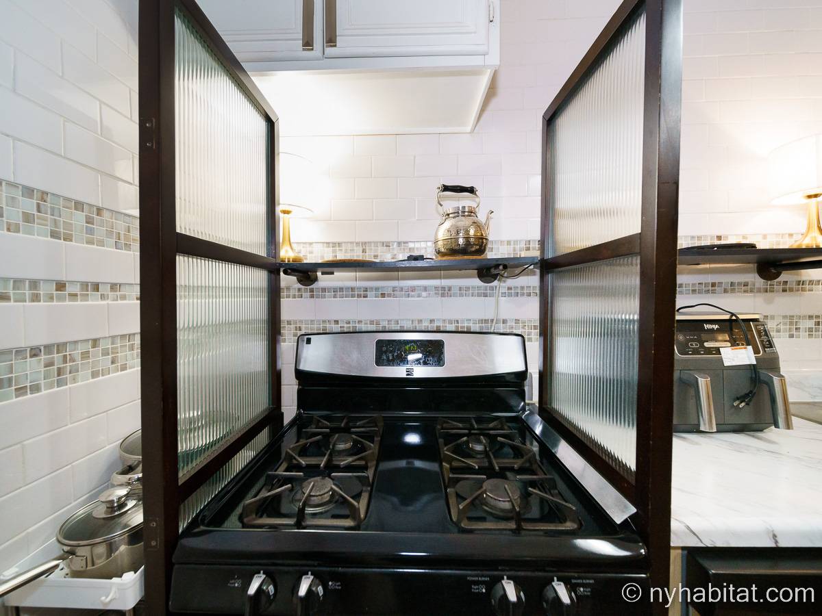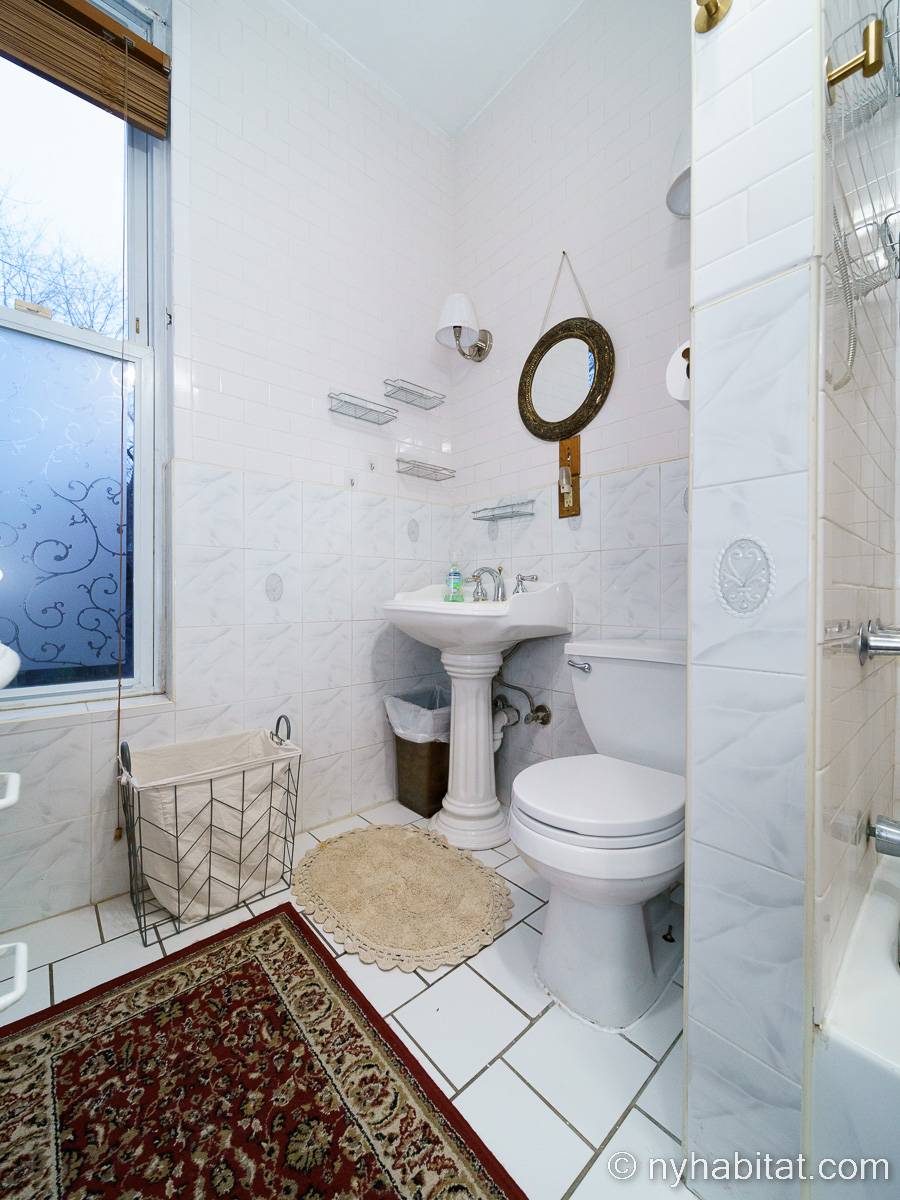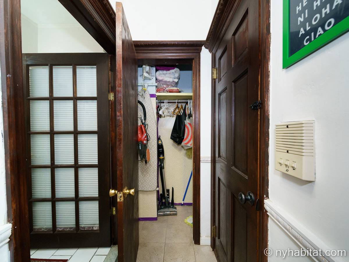 Between Lafayette Avenue and Nostrand Avenue is this furnished studio rental in Clinton Hill, Brooklyn, New York. The apartment sits on the second floor (equivalent to the first floor in Europe). Please note there is no elevator.