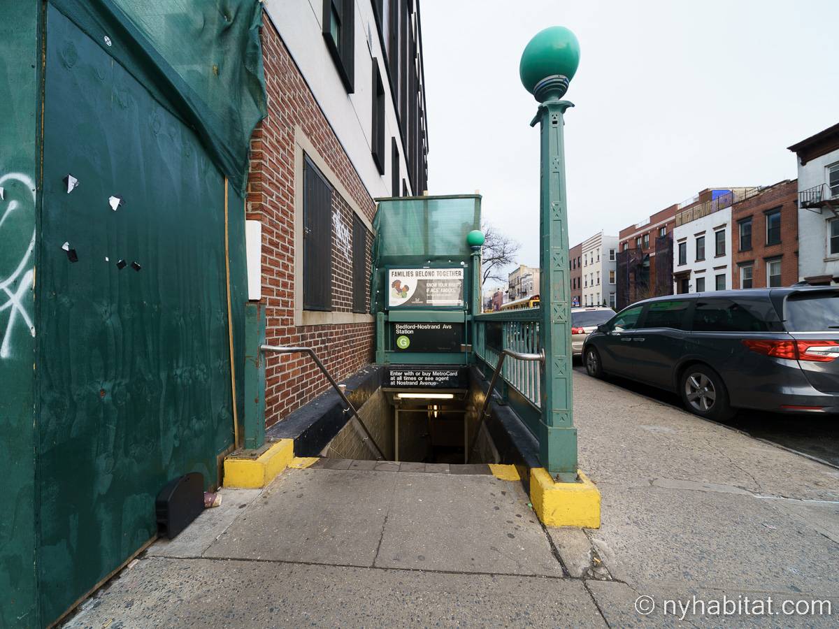 The Bedford-Nostrand Avenue/Lafayette Avenue G train subway station is a block from the apartment.