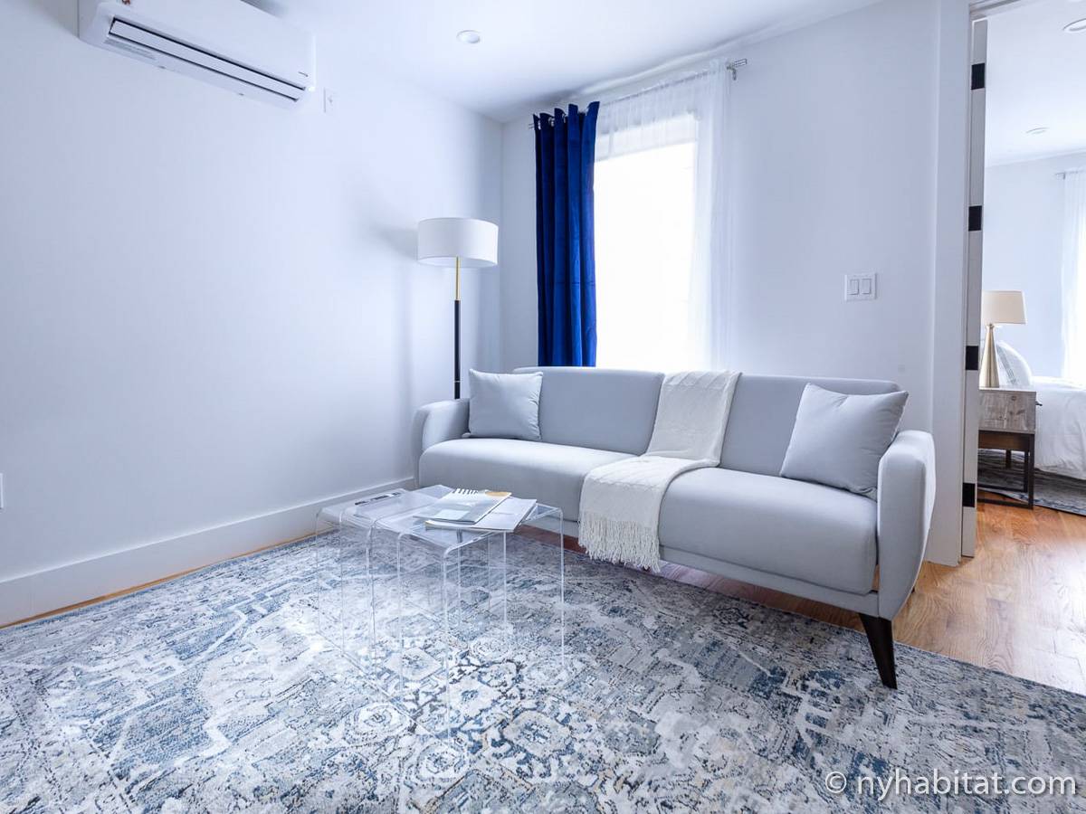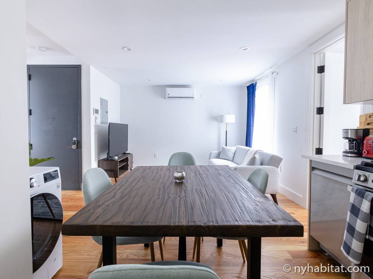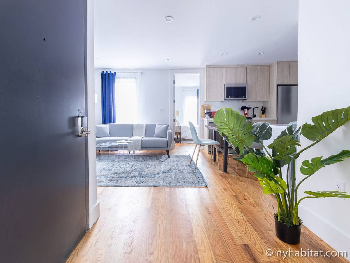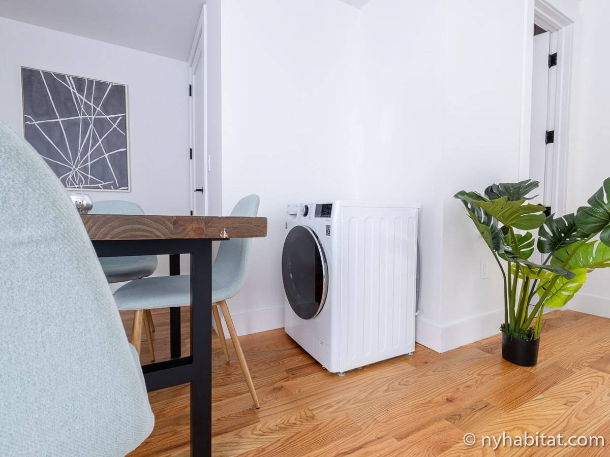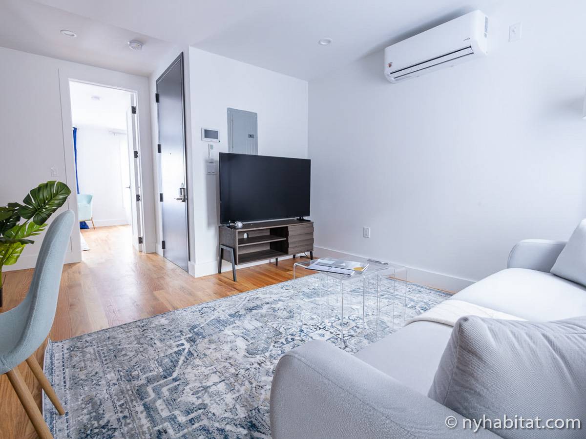 Welcome to the hip and trendsetting Brooklyn neighborhood of Williamsburg. Here lies this 2-bedroom, 1-bathroom furnished apartment. This 750-square-foot (70 m2) furnished rental can be found near the crossing of Graham Avenue and Devoe Street in a no-elevator building. The apartment features hardwood floors and has both a washing machine and dryer in the unit.